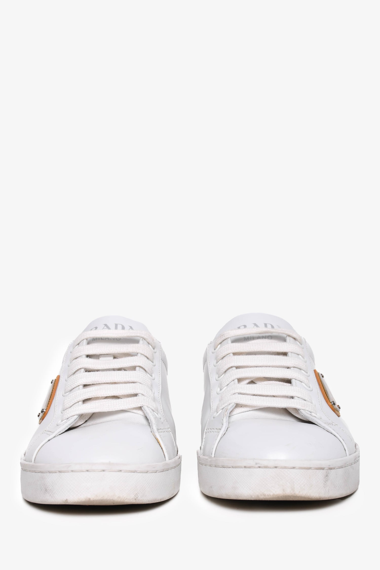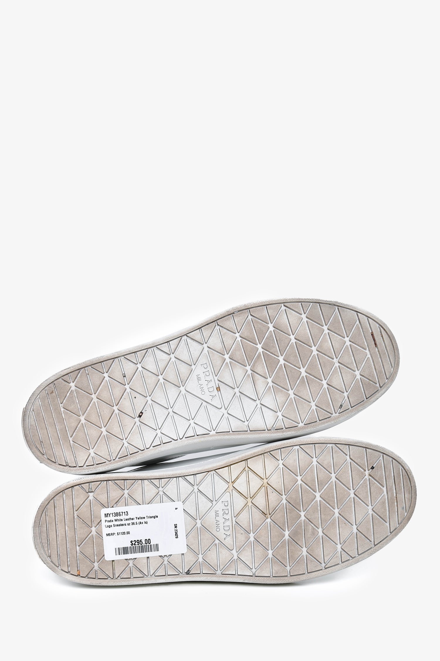 Prada White Leather Yellow Triangle Logo Sneakers Size 36.5 (As Is)