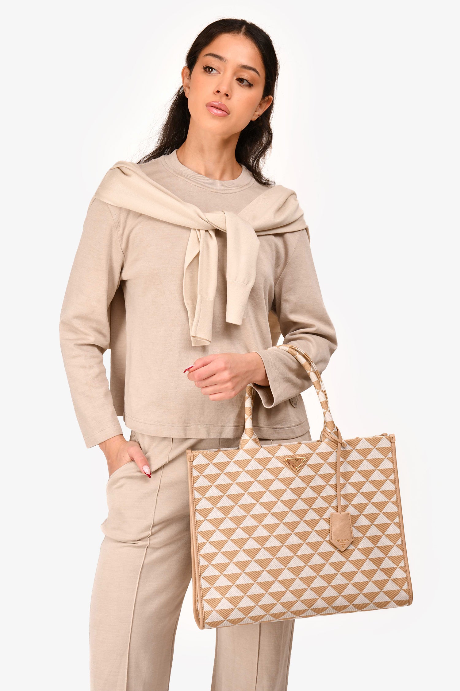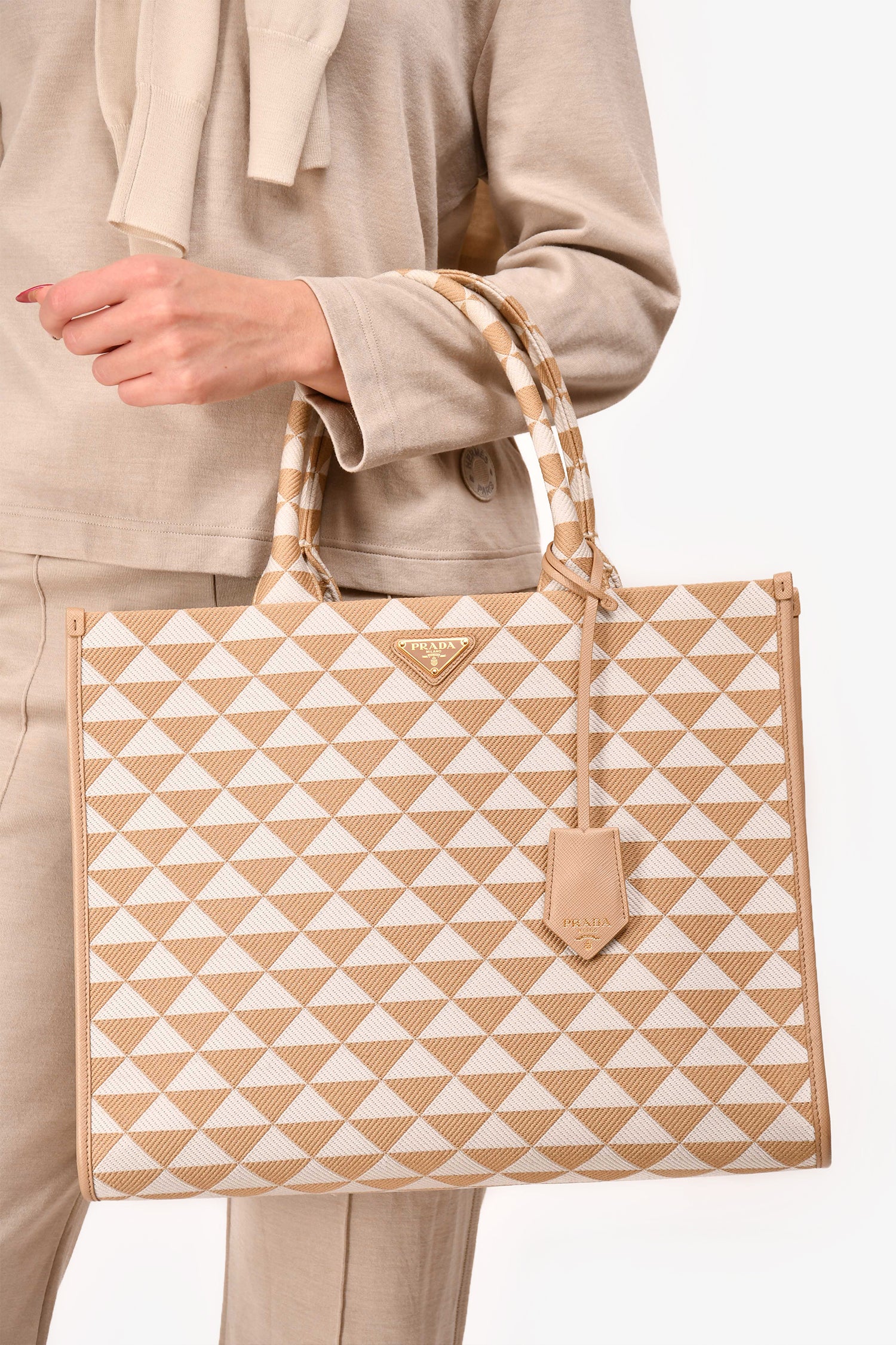 Prada Beige/White Woven Large Symbole Tote