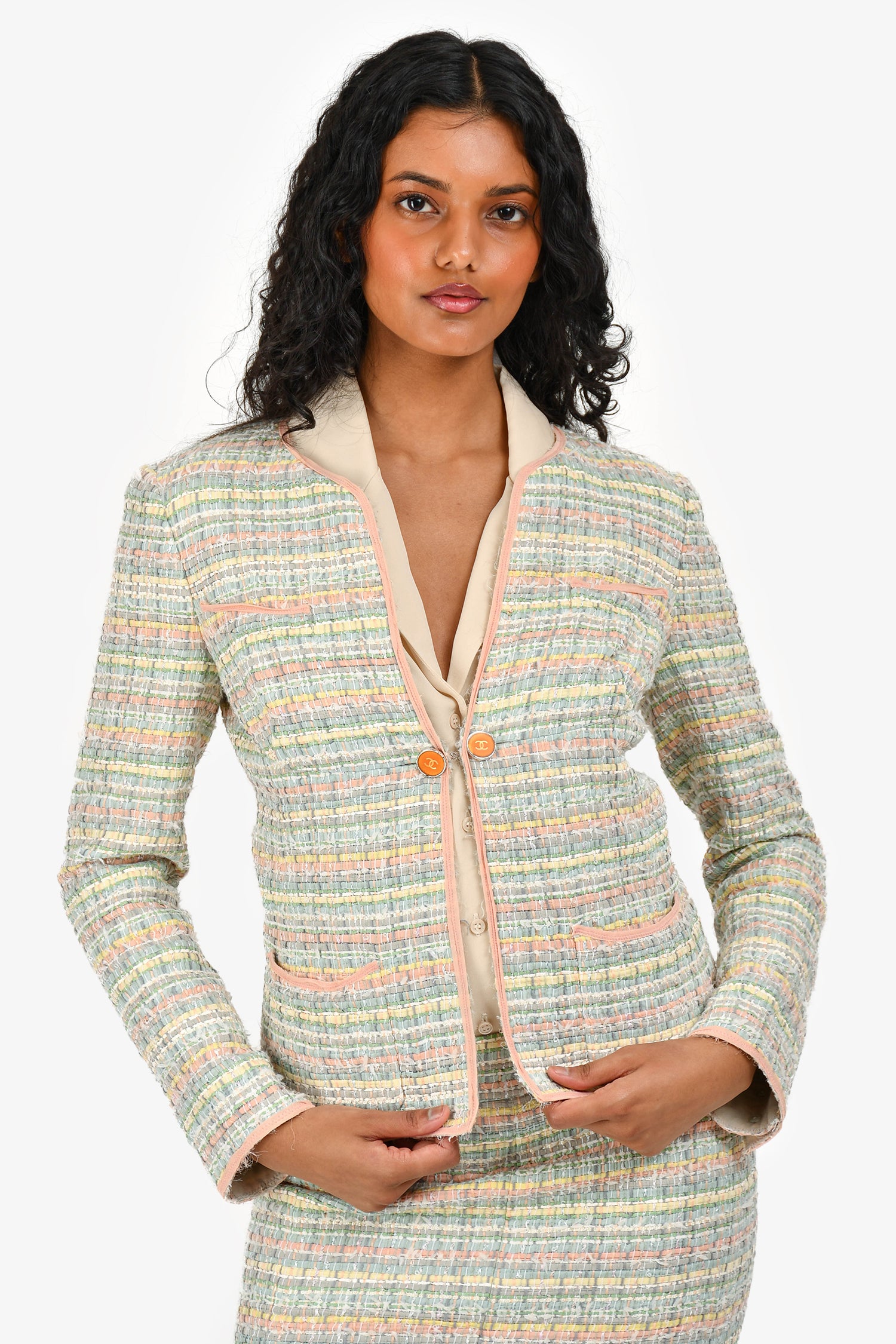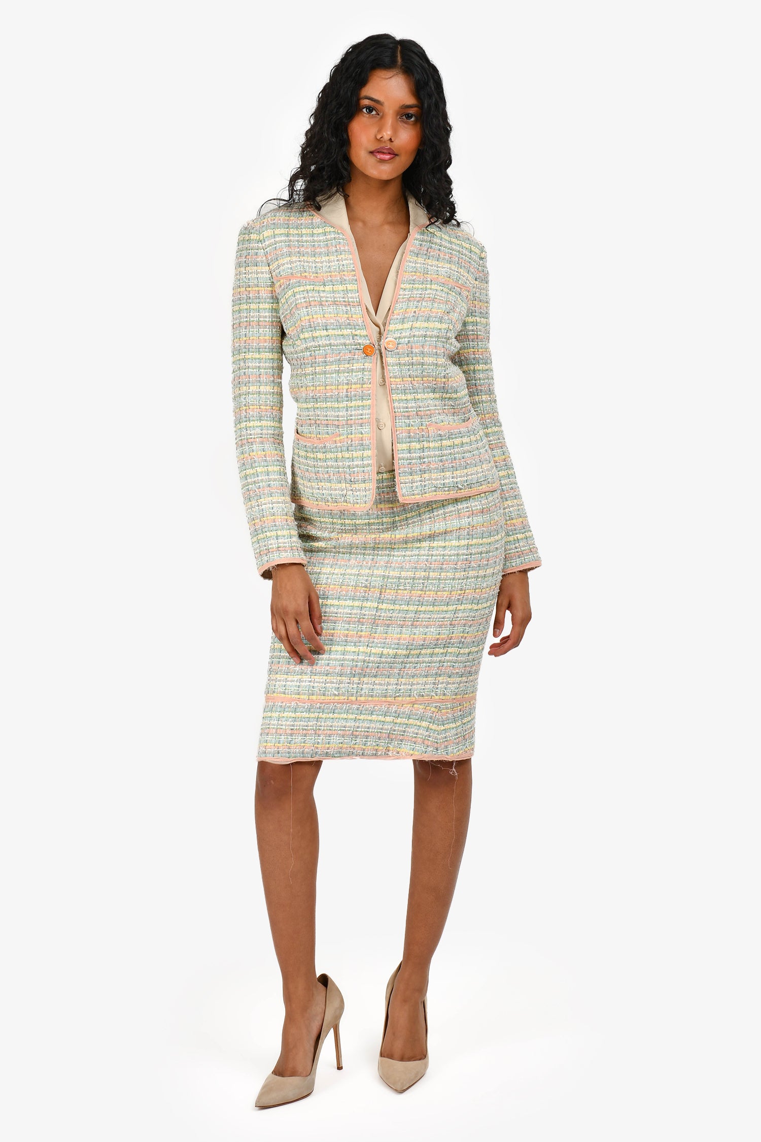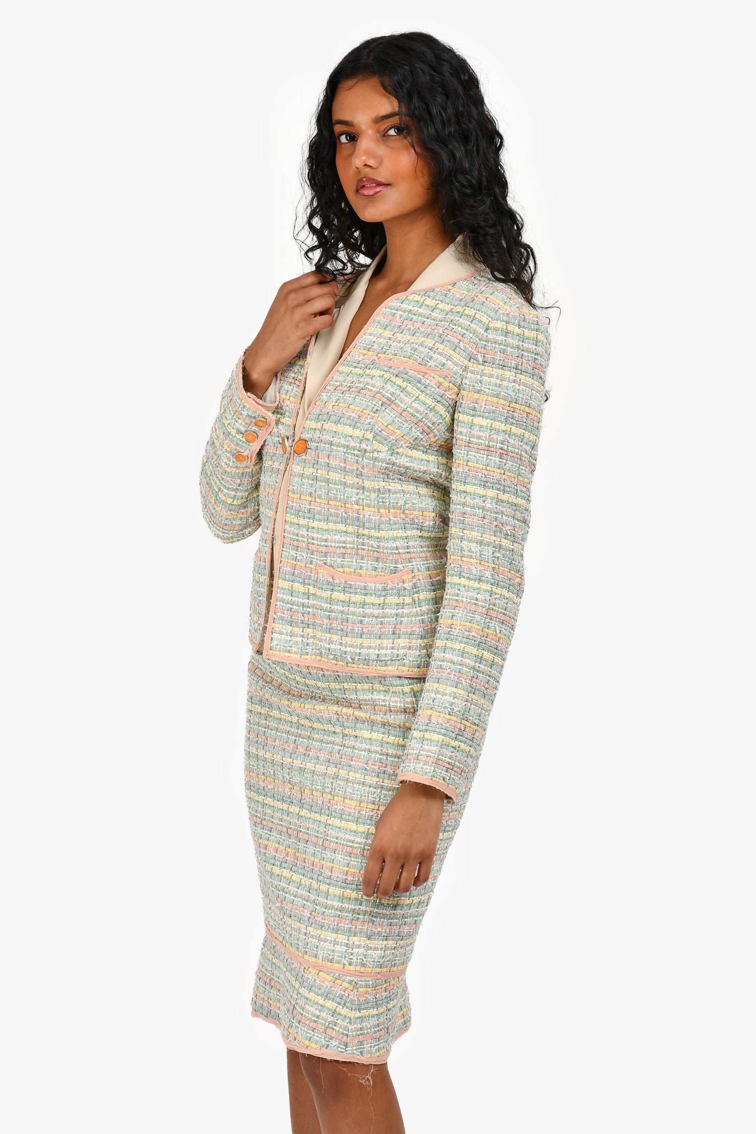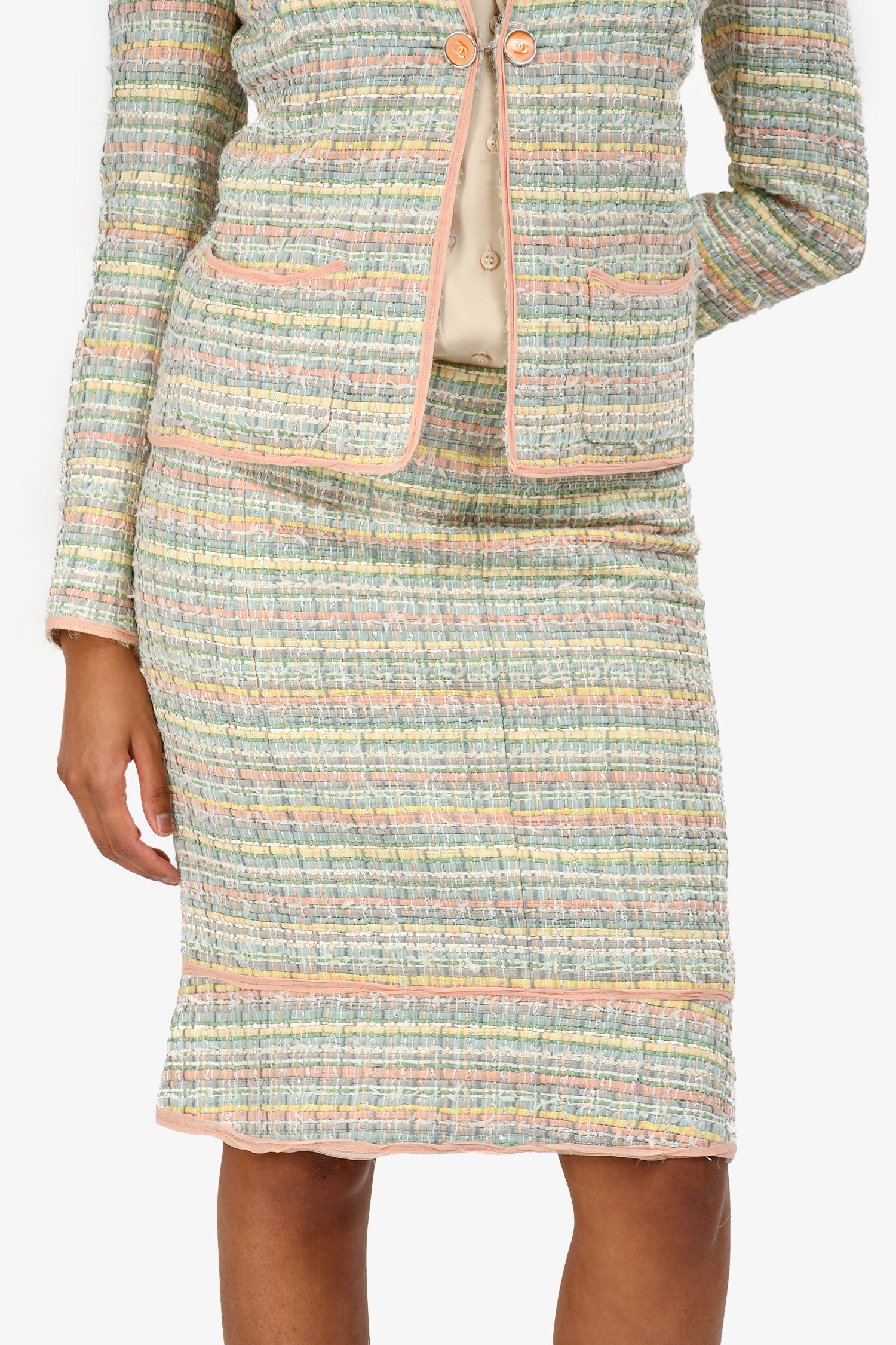 Pre-Loved Chanel™ 05P Pink/Green Tweed Jacket with Midi Skirt Set Size 36