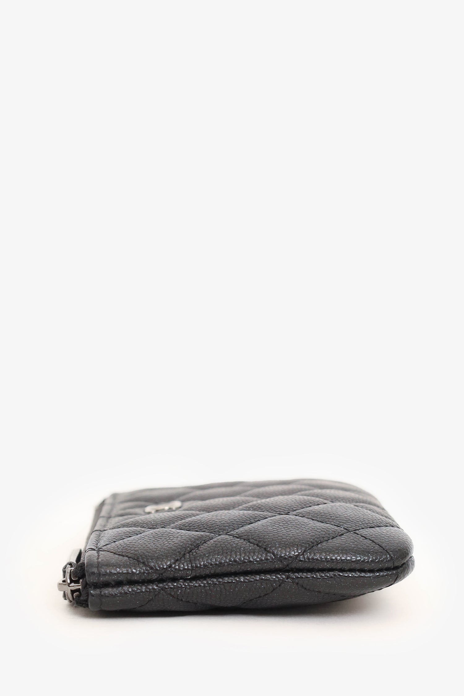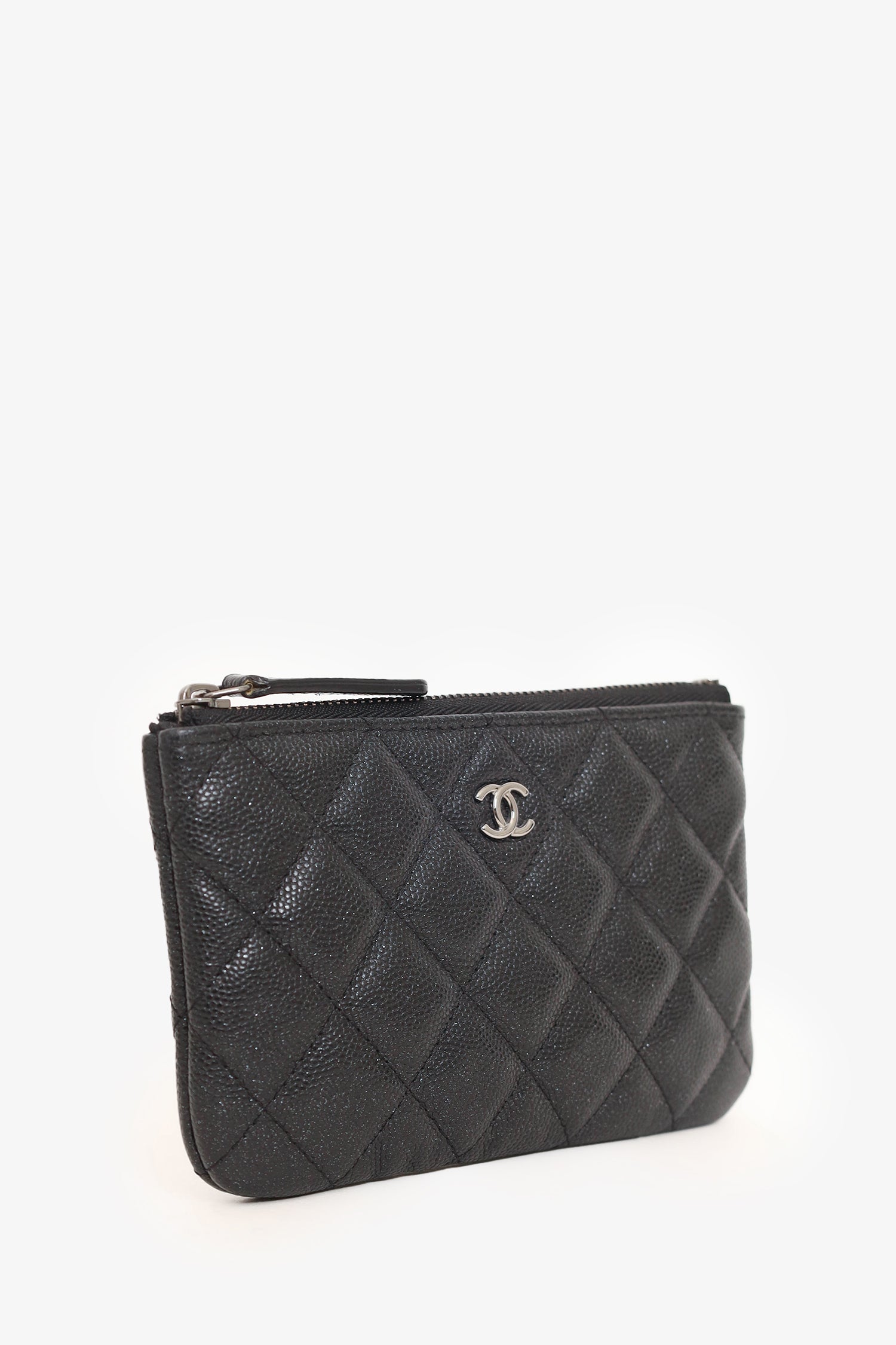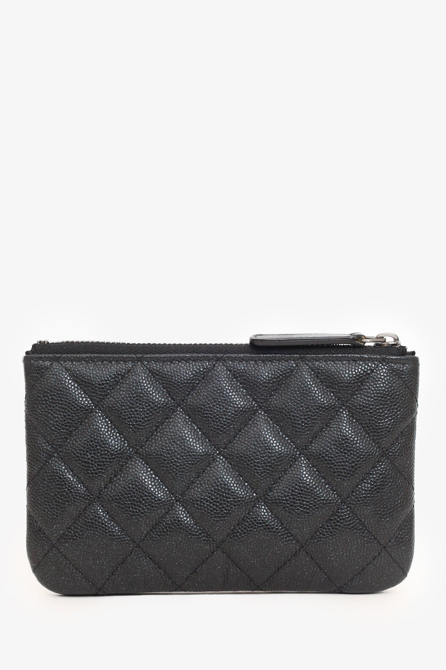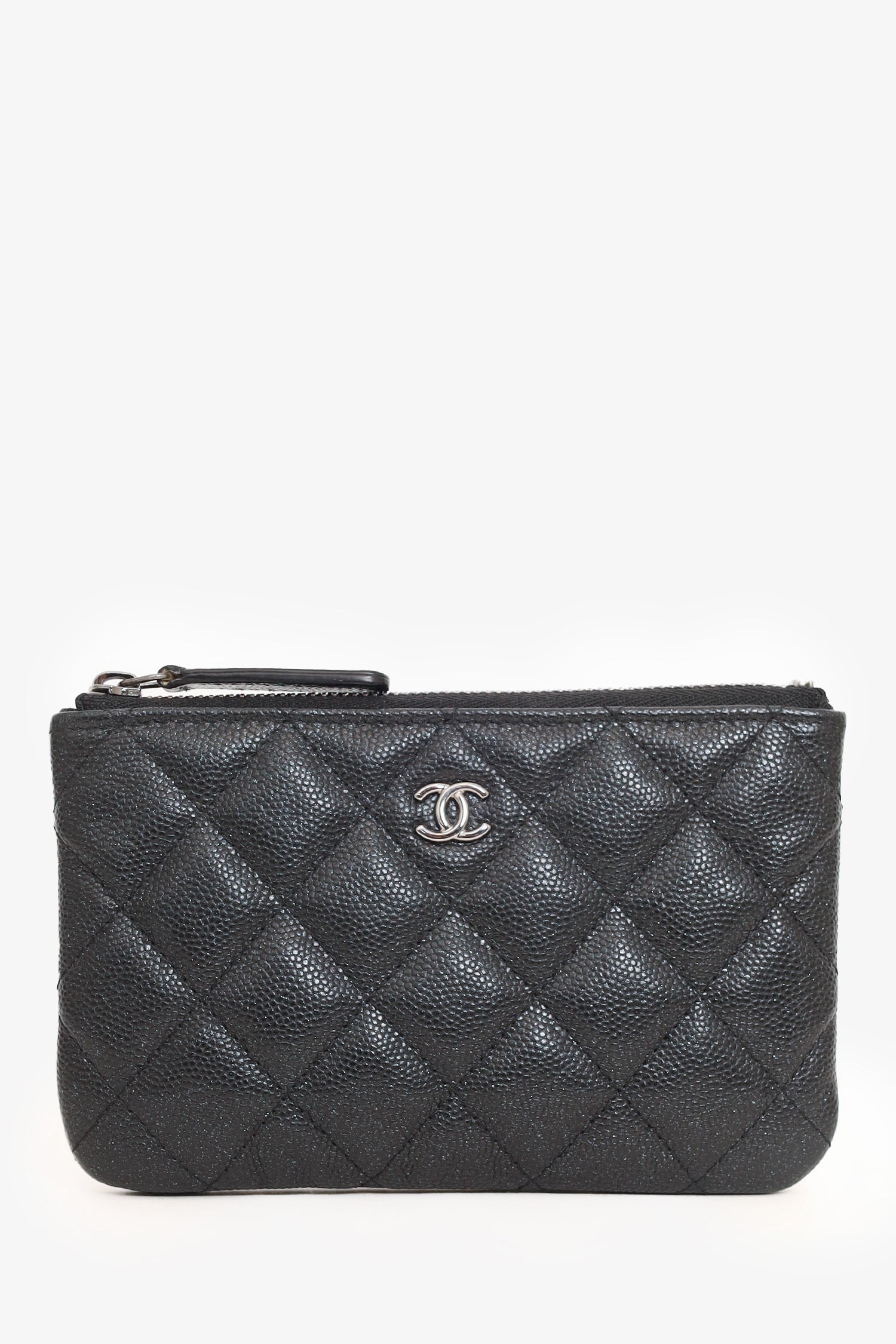 Refresh availabilityPre-Loved Chanel™ 18C Iridescent Black Caviar CC Logo O Case Mini Pouch. Top zip closure. Open interior. Silver-tone hardware. Tonal stitching.
