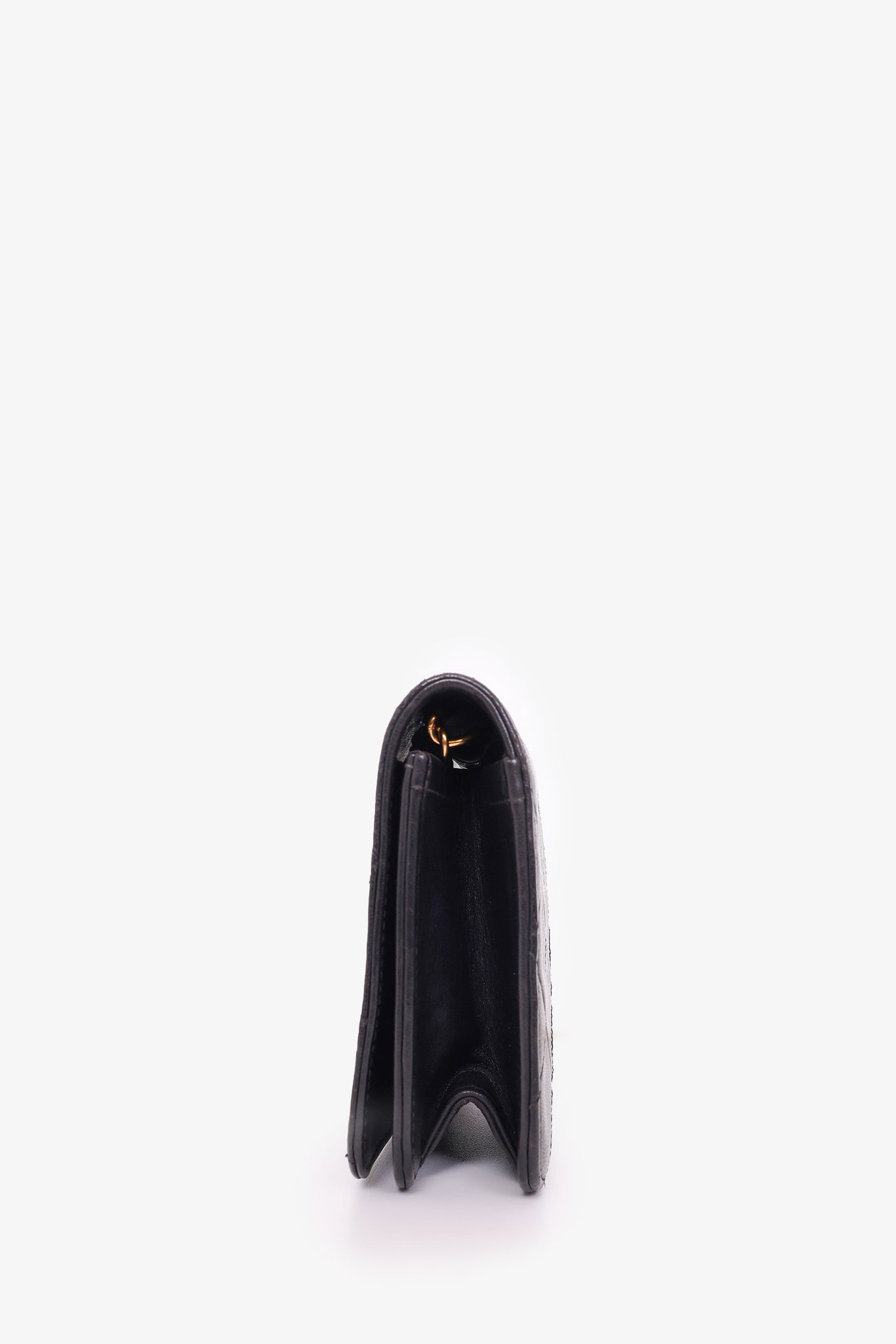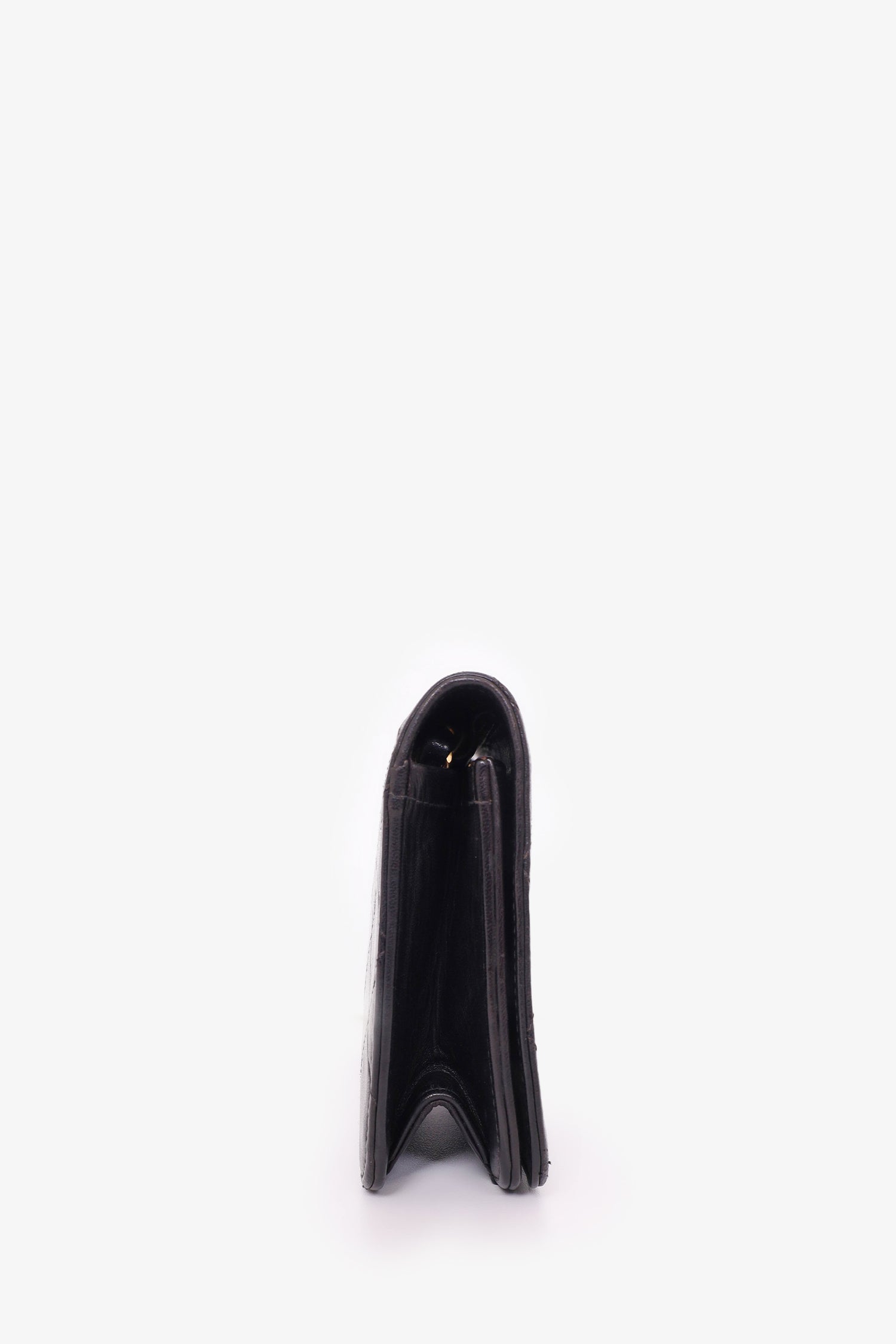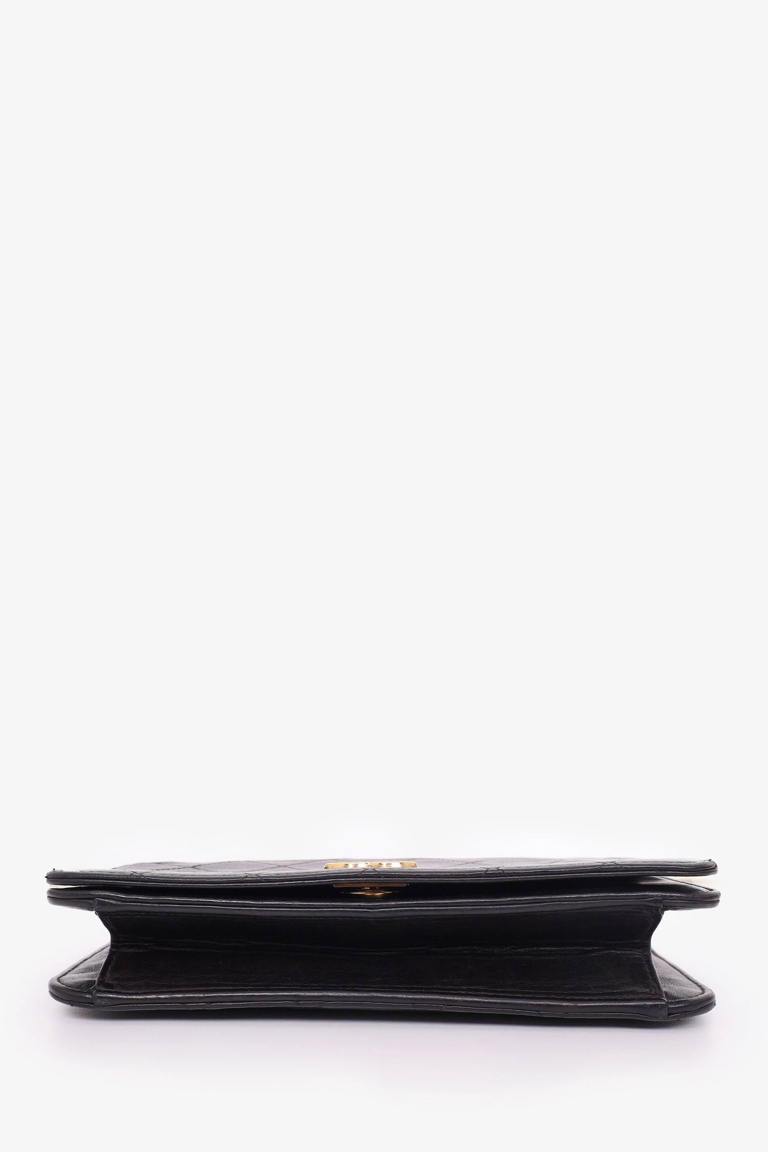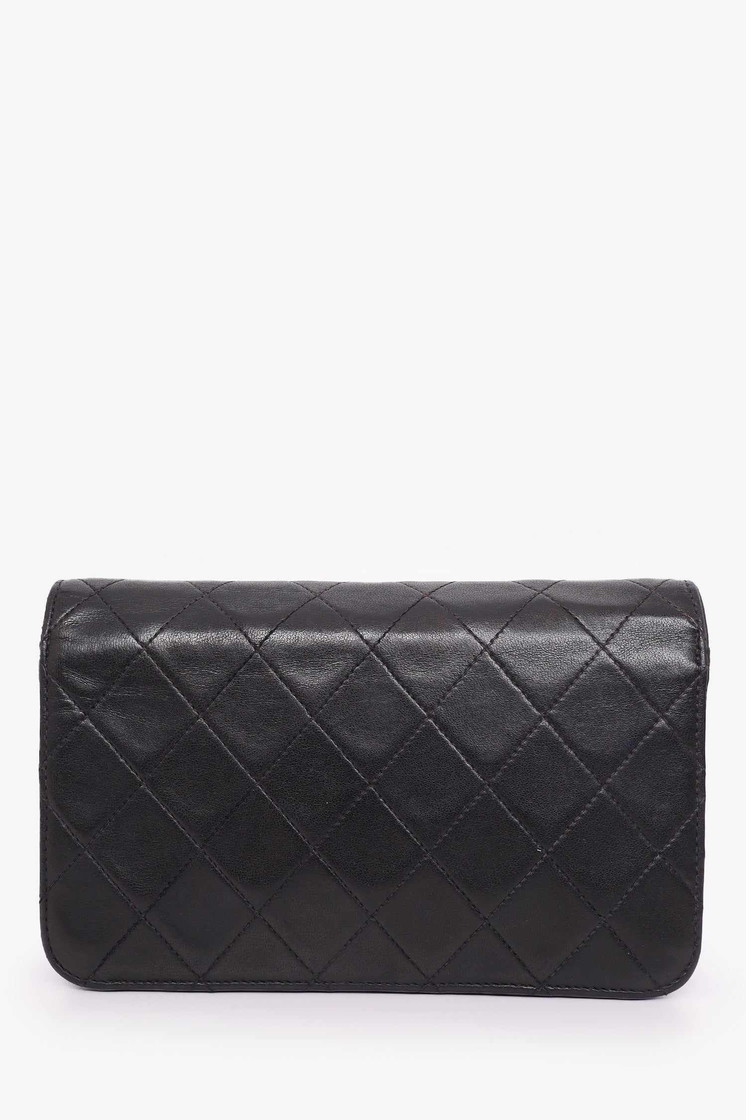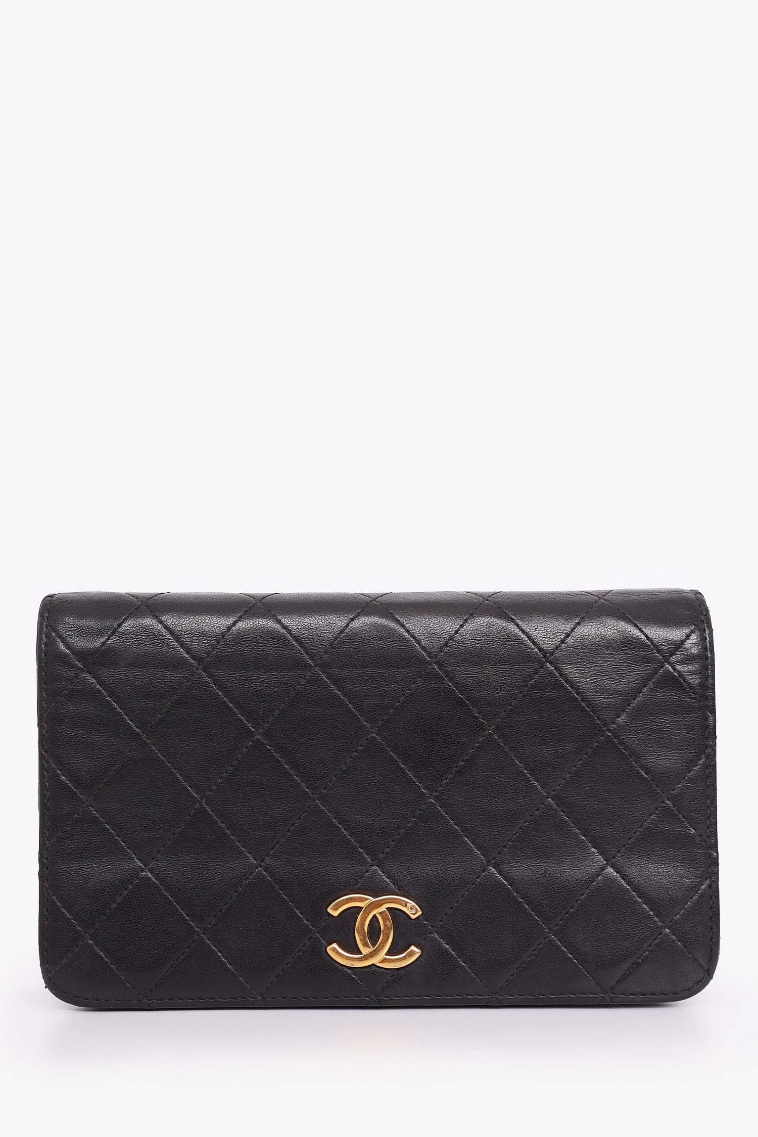 Refresh availabilityPre-Loved Chanel™ 1989-91 Black Lambskin Mini Full Flap Wallet On Chain. Front fold-over flap with snap button closure. Open leather interior with single wall slip pocket. Tonal stitching. Gold-tone hardware.