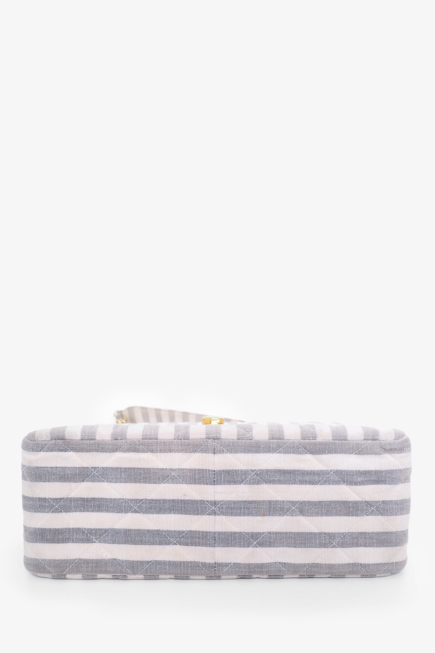 Pre-Loved Chanel™ 1994-96 Grey/White Striped Chain Shoulder Bag. Gold-tone hardware. One internal zip pocket and one slip pocket. Tonal stitching.