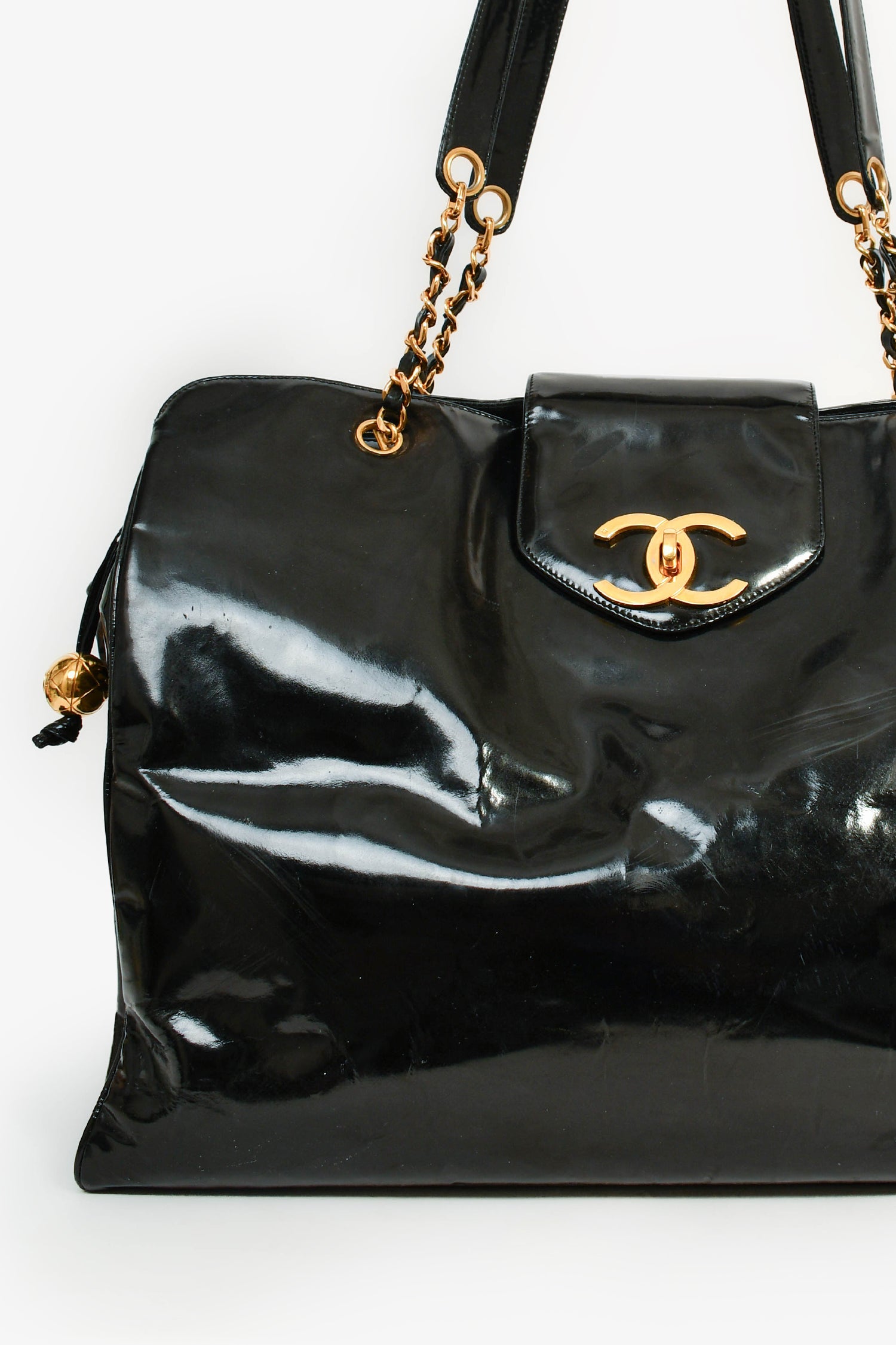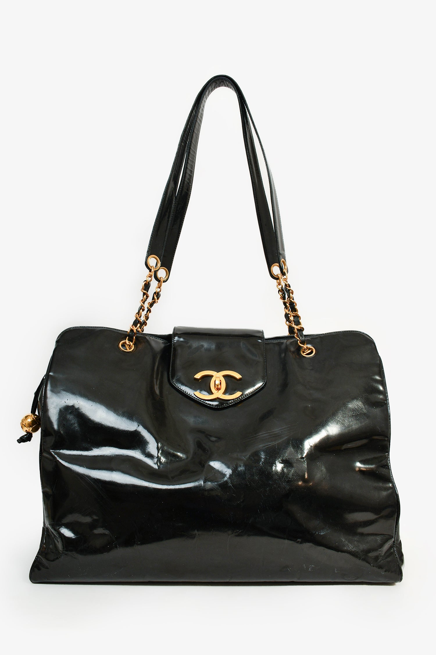 Pre-Loved Chanel™ 1996-97 Black Patent CC XL Supermodel Tote