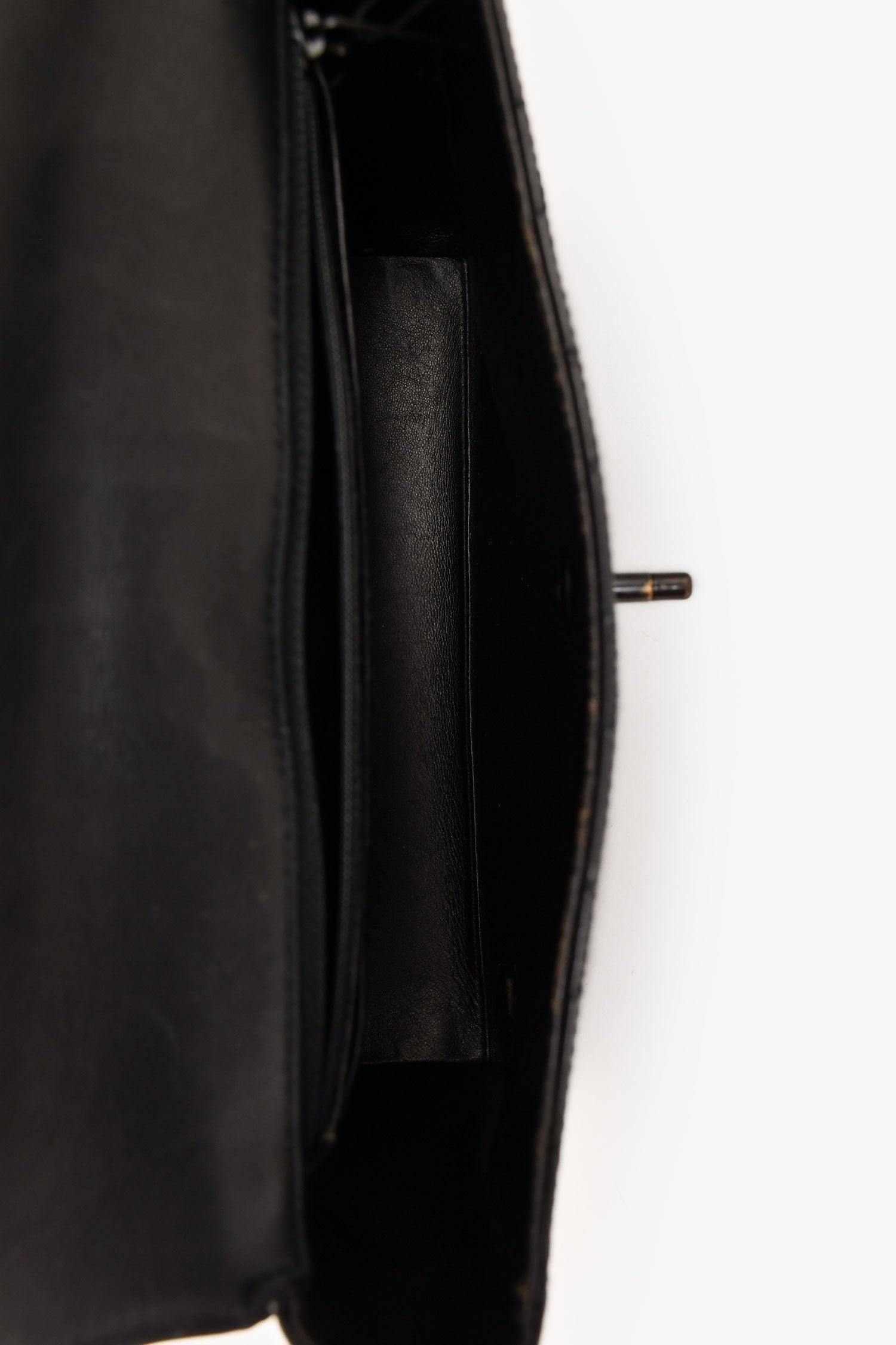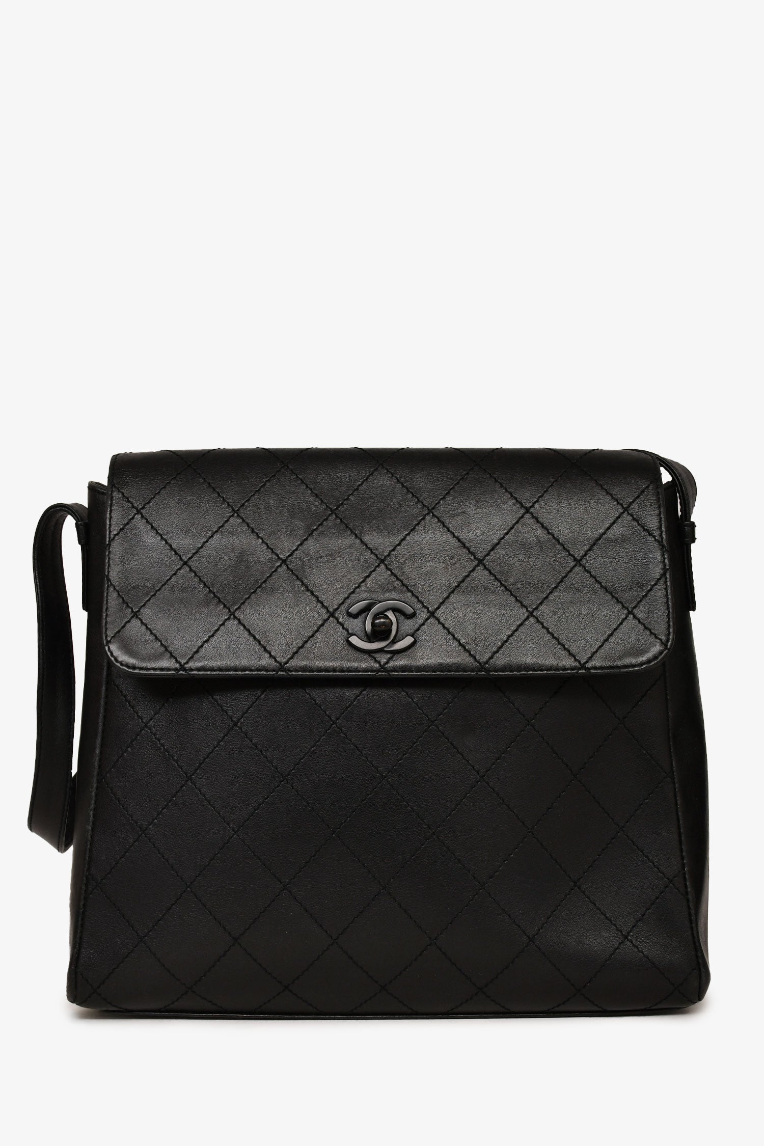 Pre-Loved Chanel™ 1997-99 Black Leather Quilted CC Turn Lock Flap Shoulder Bag (As Is). Flap-over with turn lock closure. Interior wall pocket with zip closure and one slip pocket. Exterior back slip pocket.