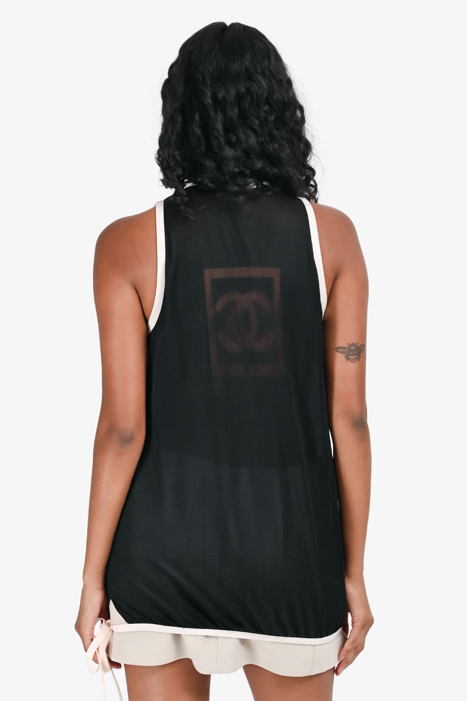 Pre-Loved Chanel™ 2003 Black Mesh CC Logo Tie Tank Top Size 38
