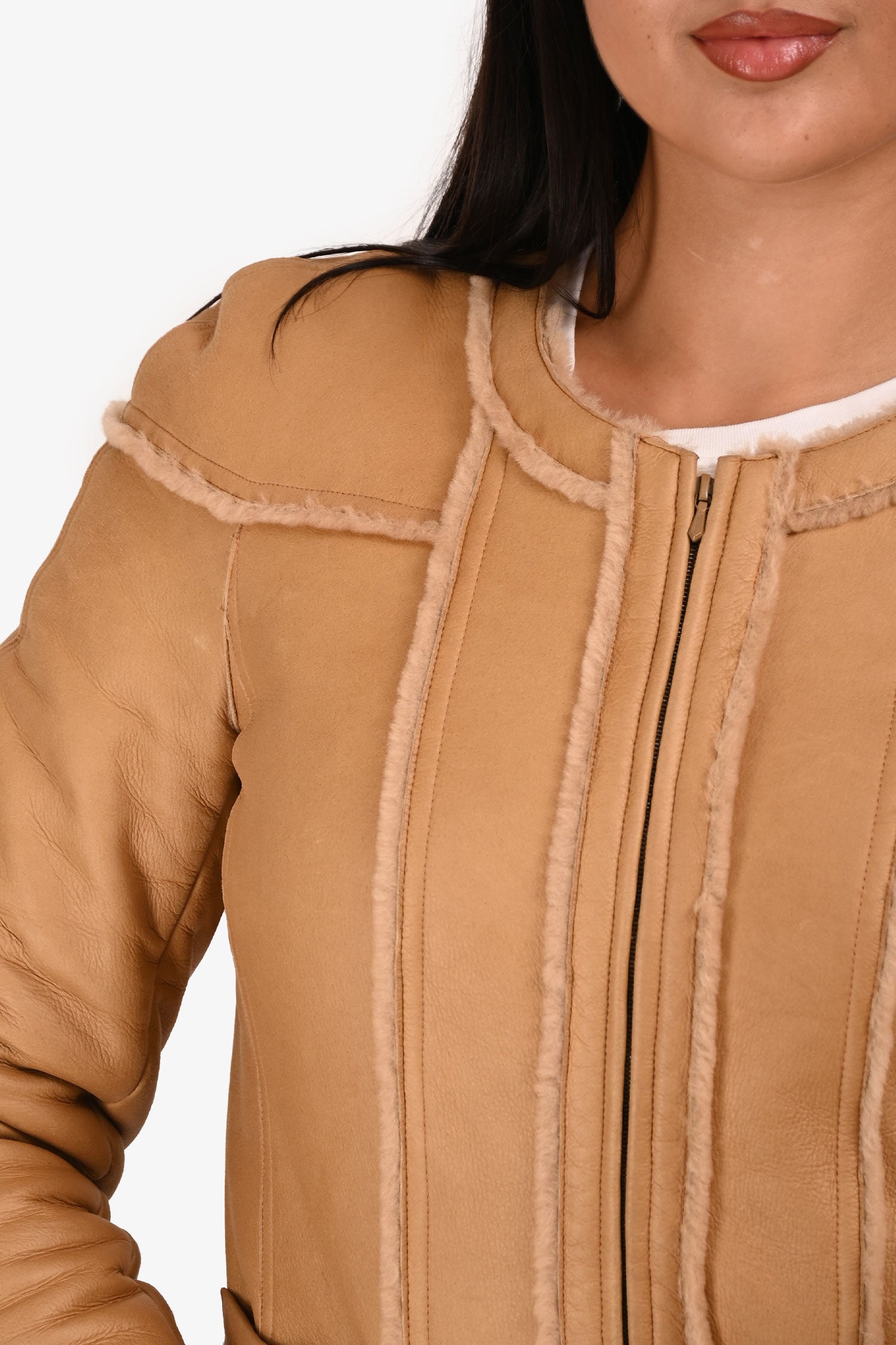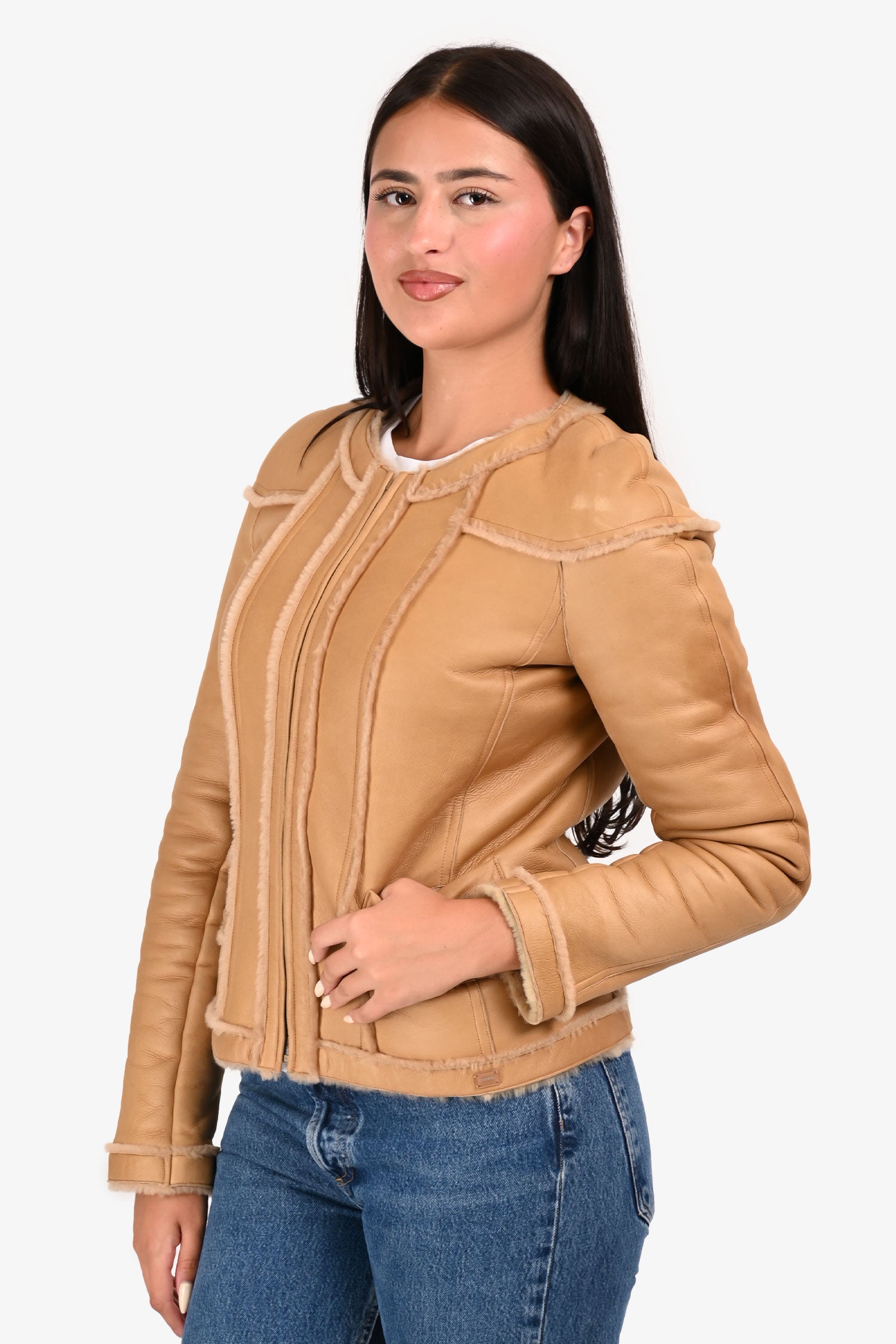 Refresh availabilityPre-Loved Chanel™ 2004 Beige Lambskin Fur Biker Jacket. Hidden zipper closure in the front. Fur trim detailing. Four slide-in pockets. Tonal stitching.
