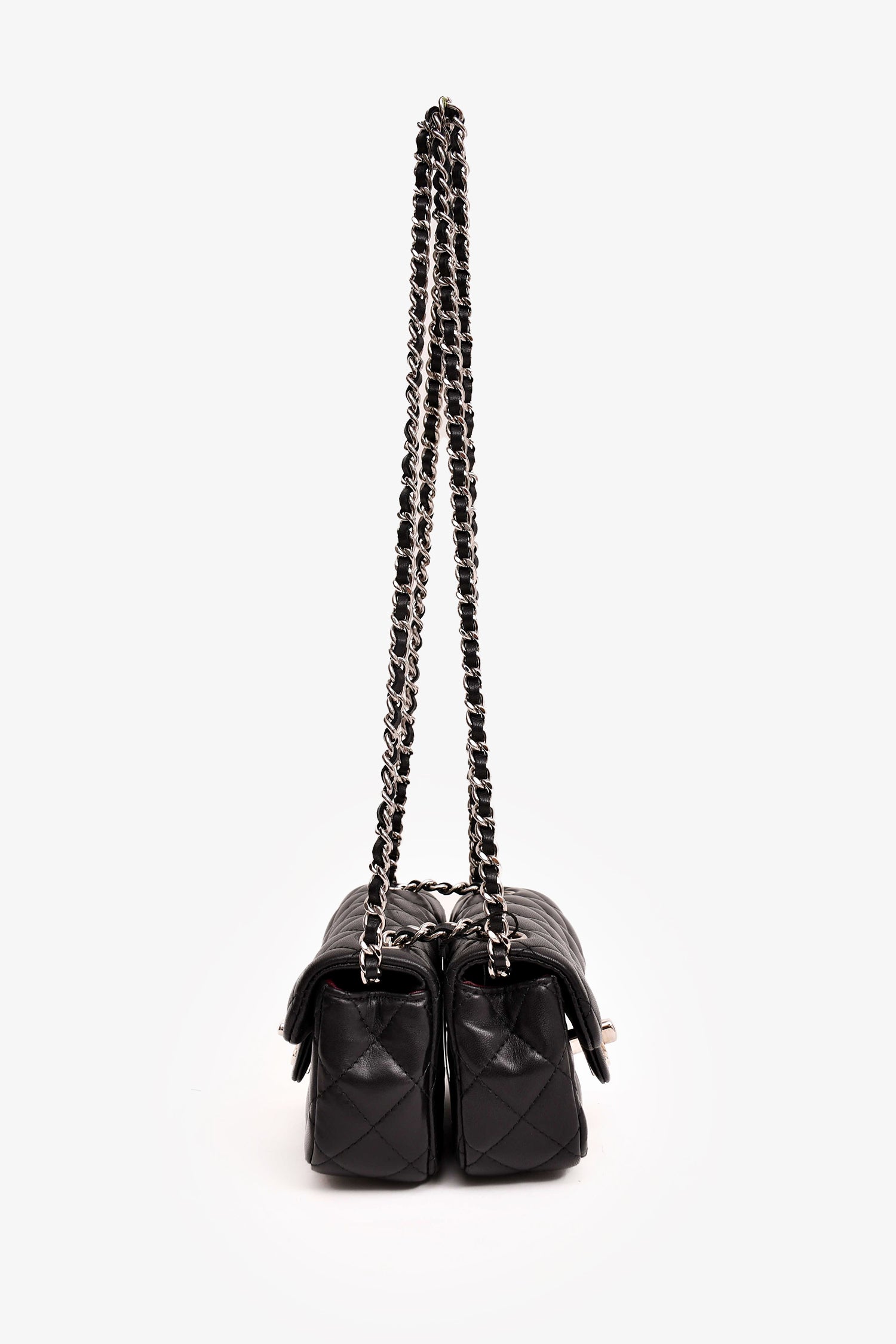 Pre-Loved Chanel™ 2011/12 Black Lambskin Twin Flap Shoulder Bag