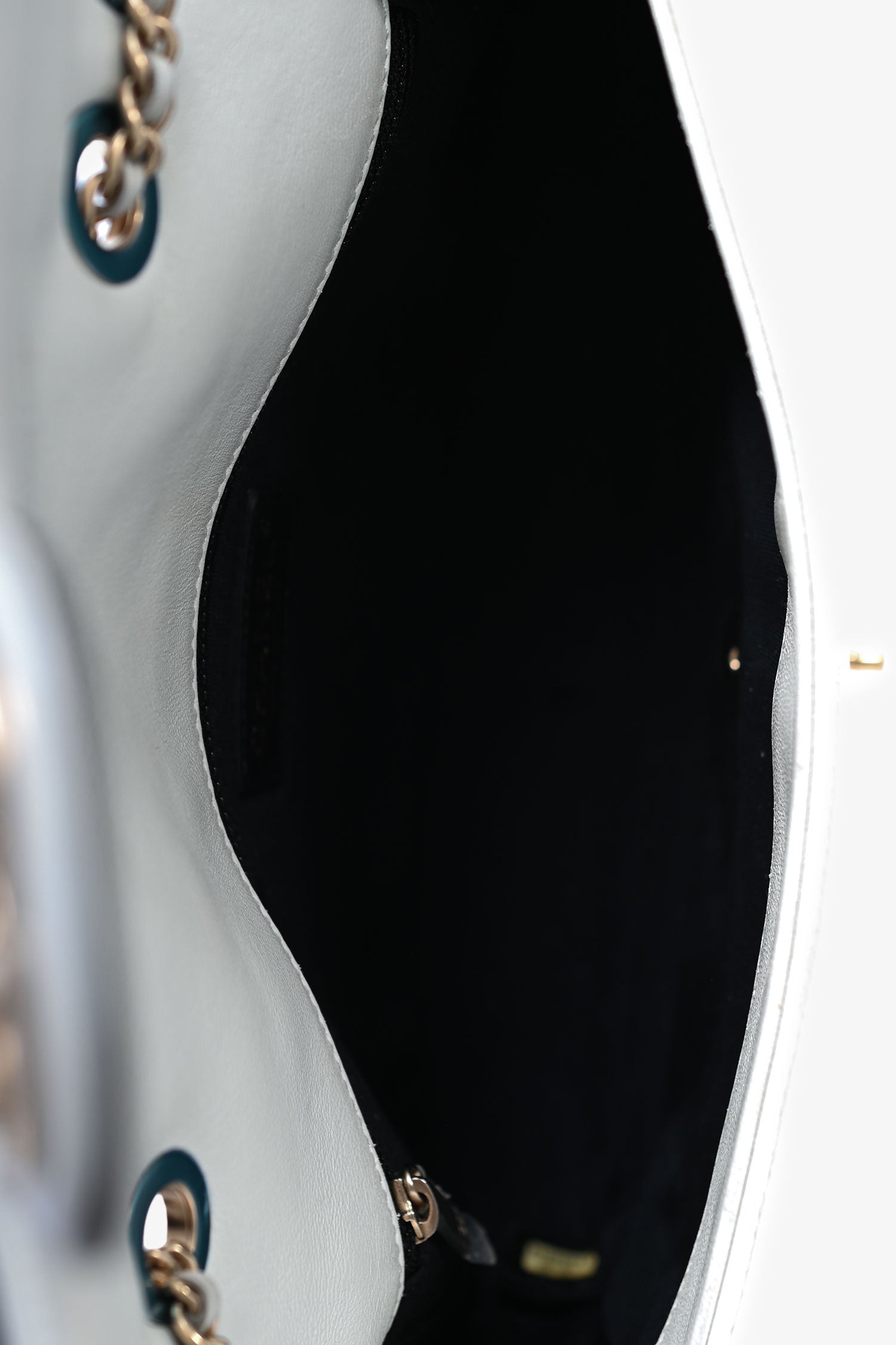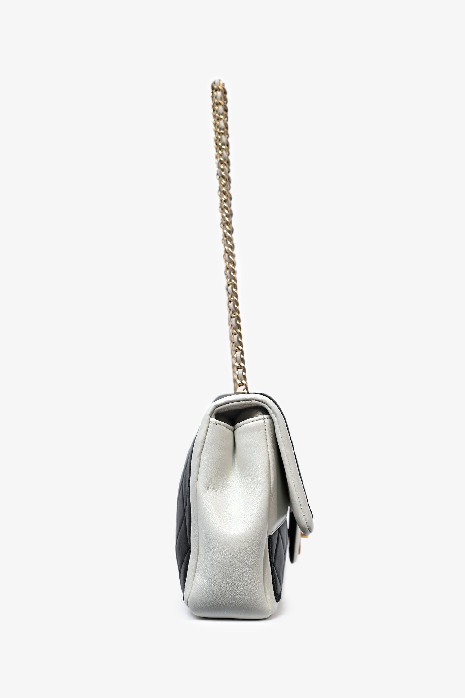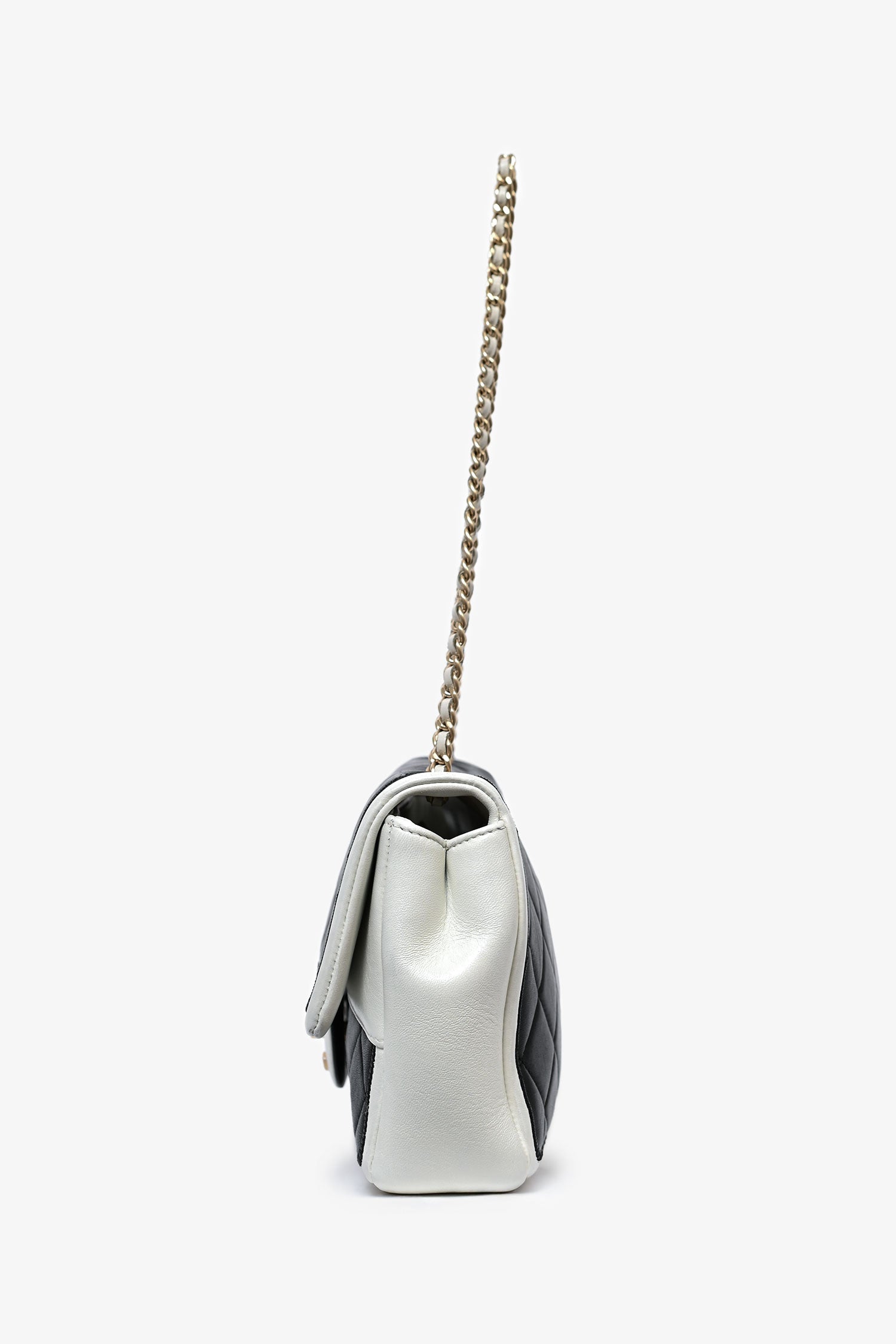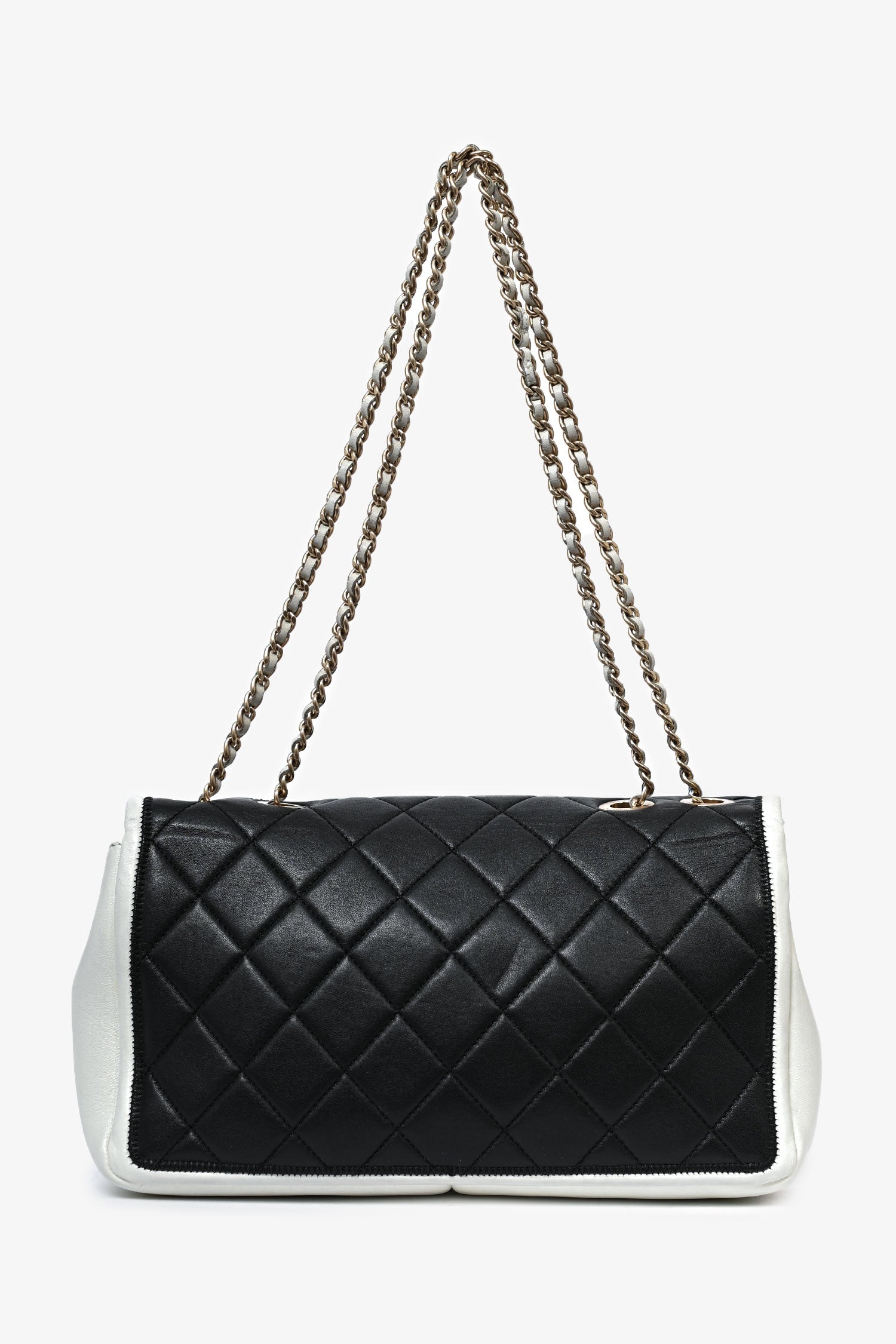 Refresh availabilityPre-Loved Chanel™ 2012/13 Black/White Lambskin Medium Graphic Flap Bag. Gold-tone turn-lock closure. Fold-over flap. Lined interior with a zipped compartment. Chain-link crossbody strap with woven white leather. Tonal stitching.