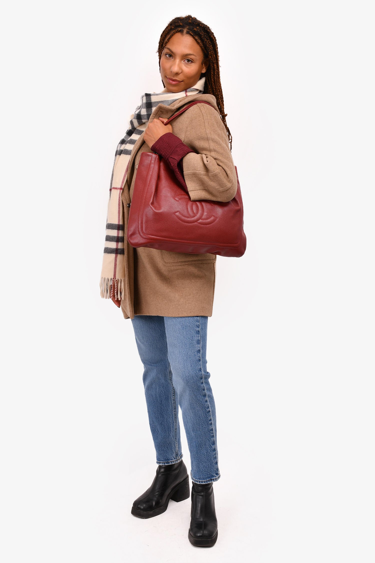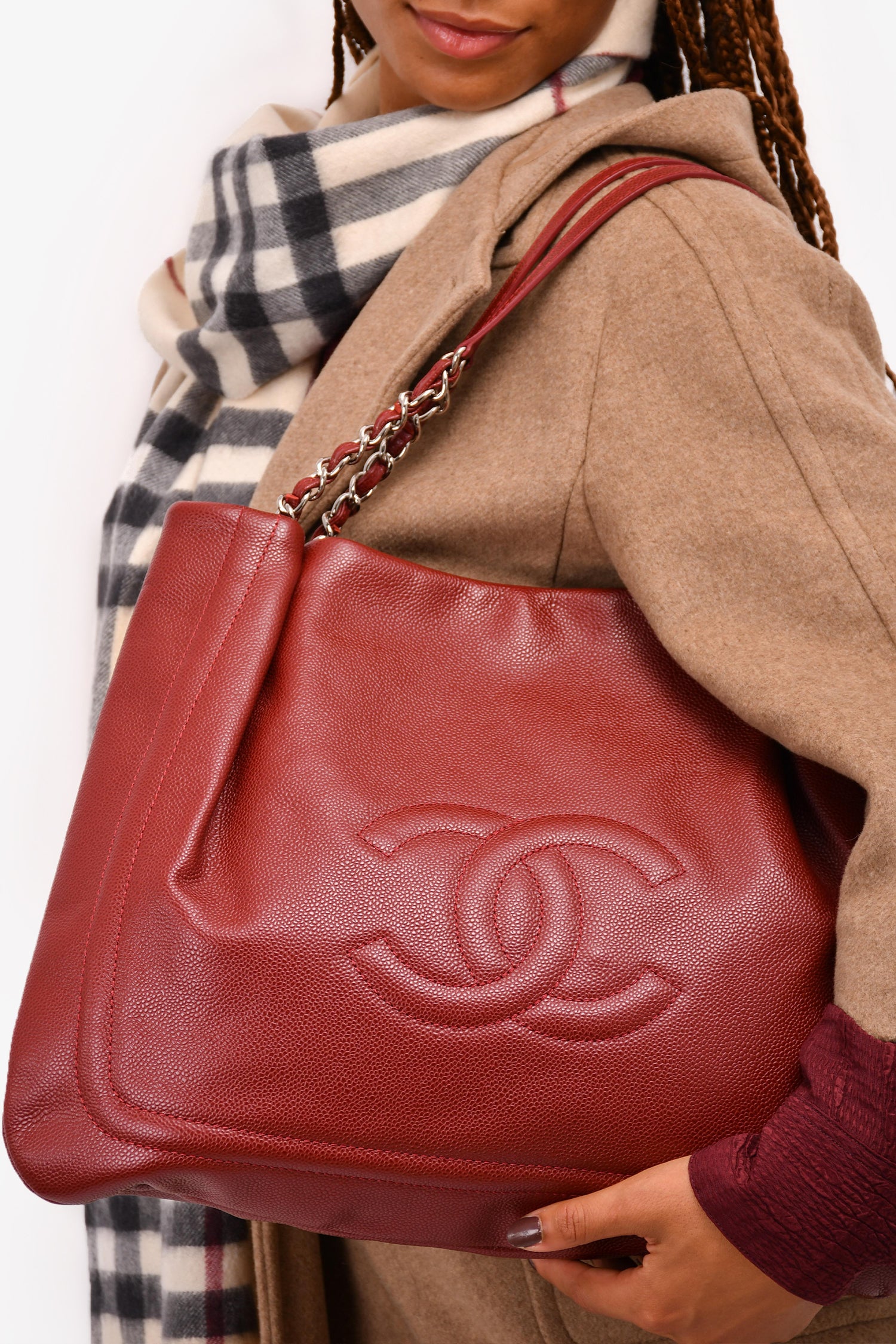 Refresh availabilityPre-Loved Chanel™ 2012 Burgundy Caviar Leather CC Timeless Pleated Tote. Tonal stitching. Silver-tone hardware. Snap closures. 2 chain-link handle straps. Single interior compartment. 1 zipped interior compartment.