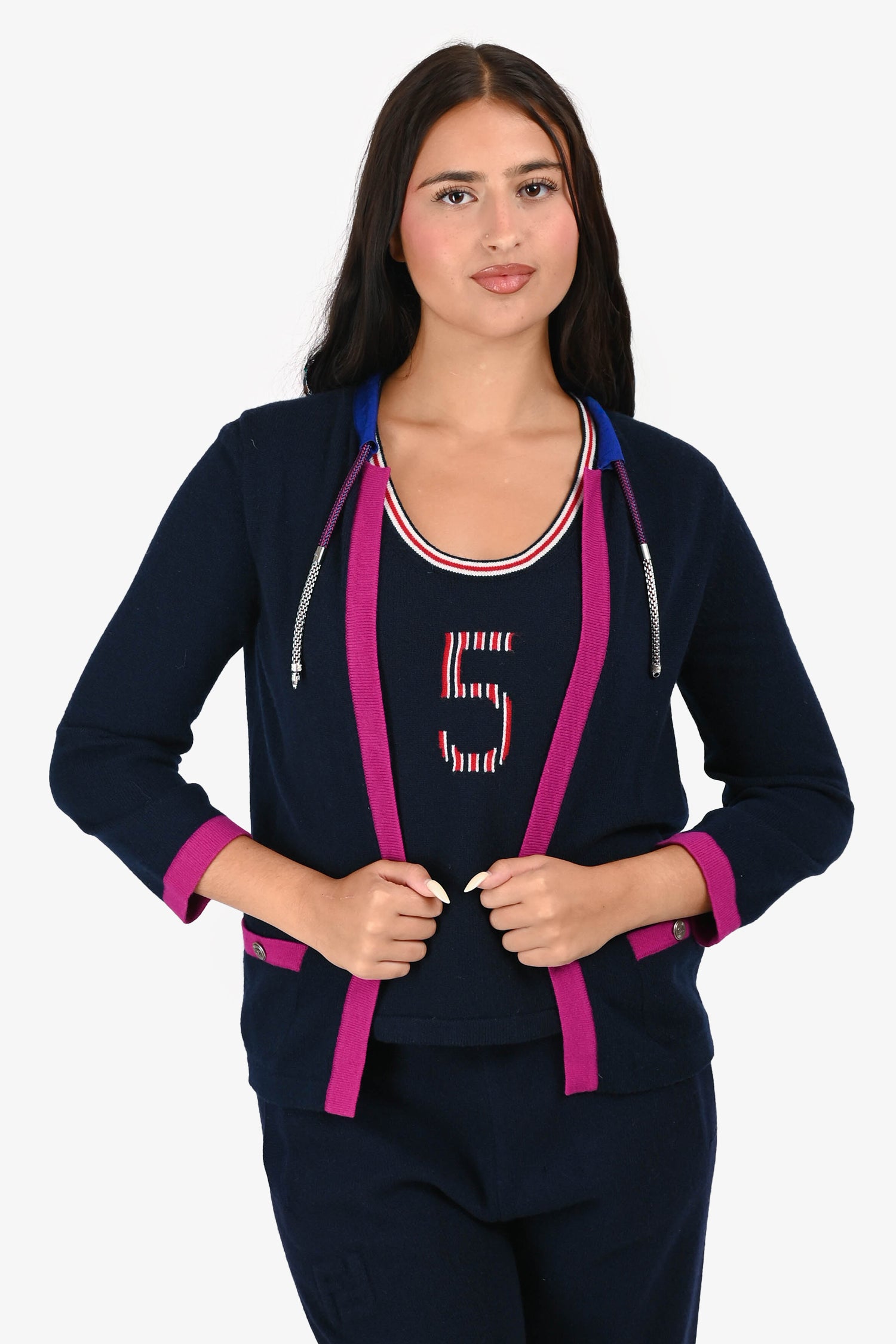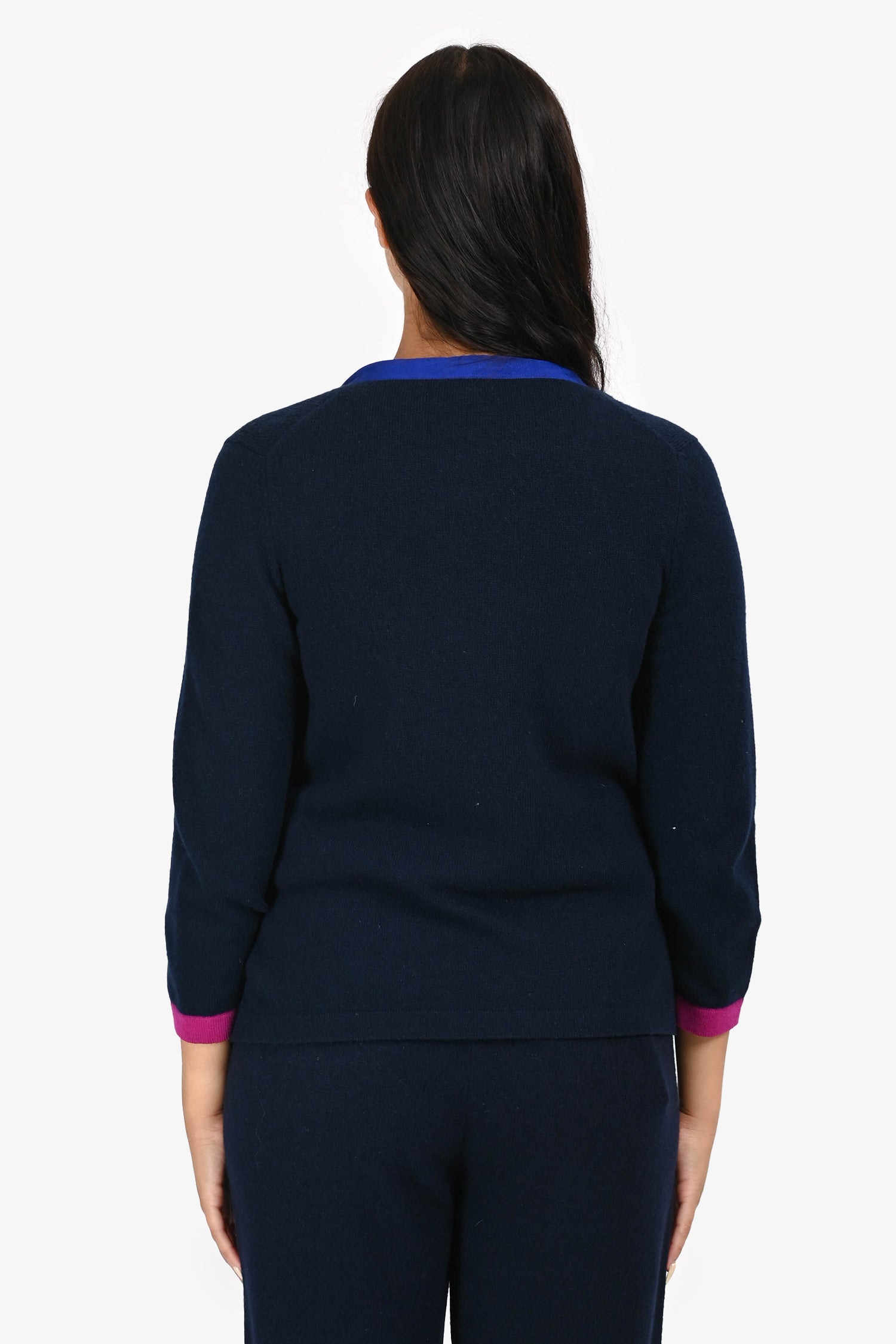 Pre-Loved Chanel™ 2012 Navy/Fuchsia Trimmed Cashmere Cardigan Size 36