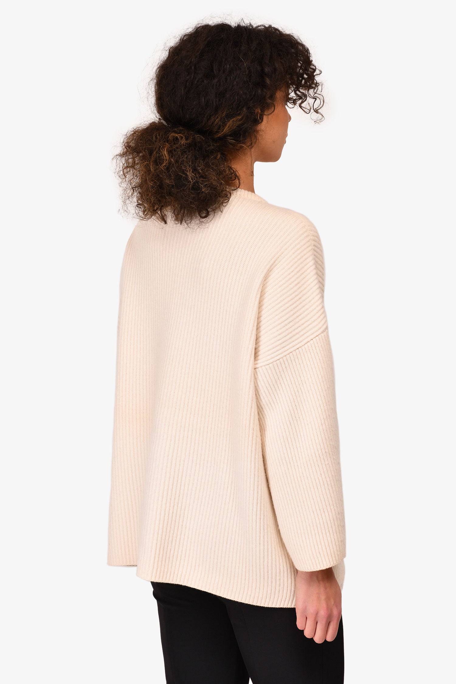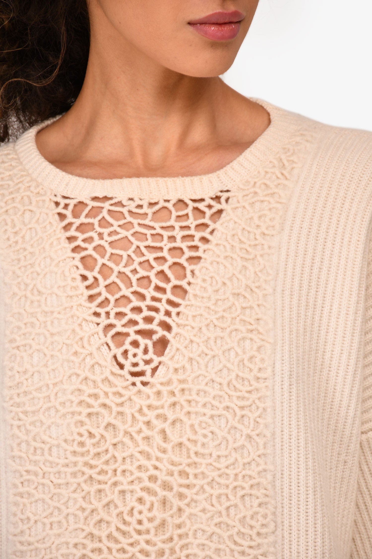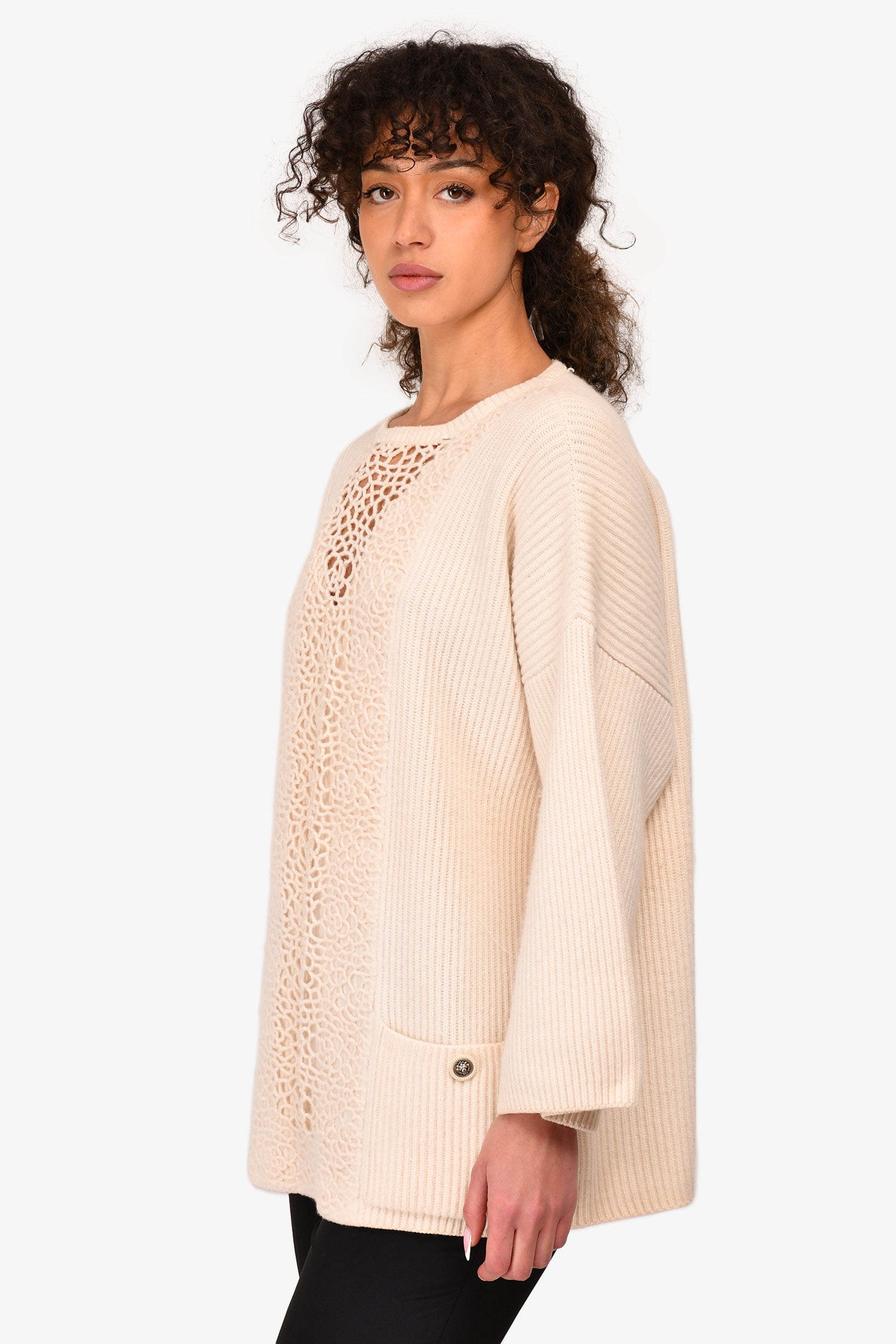 Pre-Loved Chanel™ 2014 Cream Cashmere Camellia Flower Detail Sweater Size 40