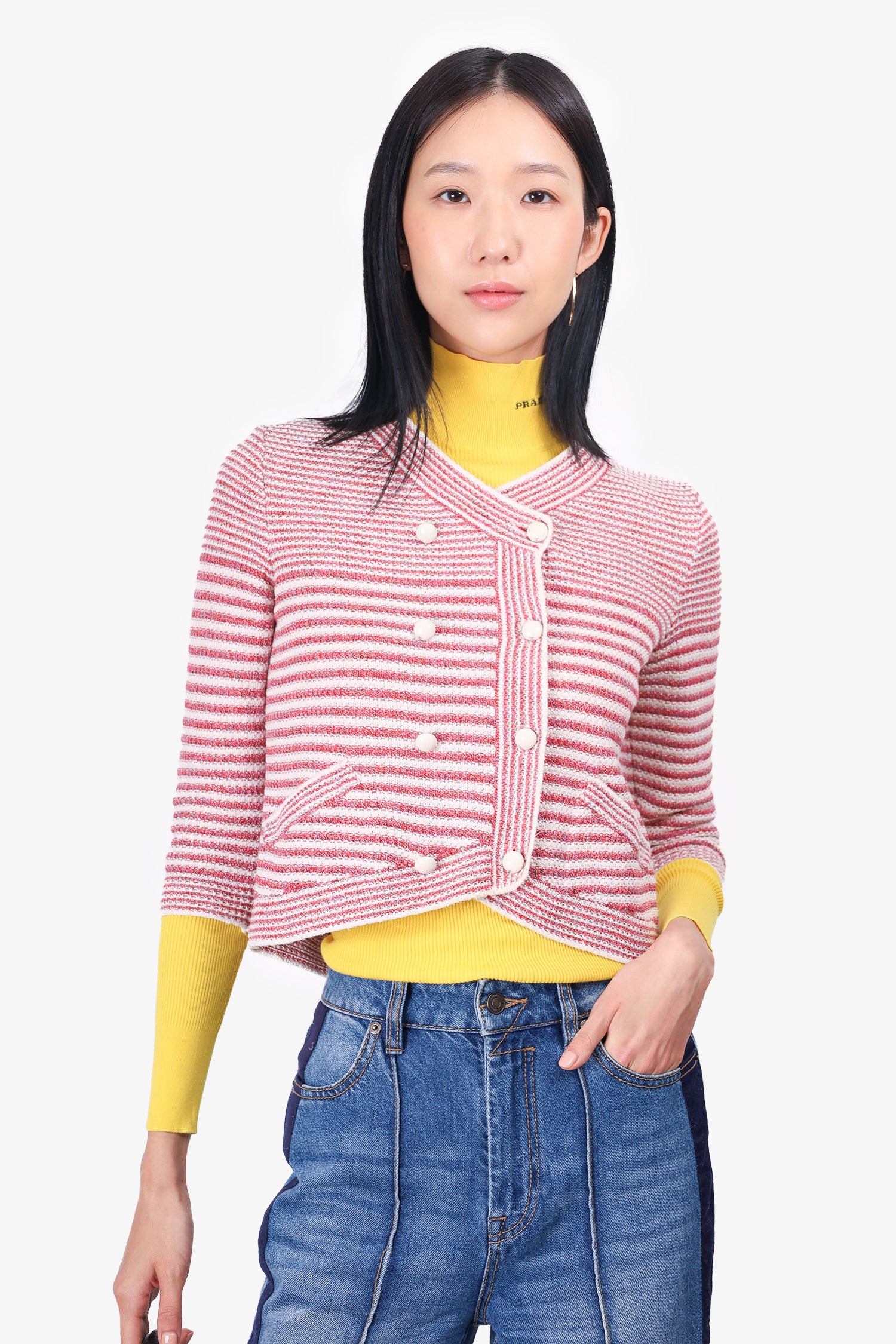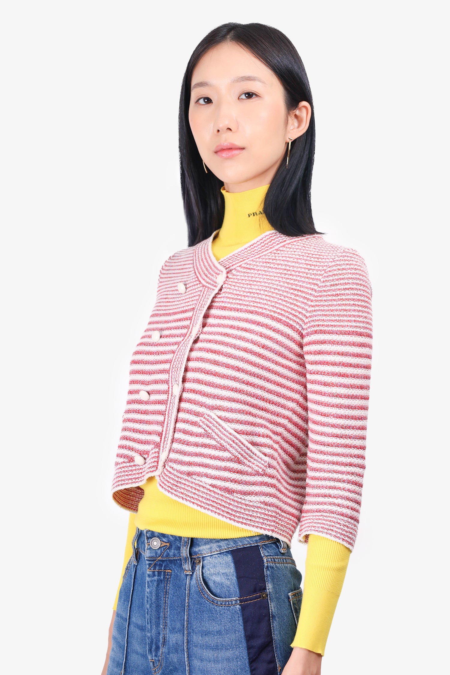 Refresh availabilityPre-Loved Chanel™ 2015 Red/White Striped Tweed Jacket. Front button closure. Front slip pockets. Unlined. Tonal stitching.