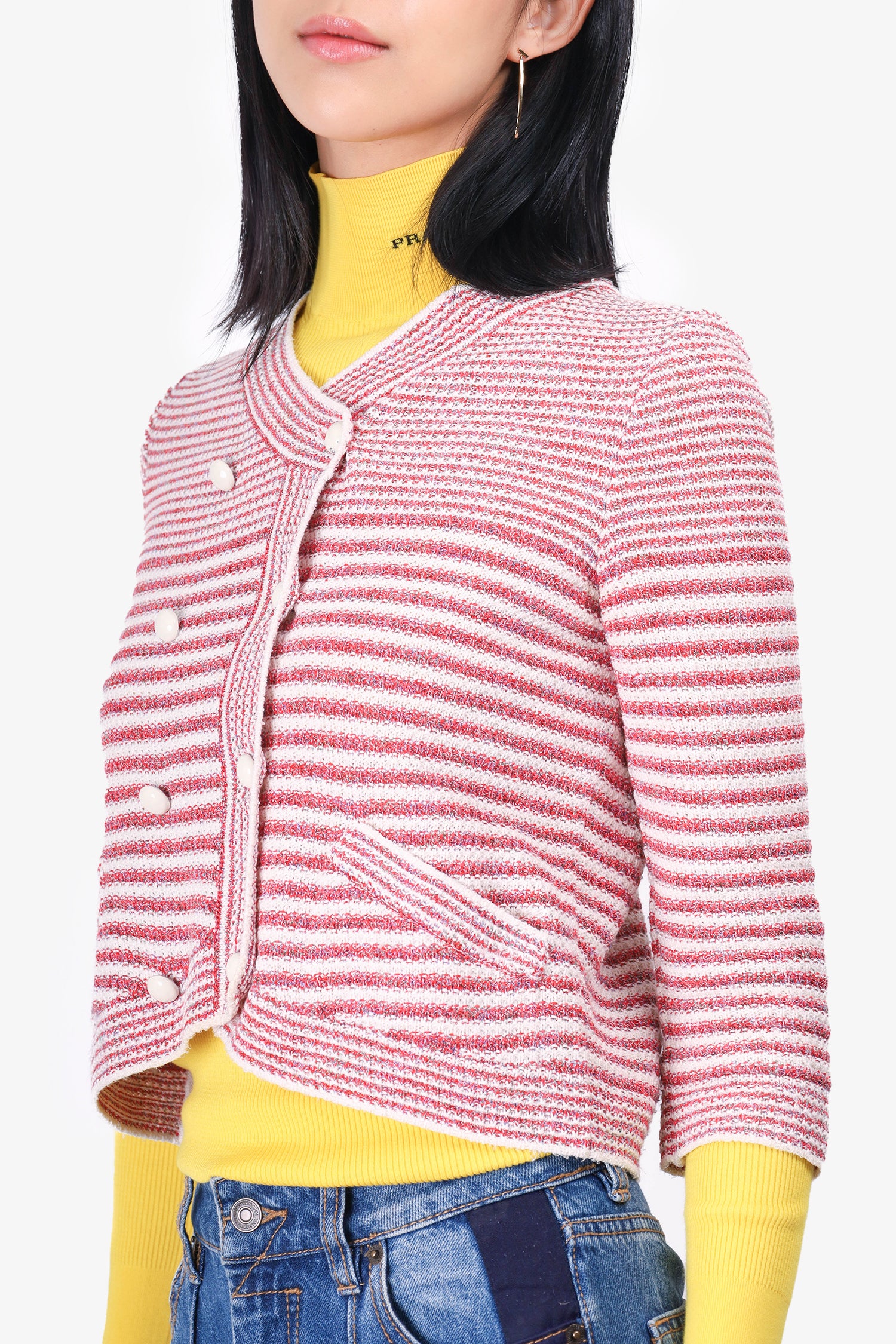 Pre-Loved Chanel™ 2015 Red/White Striped Tweed Jacket Size 34