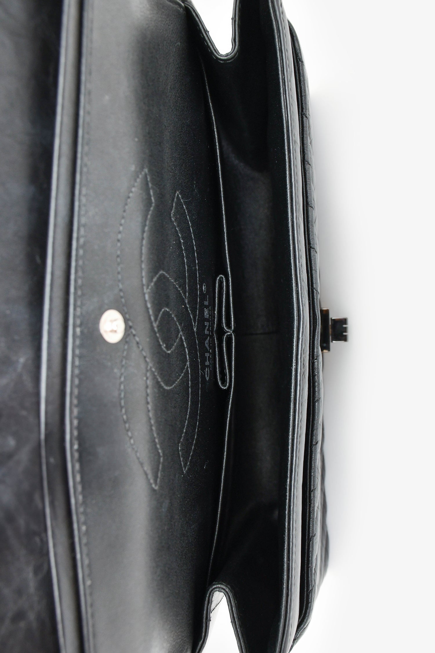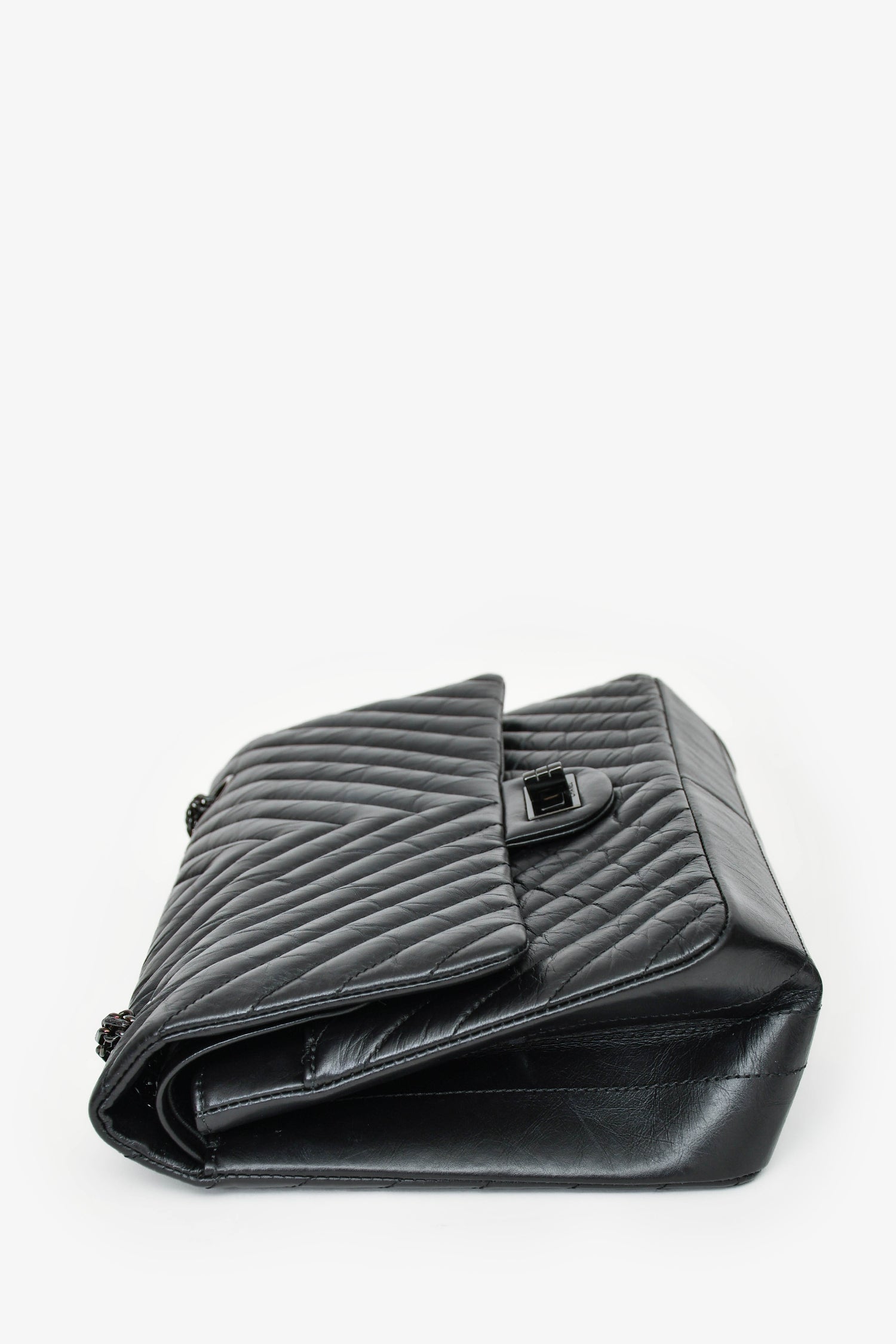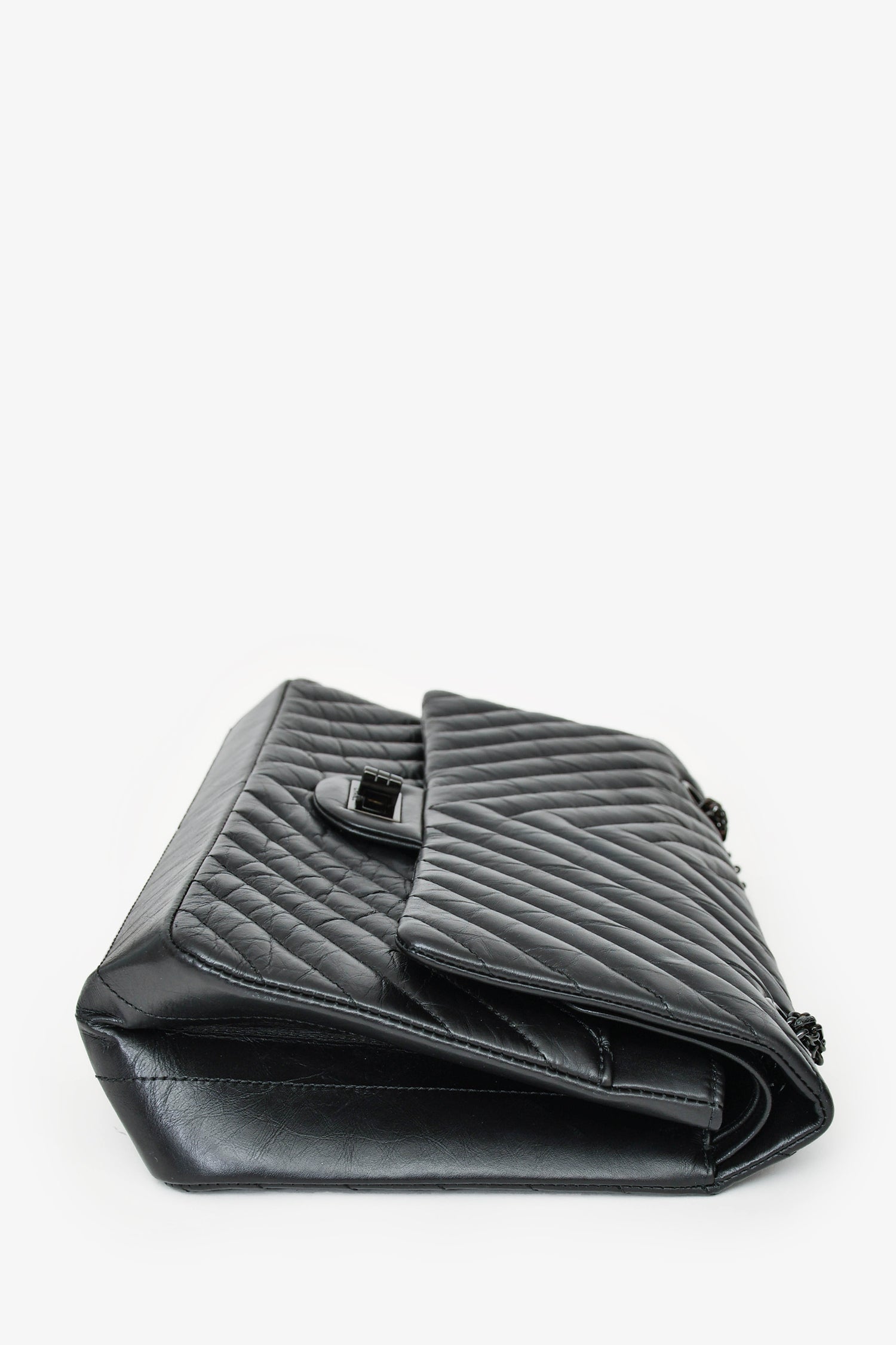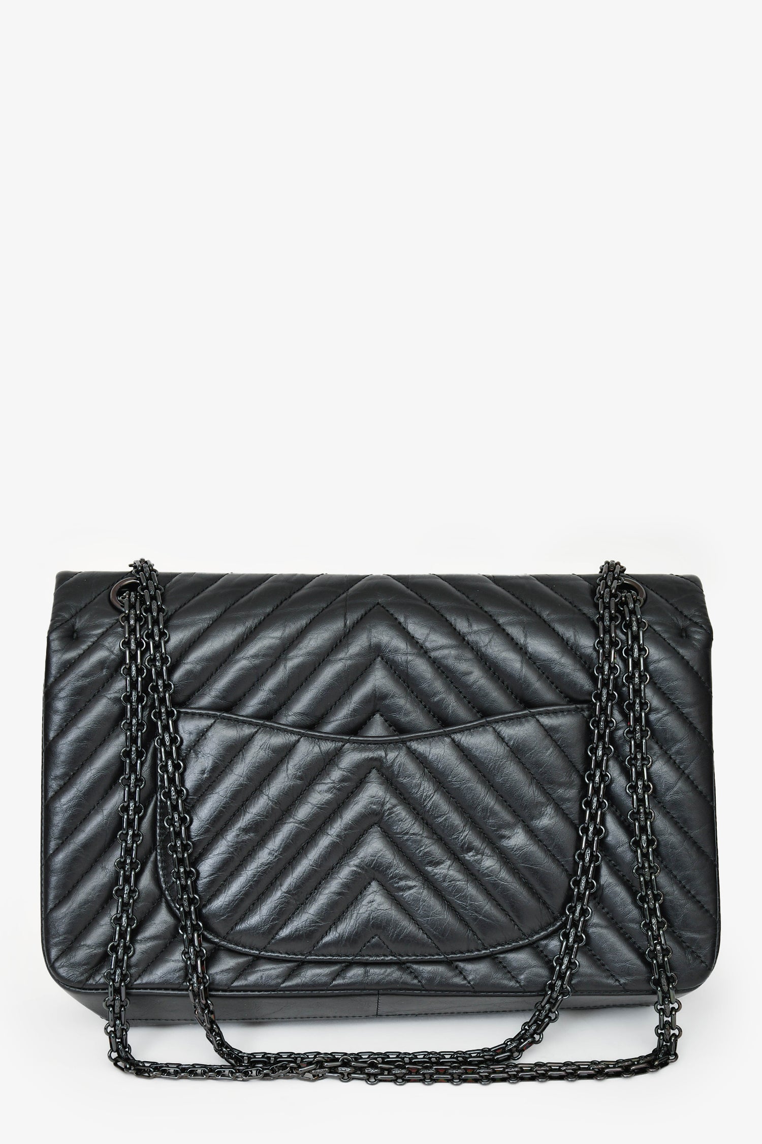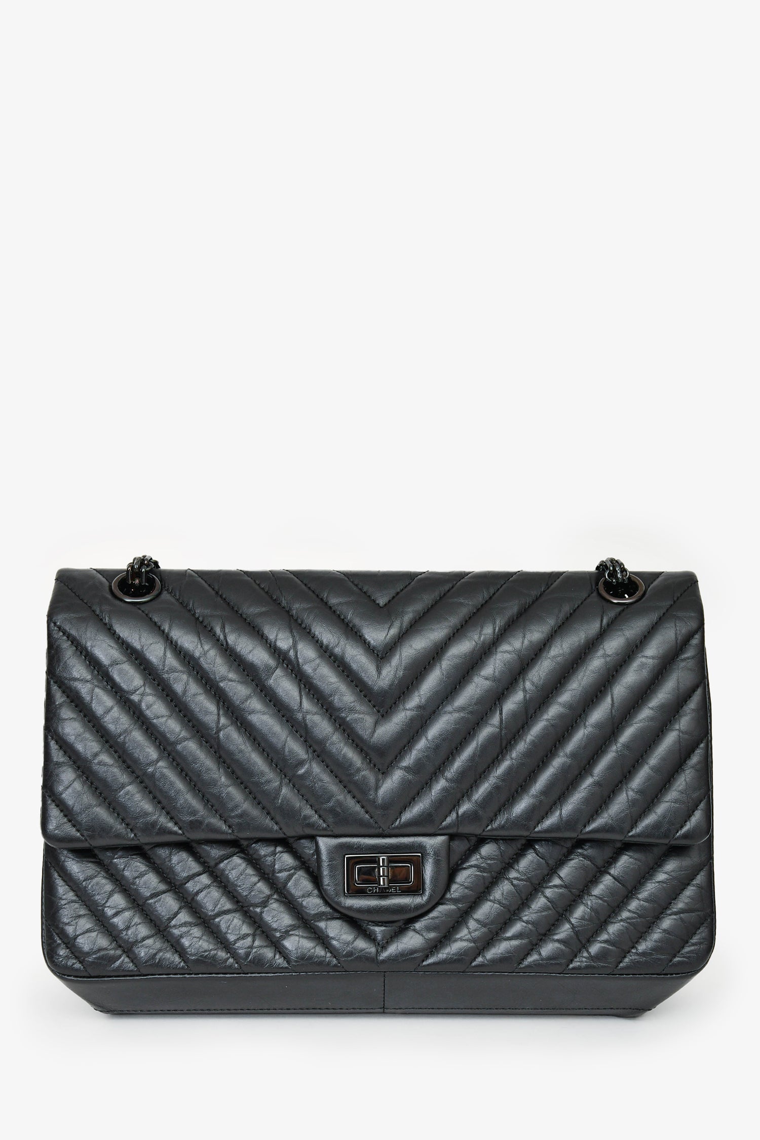 Refresh availabilityPre- Loved Chanel™ 2016-17 Black Reissue 227 Shoulder Bag. Turn-lock closure. Dual chain shoulder straps with adjustable drop. Flap top. Interior leather lining with two compartments and two slip pockets. Single exterior slip pocket. One zipped pocket underneath the flap. Tonal stitching.