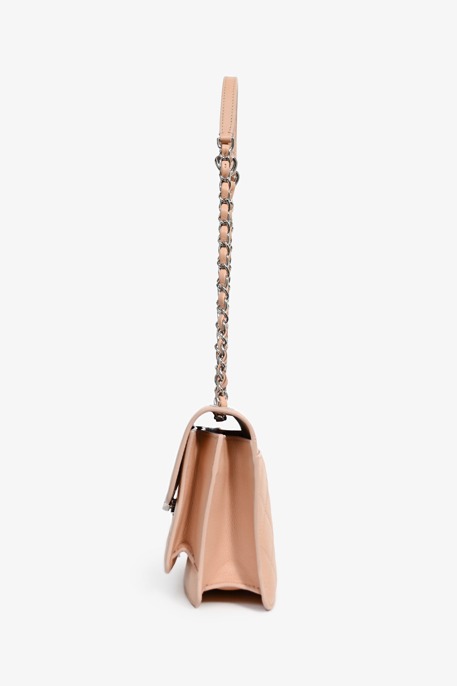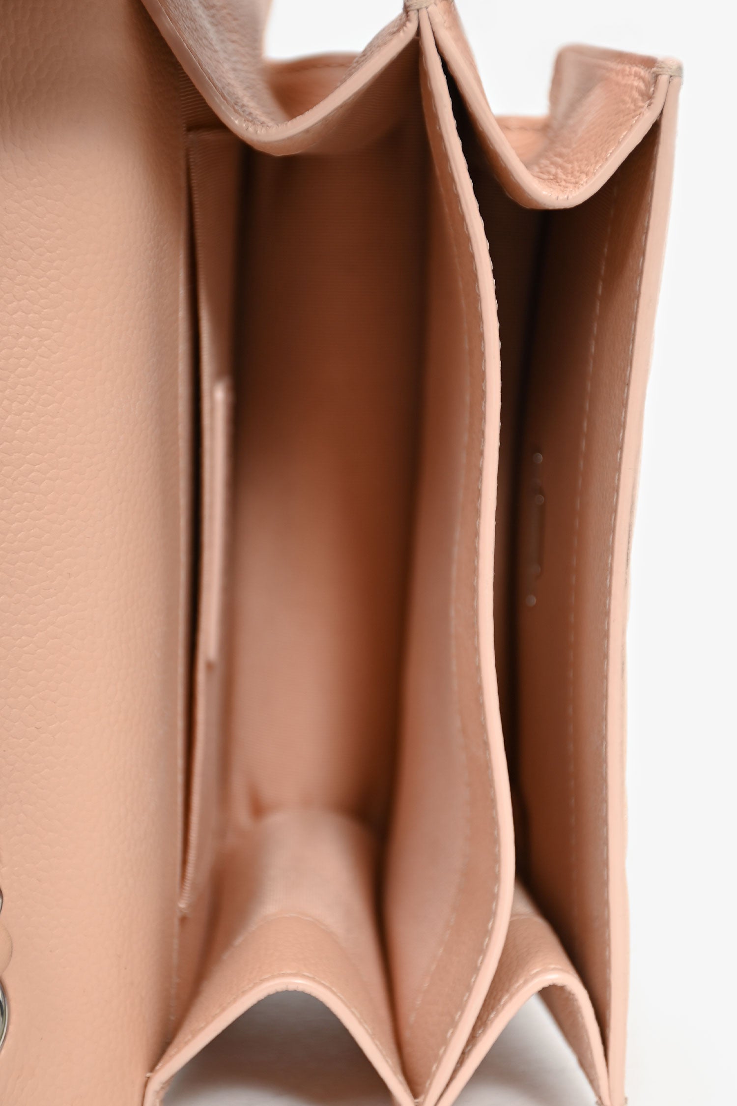 Refresh availabilityPre-Loved Chanel™ 2017 Beige Caviar Leather Mini Box Flap Bag. Front flap with signature CC push-lock closure. Chain and leather crossbody strap. Leather-lined interior. Two interior compartment and single slip pocket. Sliver-tone hardware. Tonal stitching. Comes with dust bag.