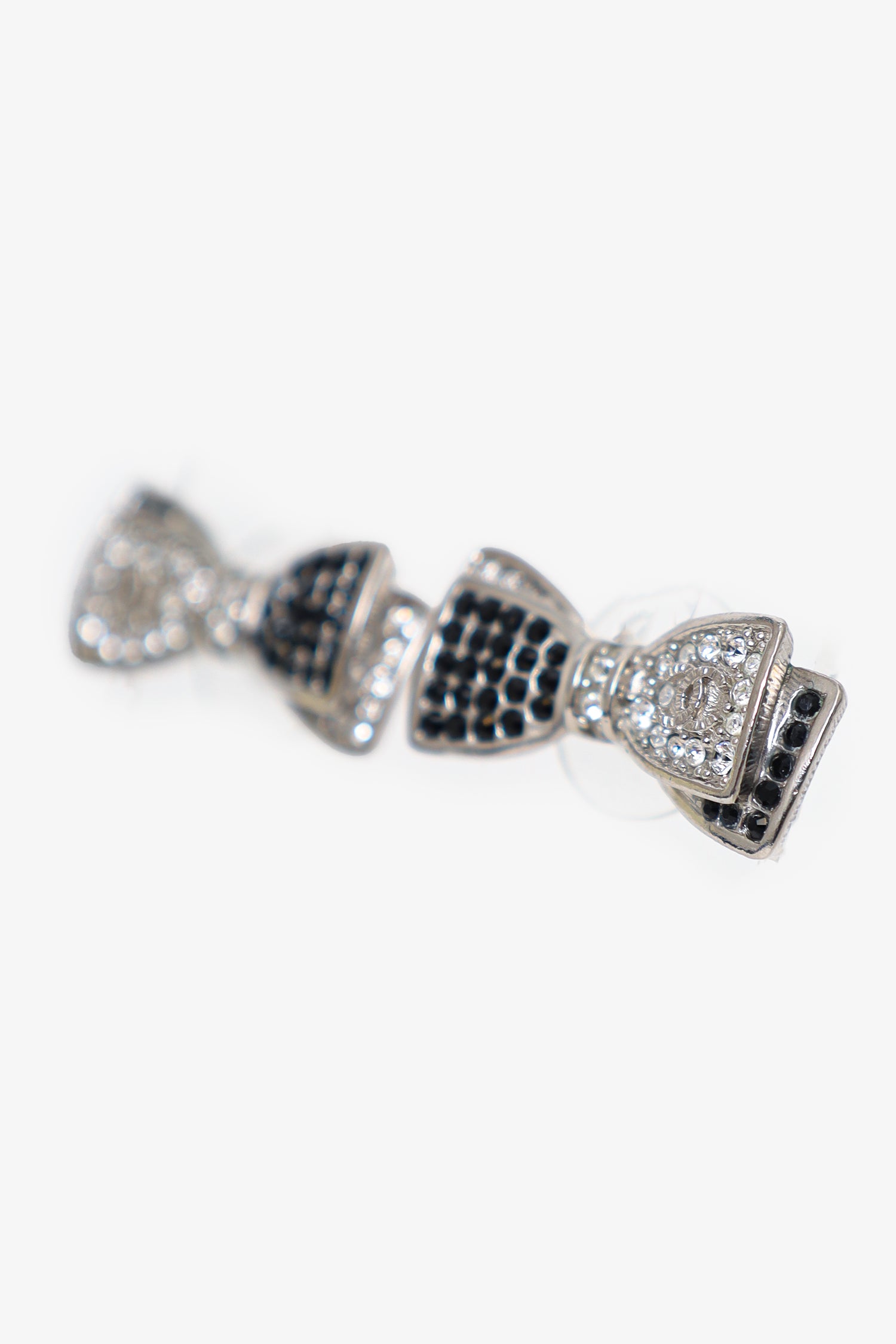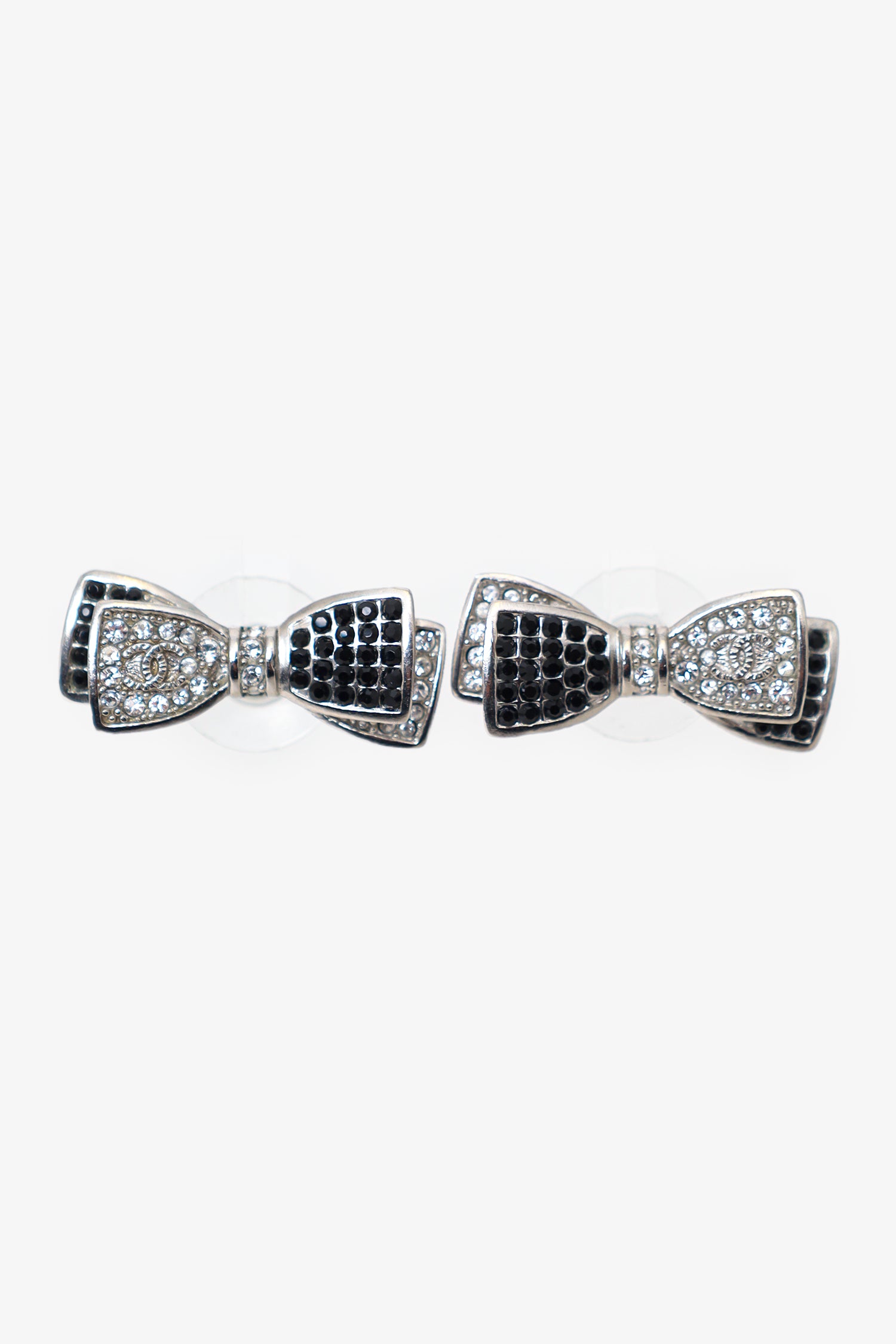 Pre-Loved Chanel™ 2017 Black/Silver Crystal Bow Earrings