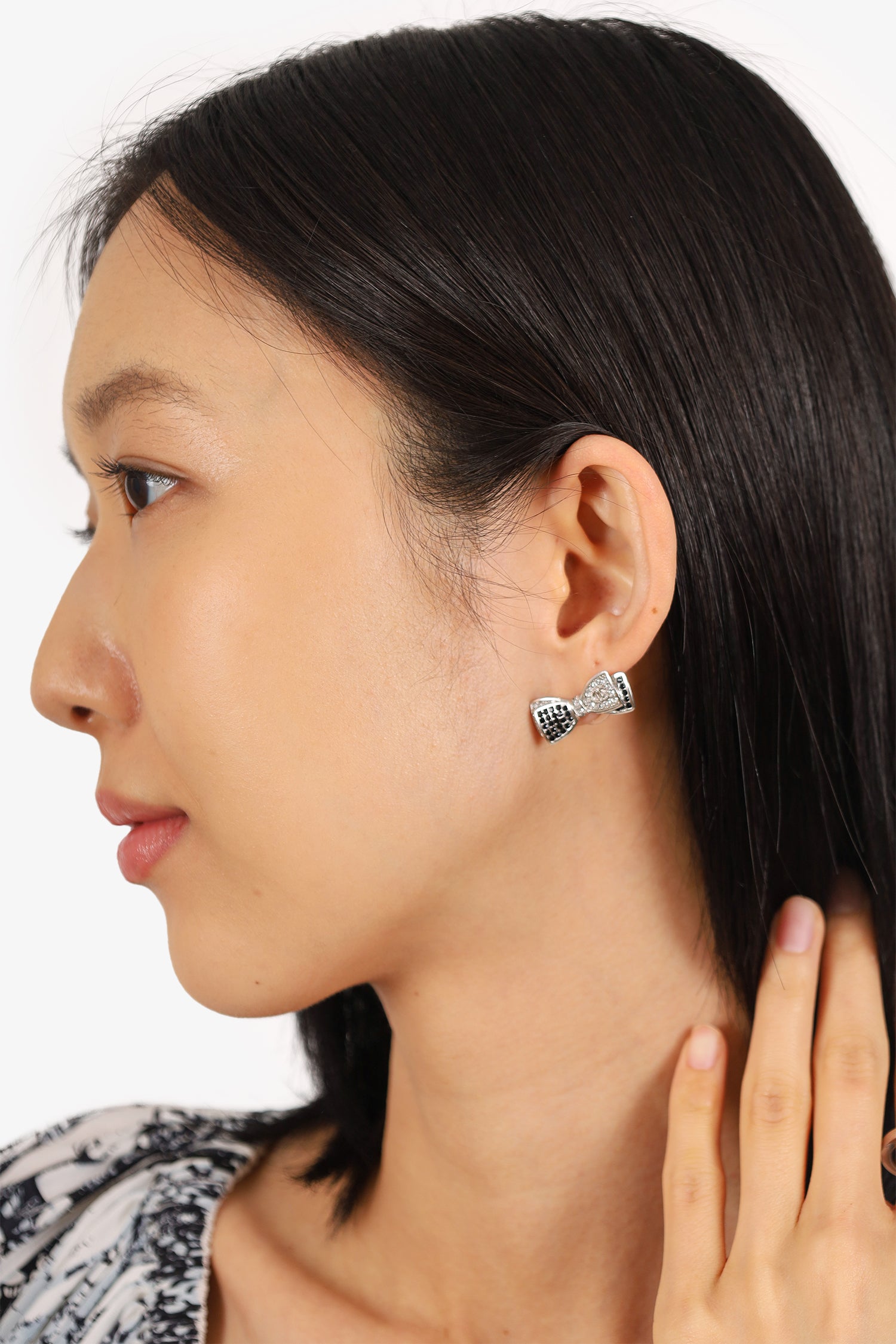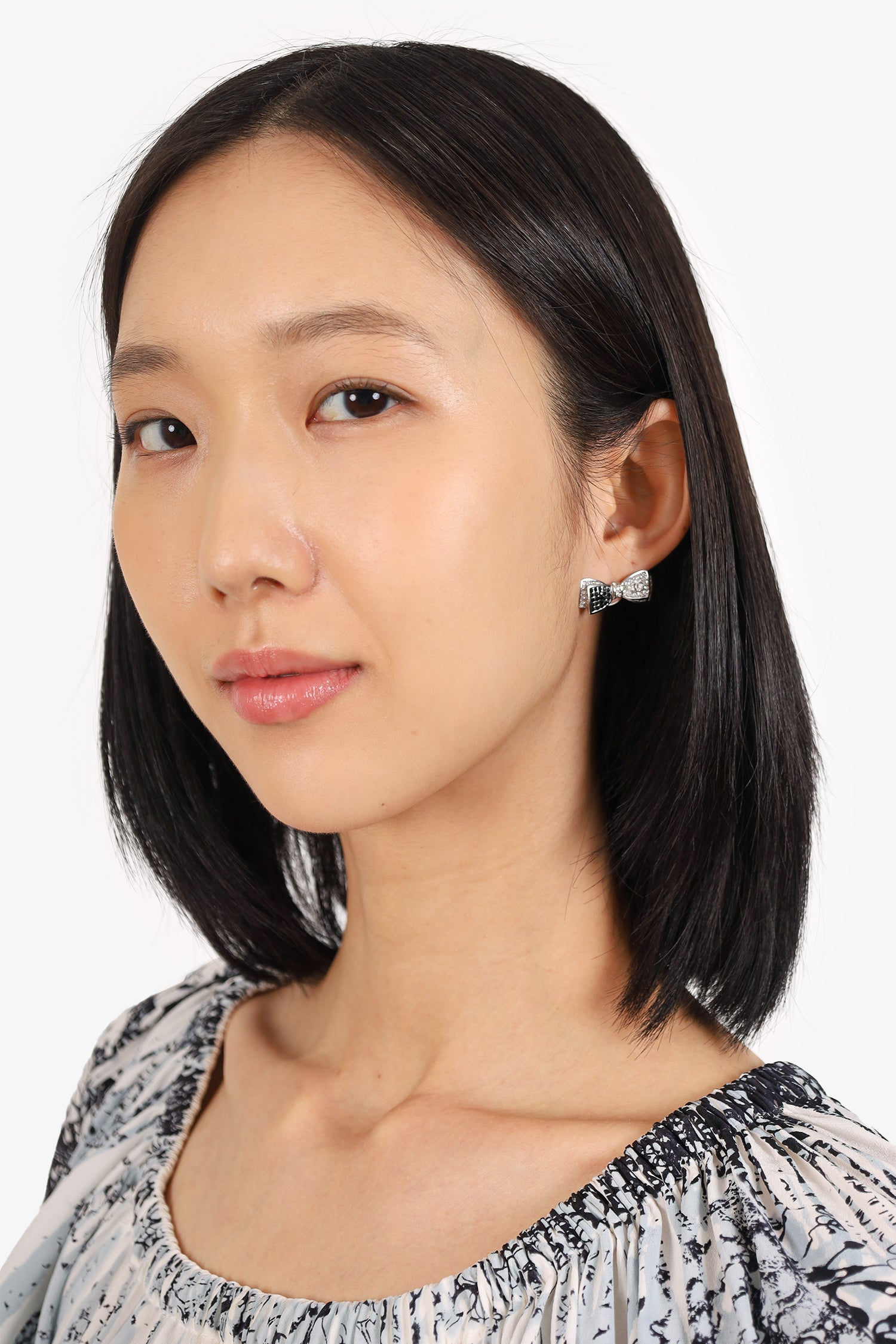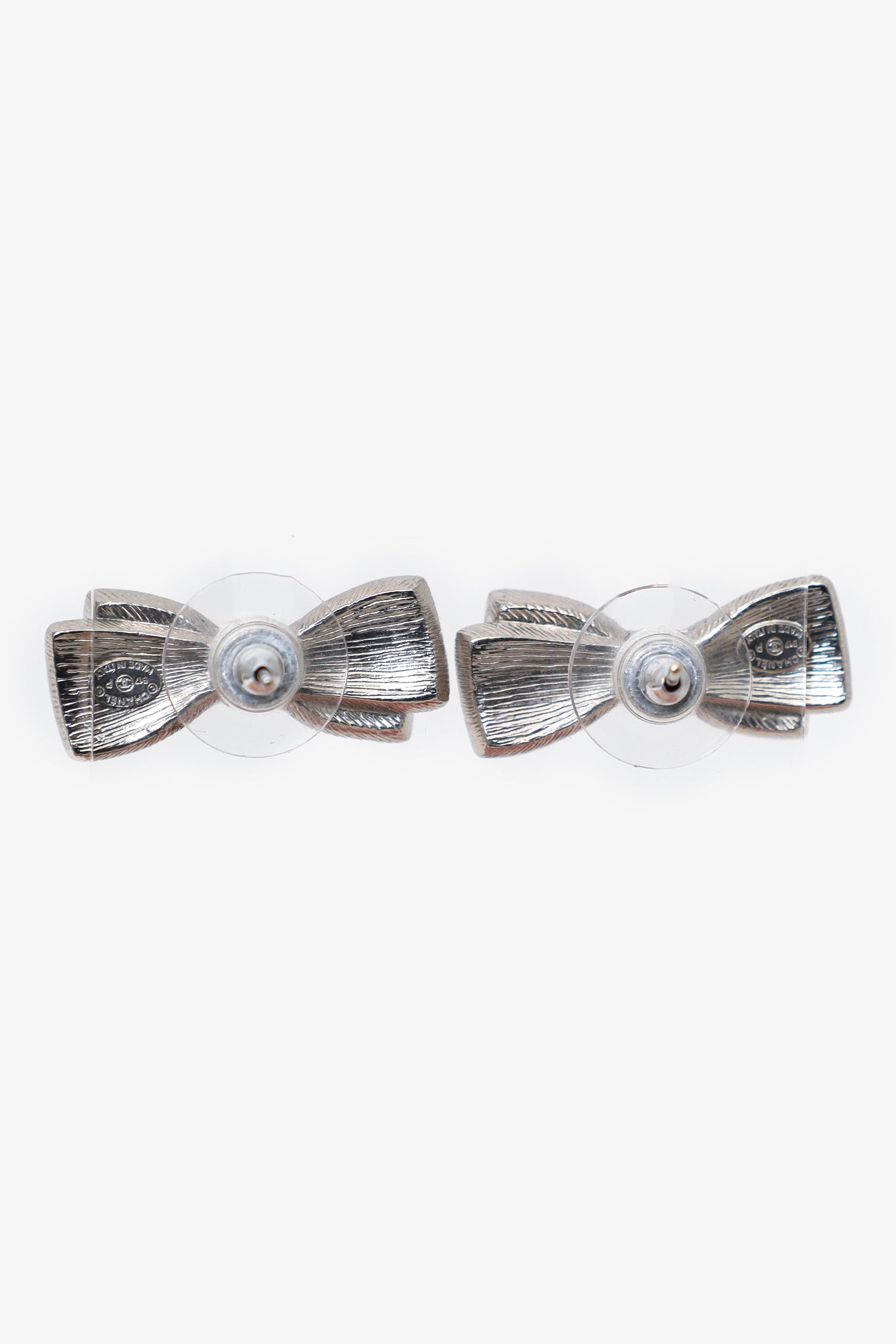 Refresh availabilityPre-Loved Chanel™ 2017 Black/Silver Crystal Bow Earrings. Push-pin closure. Silver-tone hardware.
