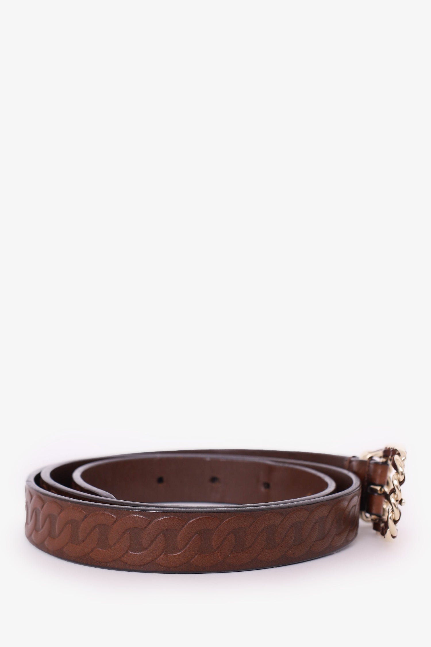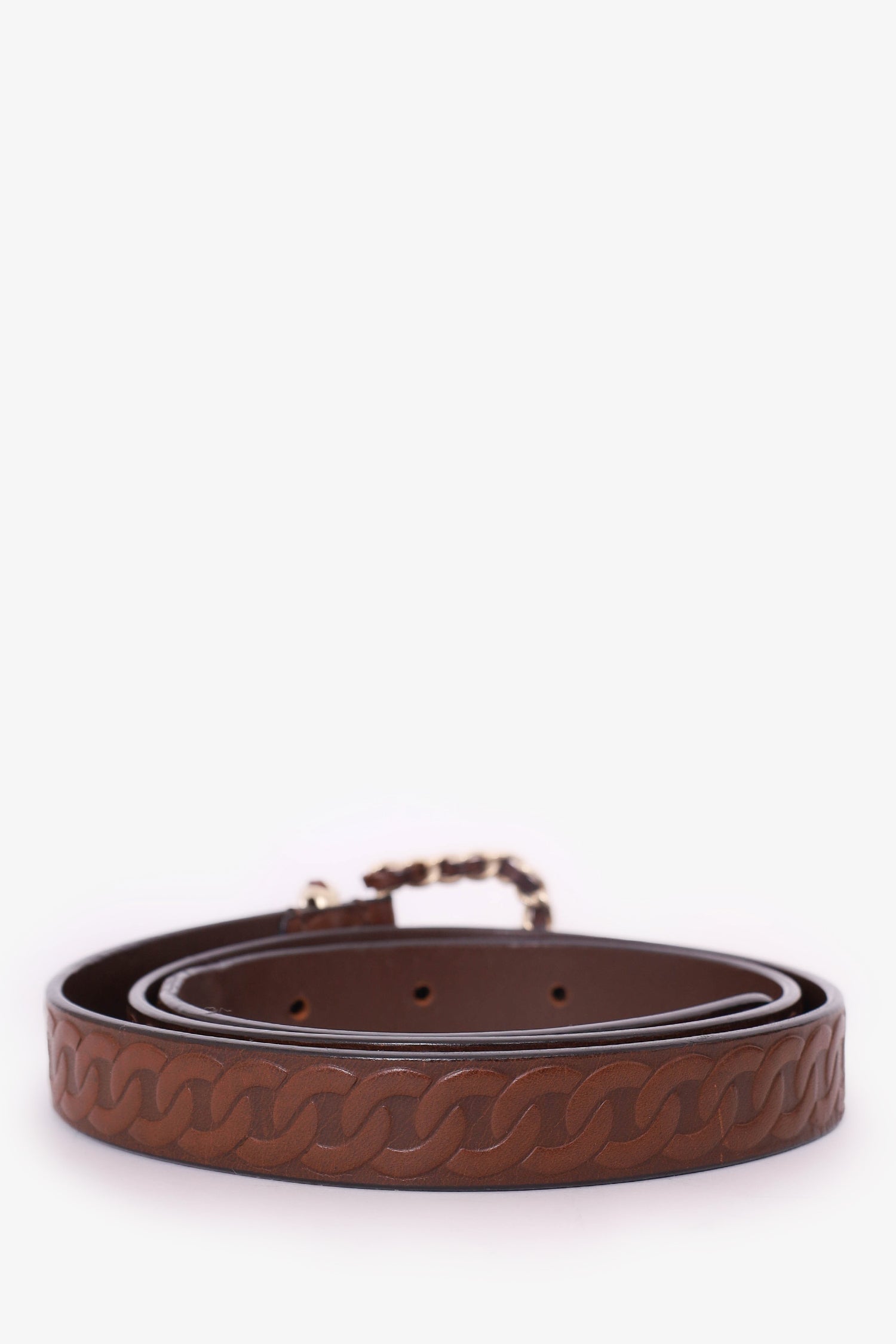 Pre-Loved Chanel™ 2017 Brown Leather Chain Buckle Belt Size 85/34