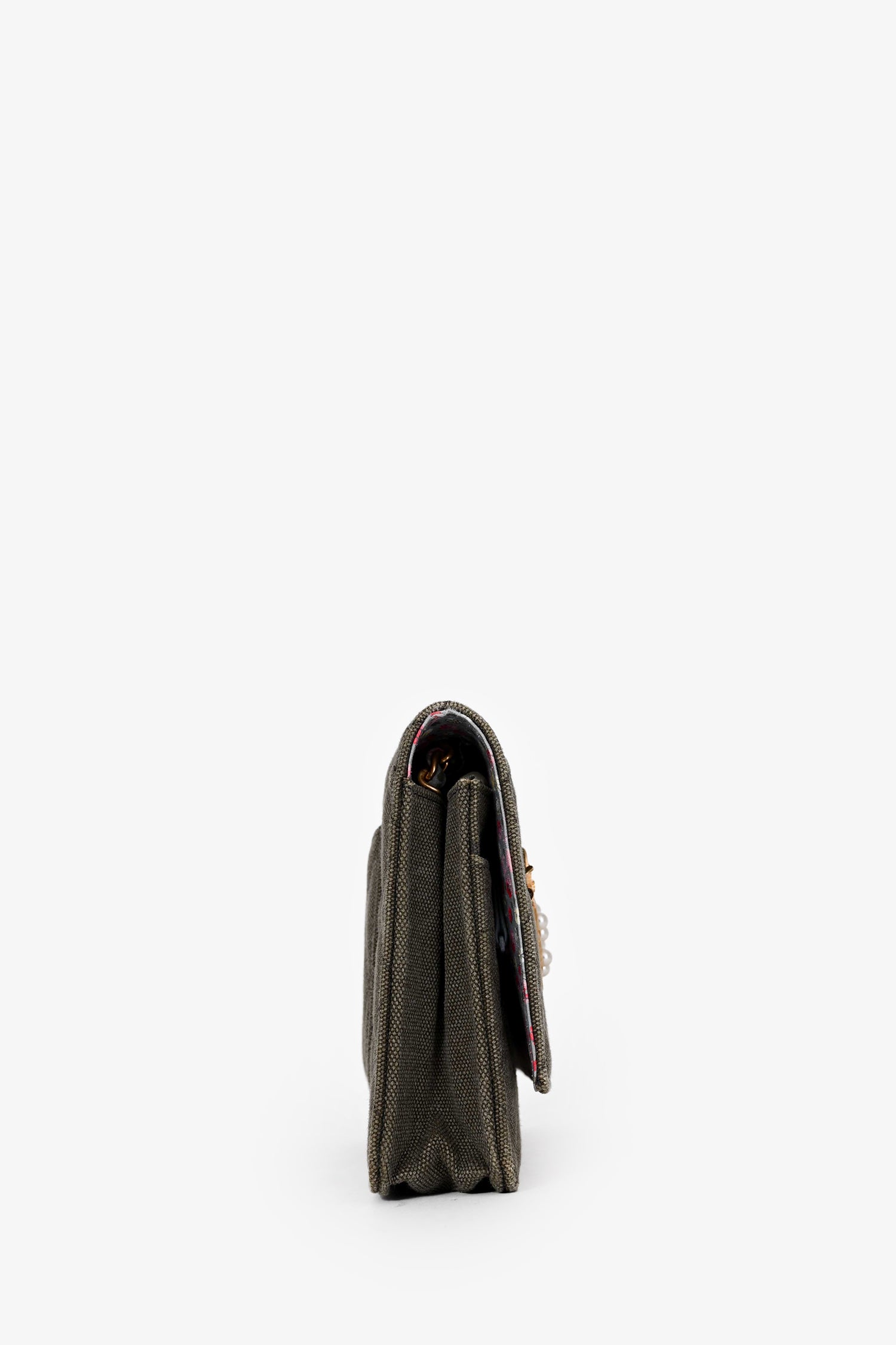 Pre-Loved Chanel™ 2017 Khaki Green Denim Coco Cuba Charm Wallet On Chain