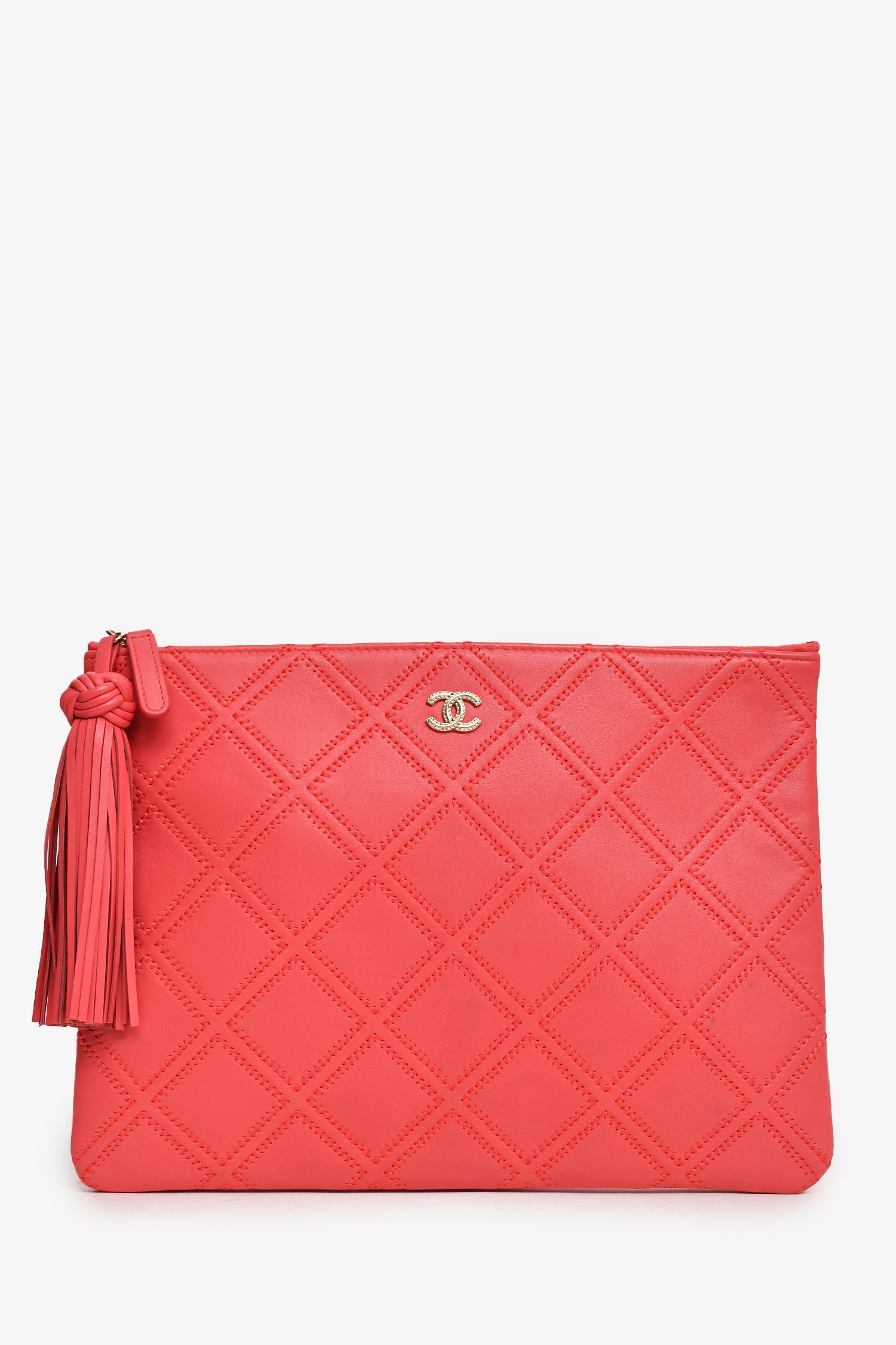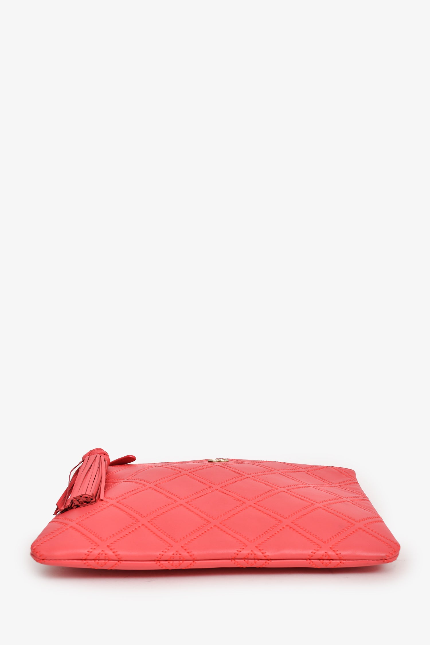 Refresh availabilityPre-Loved Chanel™ 2017 Pink Quilted CC Zip Pouch. Gold-tone hardware. Upper zipped top with attached tassel. Quilted interior. Tonal stitching.