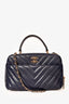 Pre-Loved Chanel™ 2018 Navy Chevron Leather Medium Trendy Bowling Top Handle