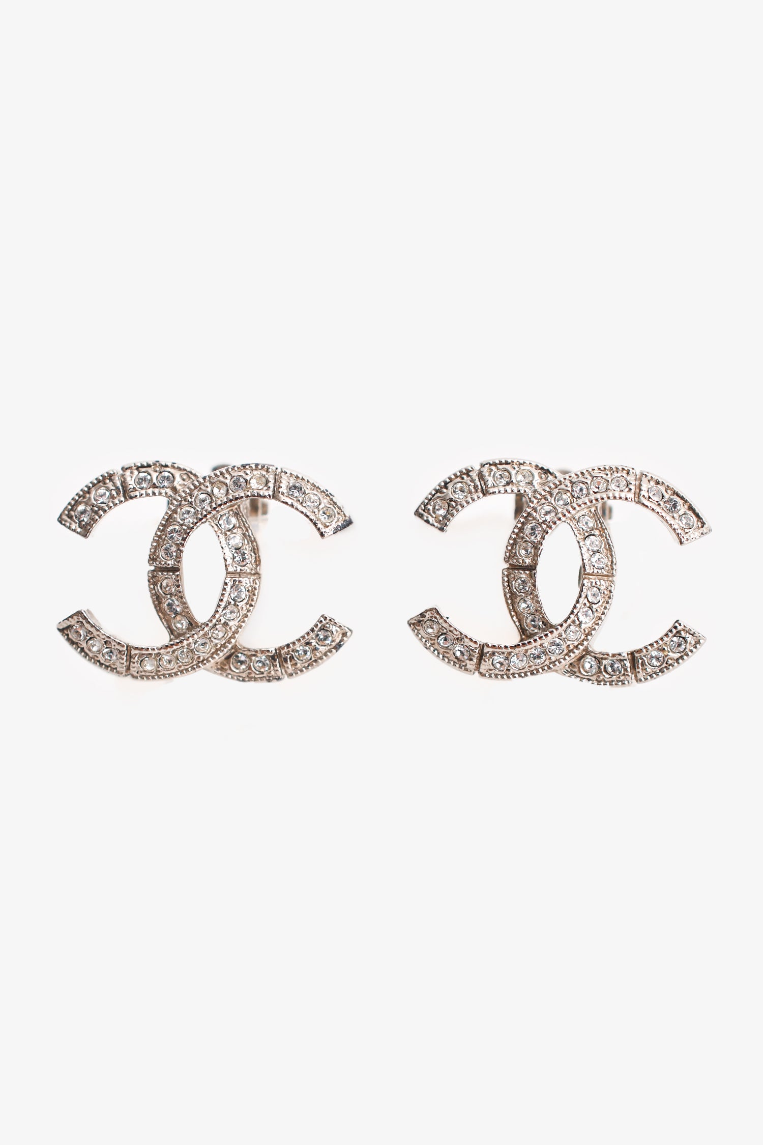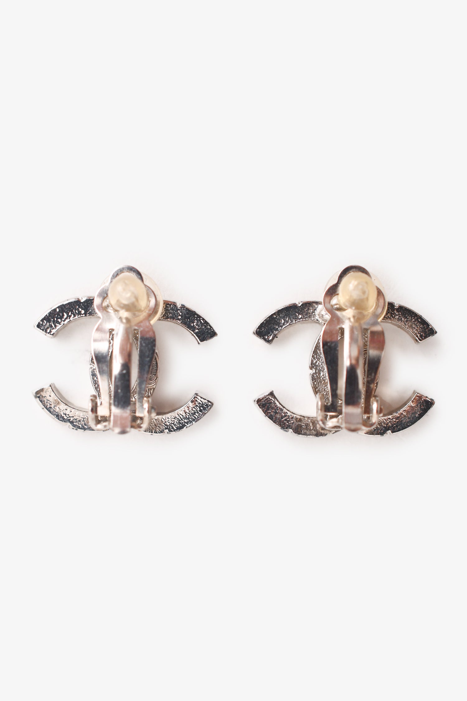 Pre-Loved Chanel™ 2016 Silver Tone CC Embellished Clip-On Stud Earrings.