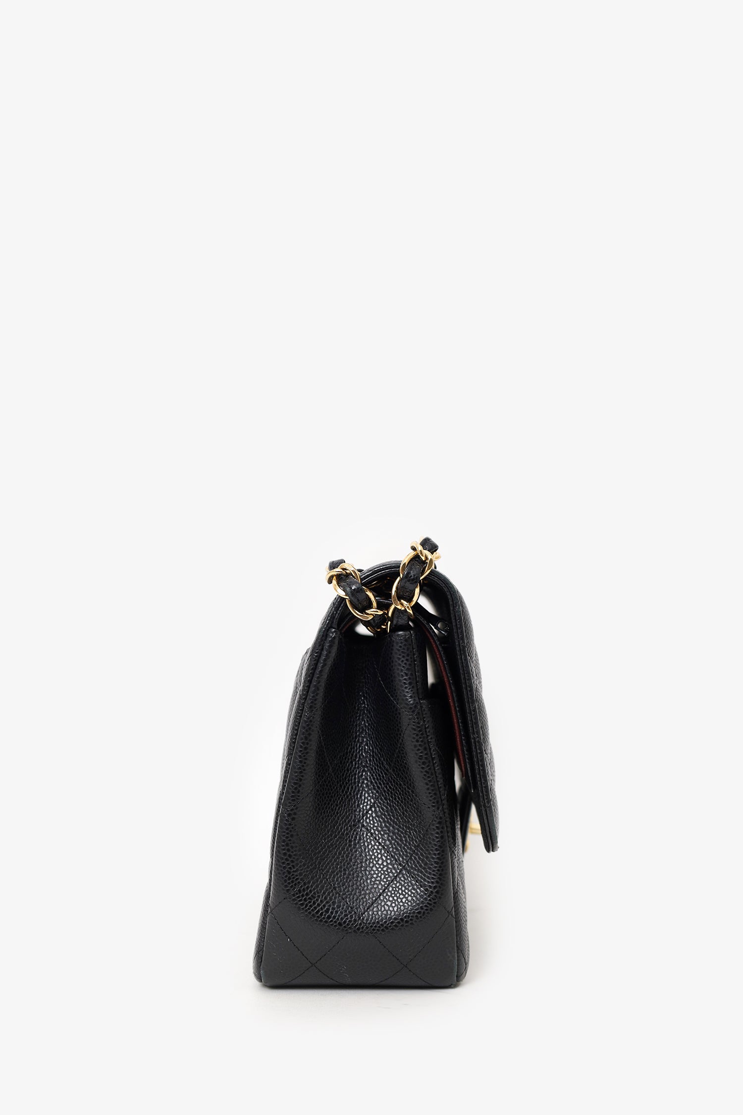 Pre-Loved Chanel™ 2019 Black Caviar Leather Jumbo Double Flap Should Bag