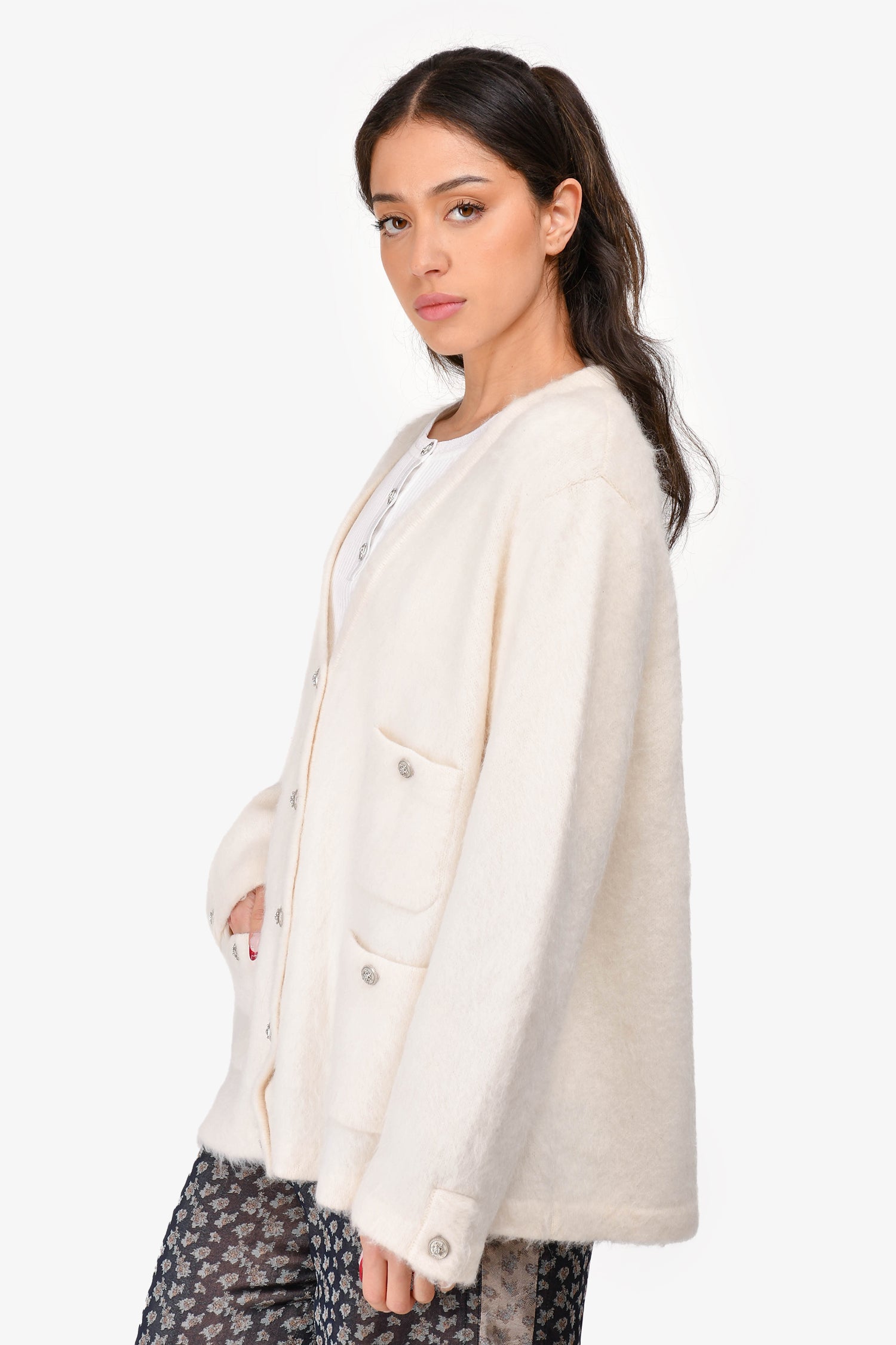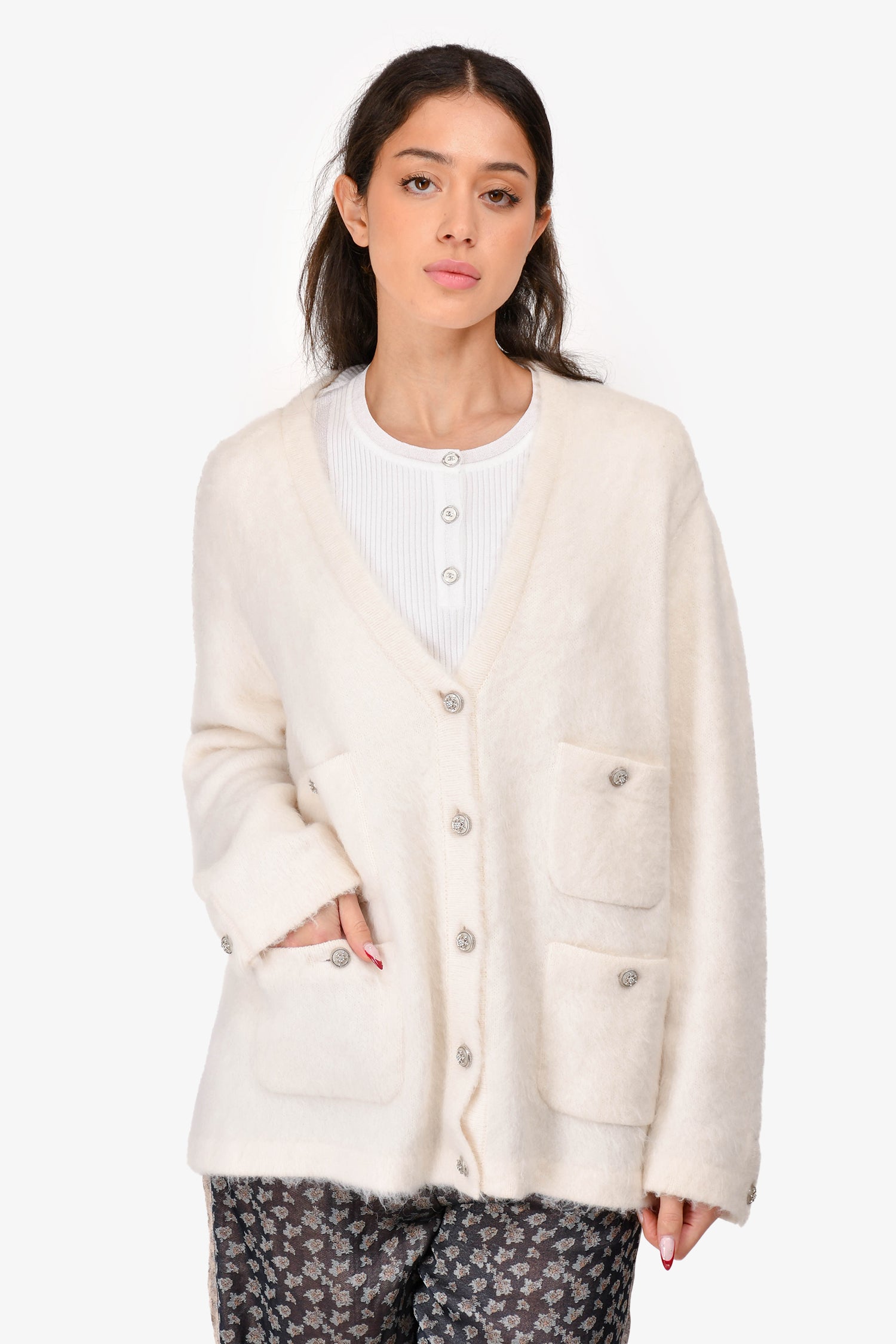 Pre-Loved Chanel™ 2019 White Cashmere/Alpaca 4 Pocket Cardigan Size 50