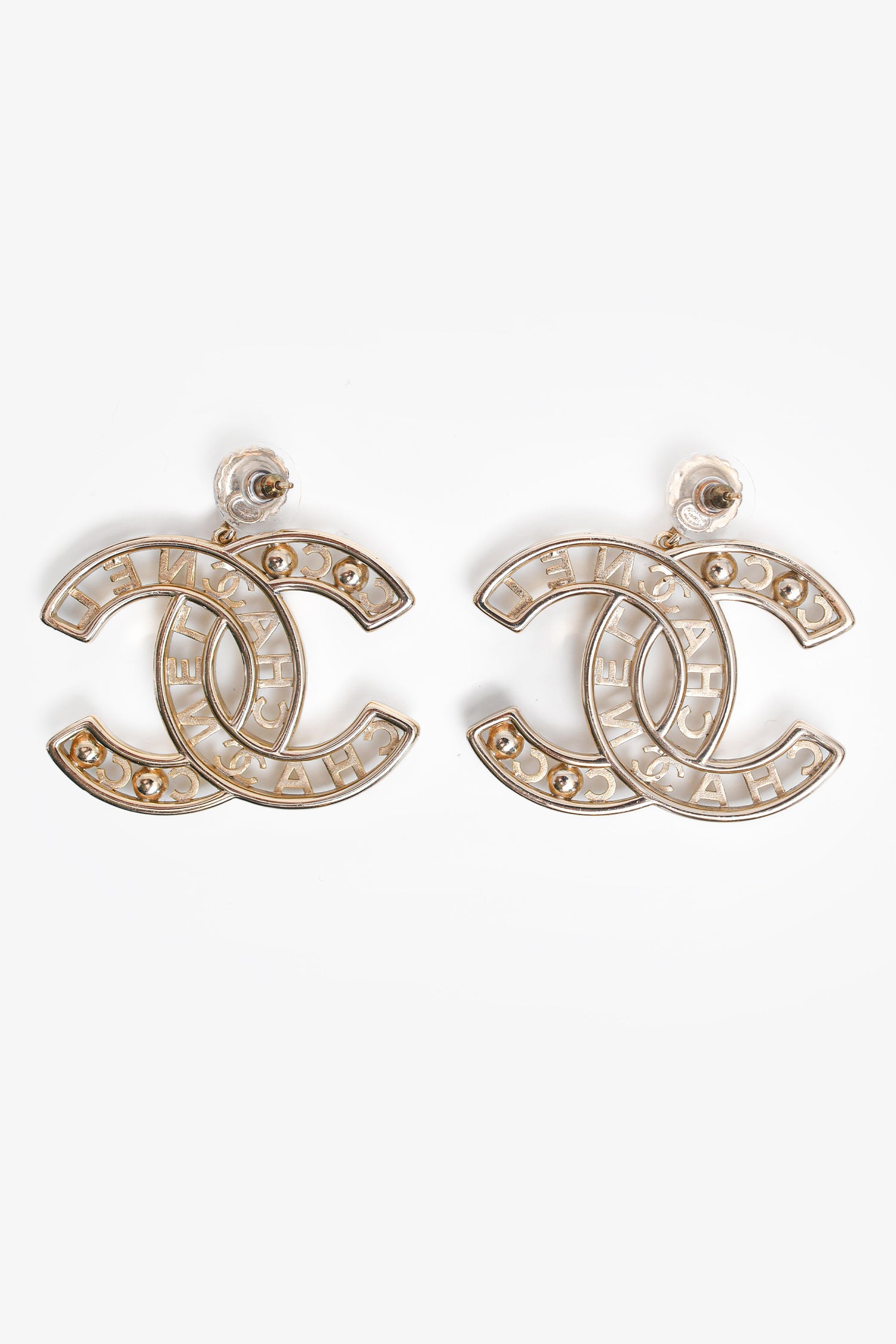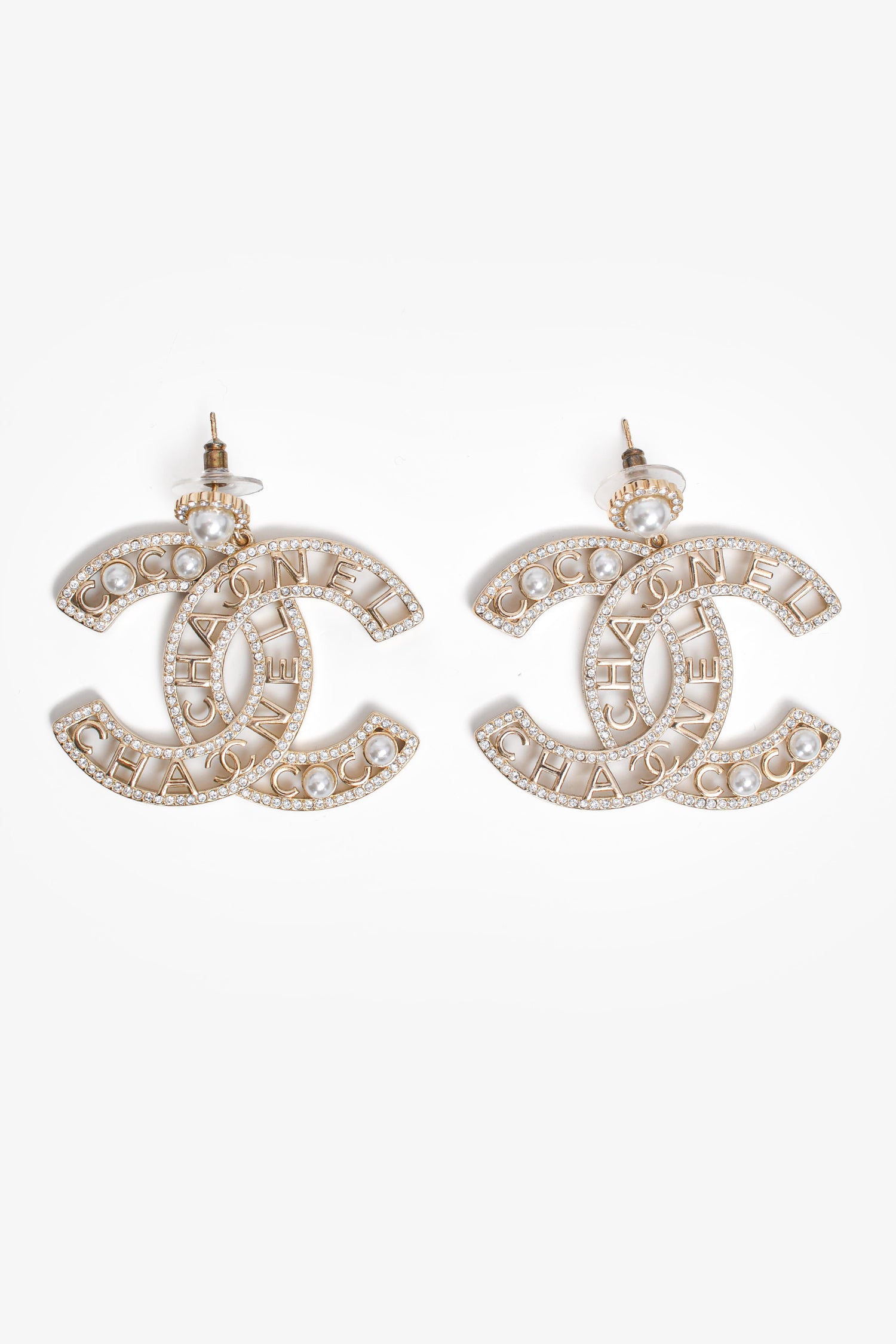 Pre-Loved Chanel™ 2020 Gold Tone Faux Pearl CC Earrings. Post stud closure.
