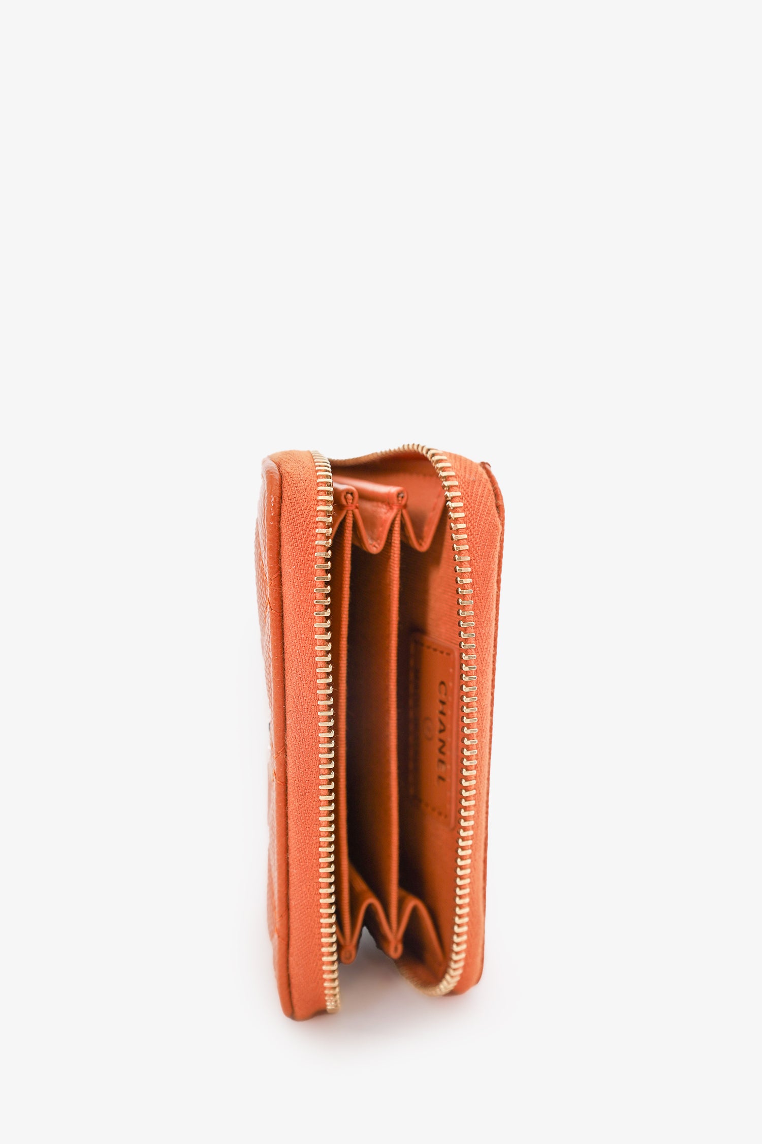 Pre-Loved Chanel™ 2021 Brown Caviar ZIP Cardholder. Top zip closure. Single exterior slip pocket on back. 3 interior sections. Tonal stitching. Light gold-tone hardware. Dust pouch and box included.
