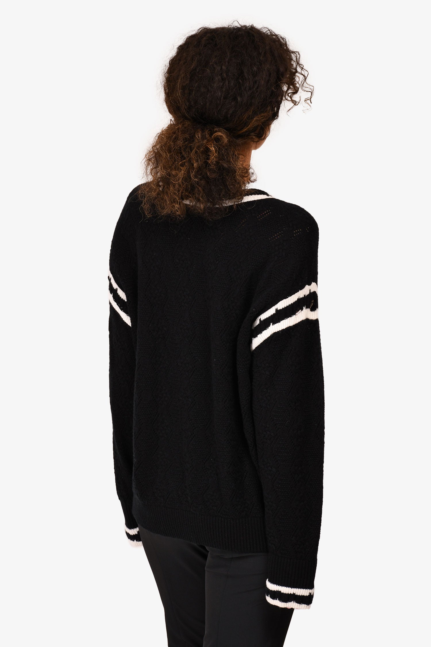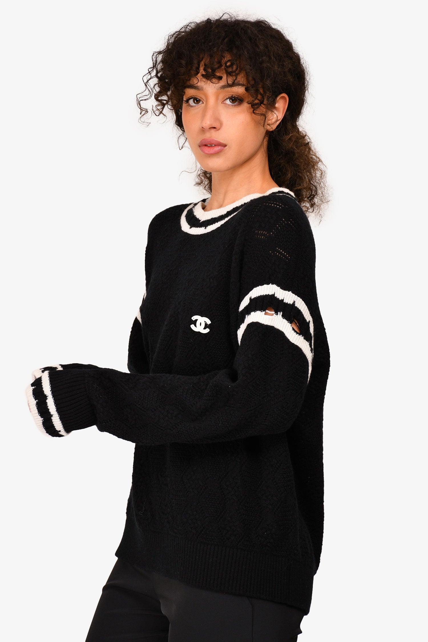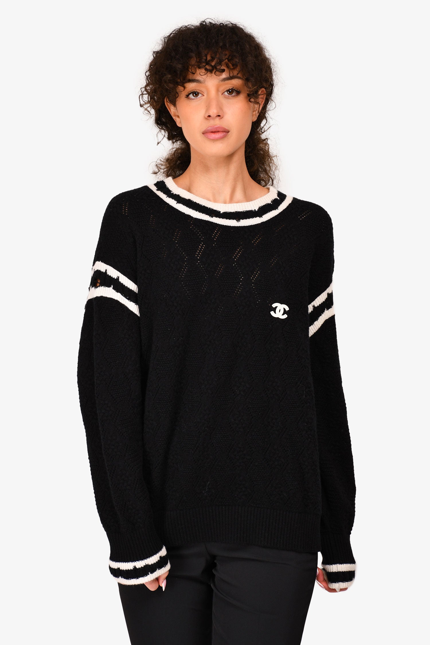 Pre-Loved Chanel™ 2022 Black/White Cashmere CC Logo Sweater Size 44
