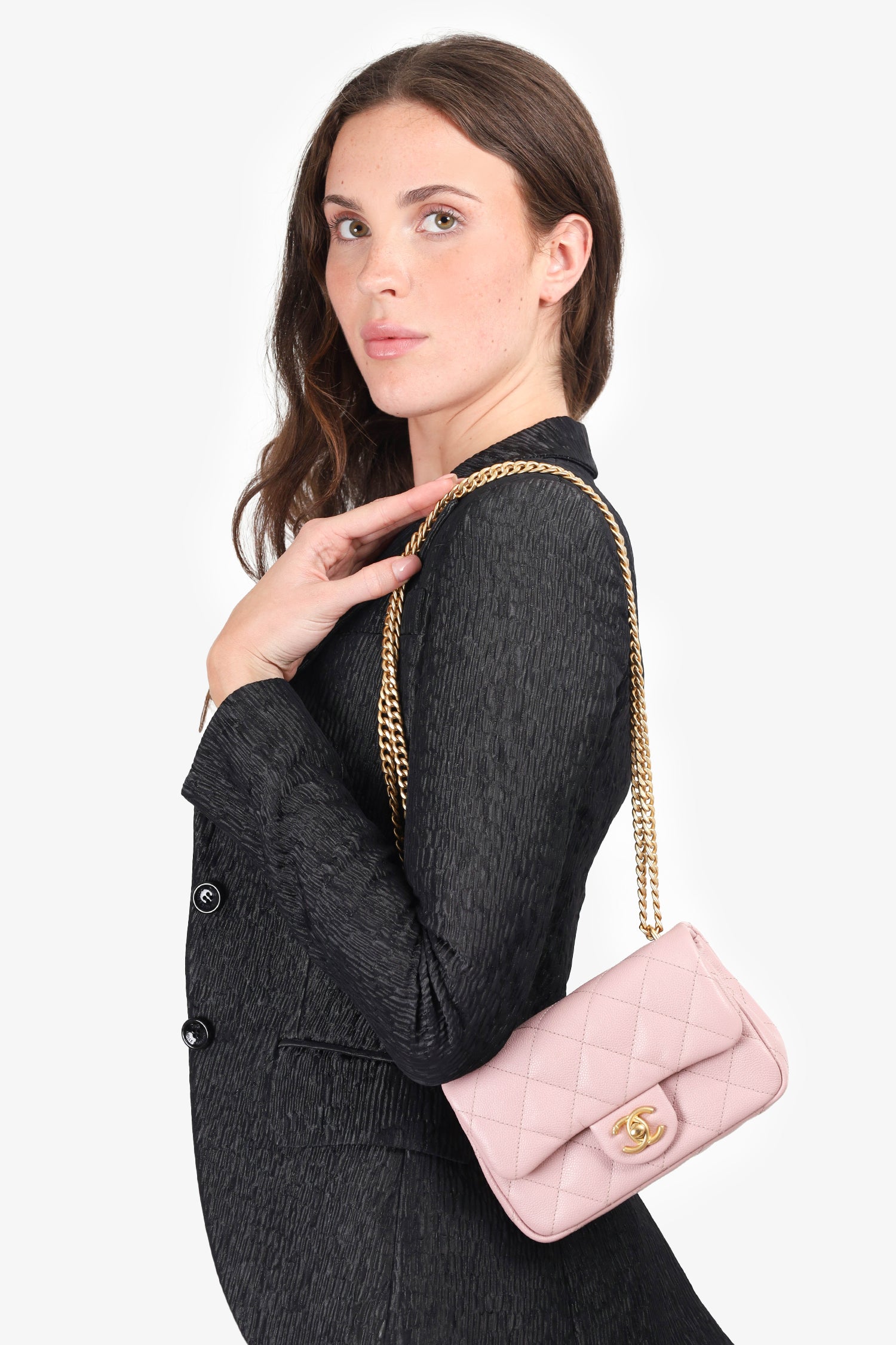 Refresh availabilityPre-Loved™ Chanel 2023 Pink Caviar Mini Sweetheart Crush Flap Bag. Turn lock closure. Interior wall slip closure. Rear exterior slip pocket. Open compartment. Gold-tone hardware. Tonal stitching.
