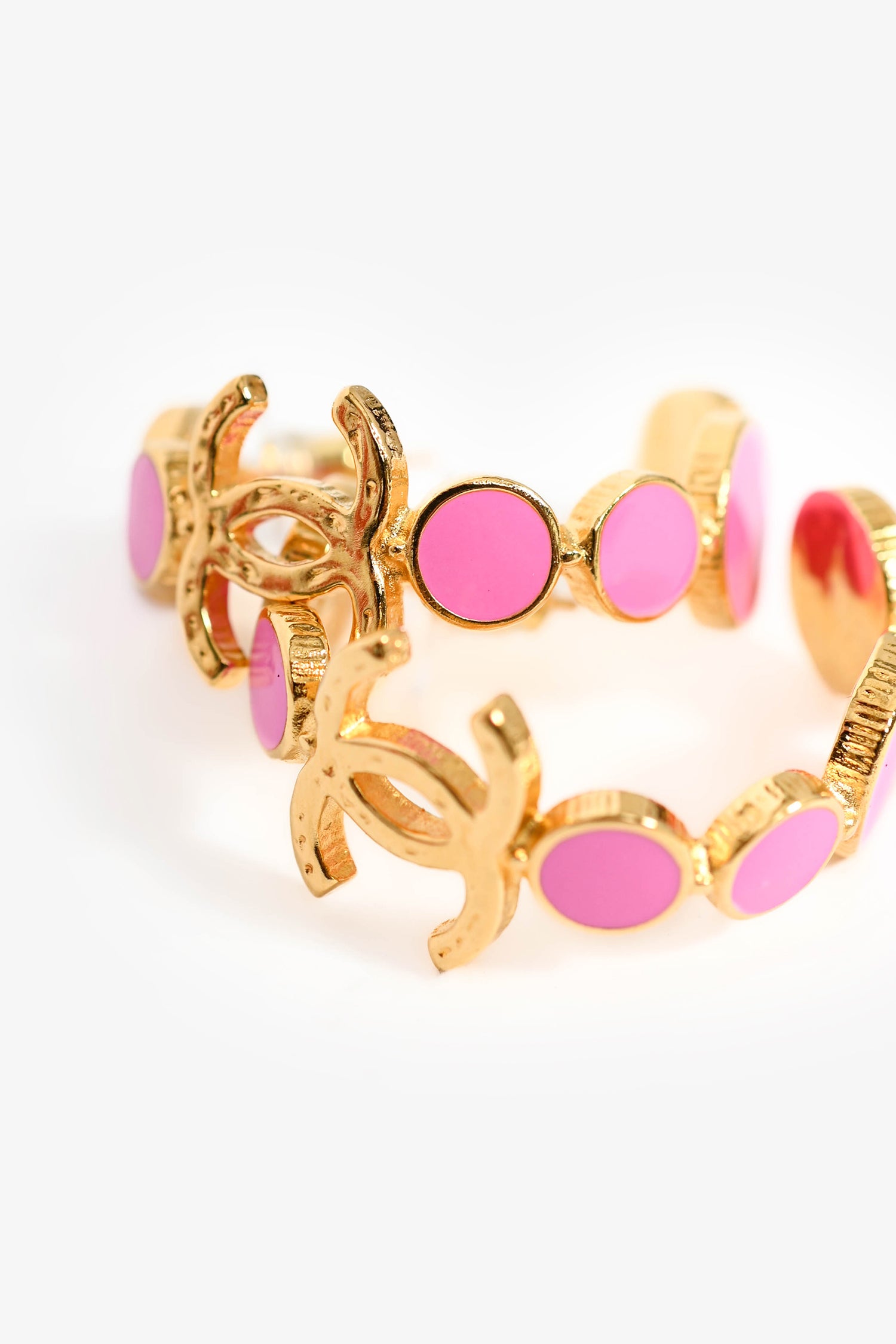 Pre-Loved Chanel™ 2024 Gold Toned Pink Enamel CC Hoops