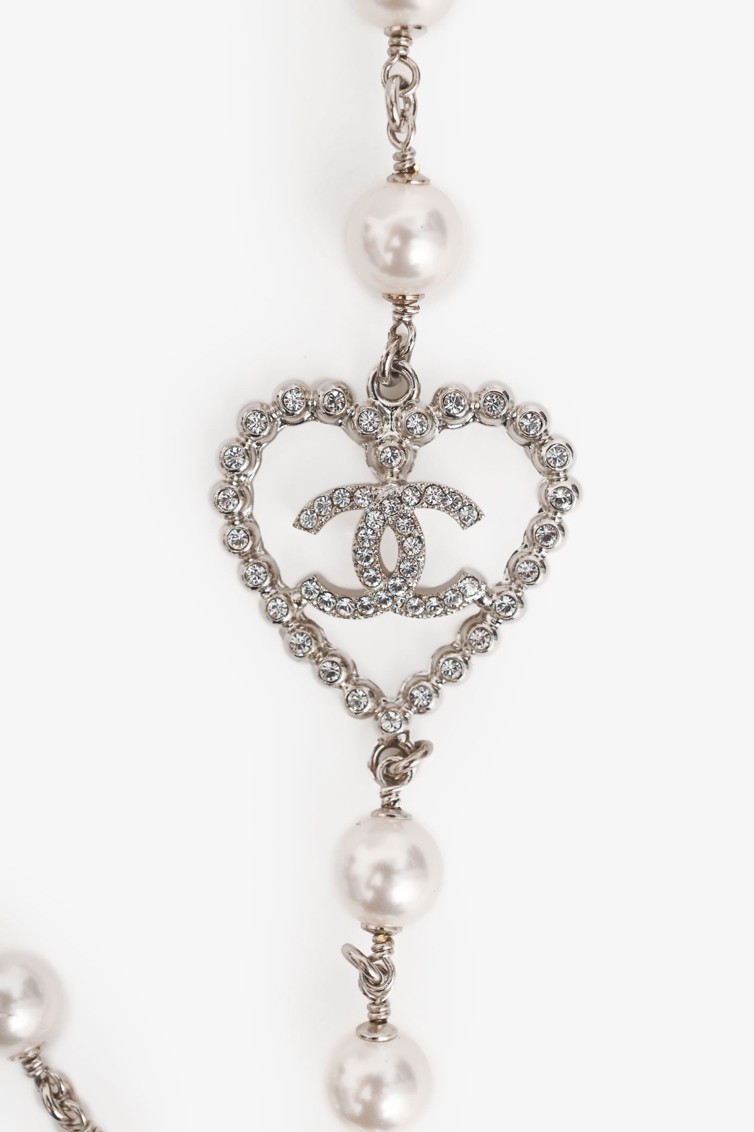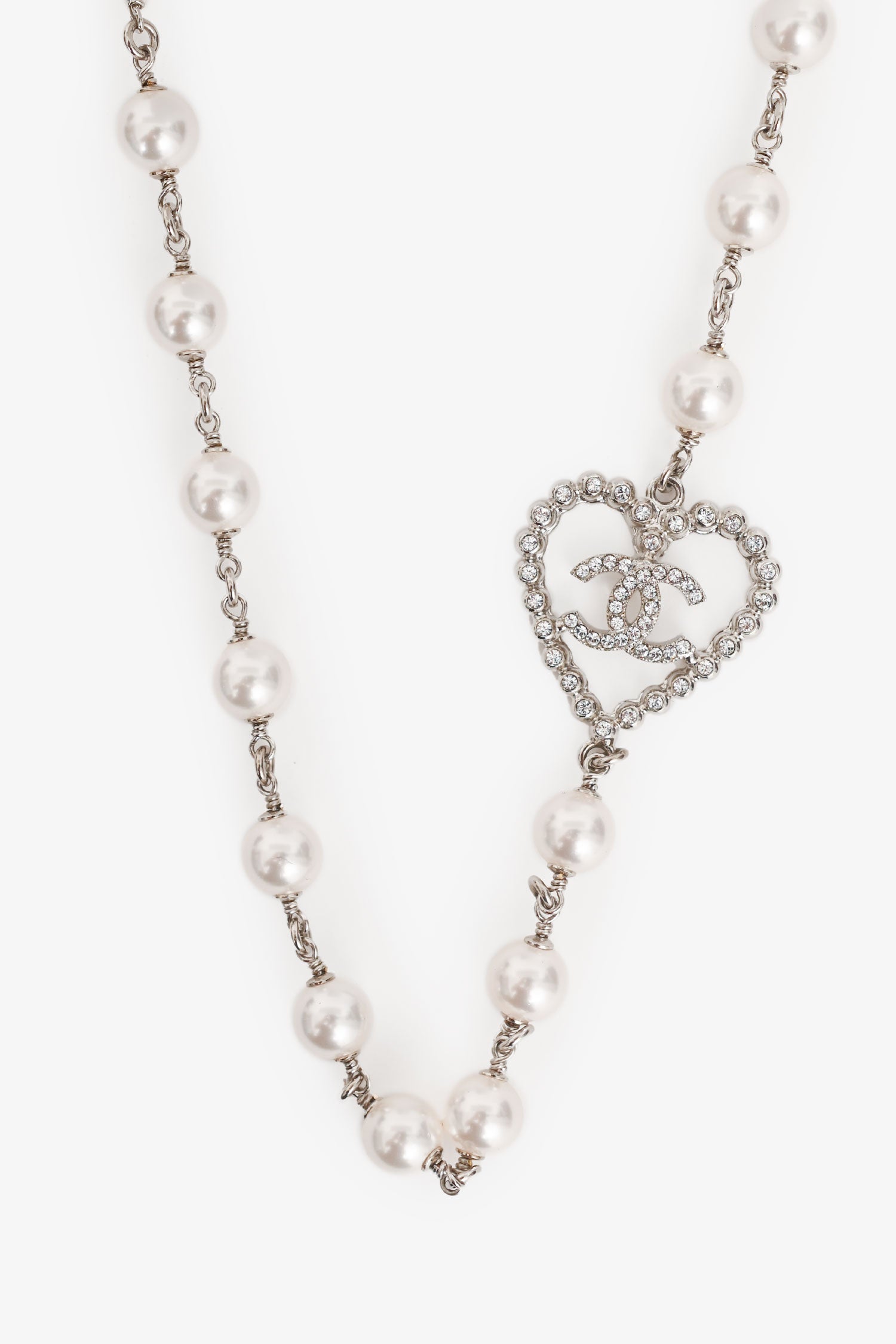 Pre-Loved Chanel™ 2025 Silver-Tone Metal/ Faux Pearl Heart Logo Necklace