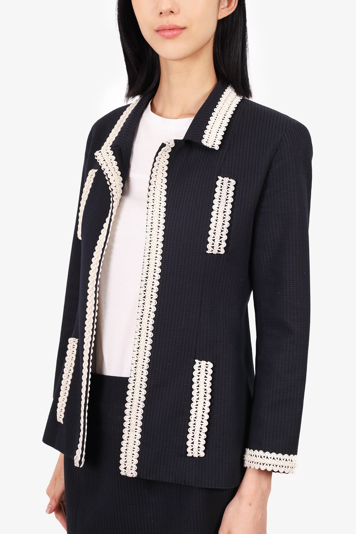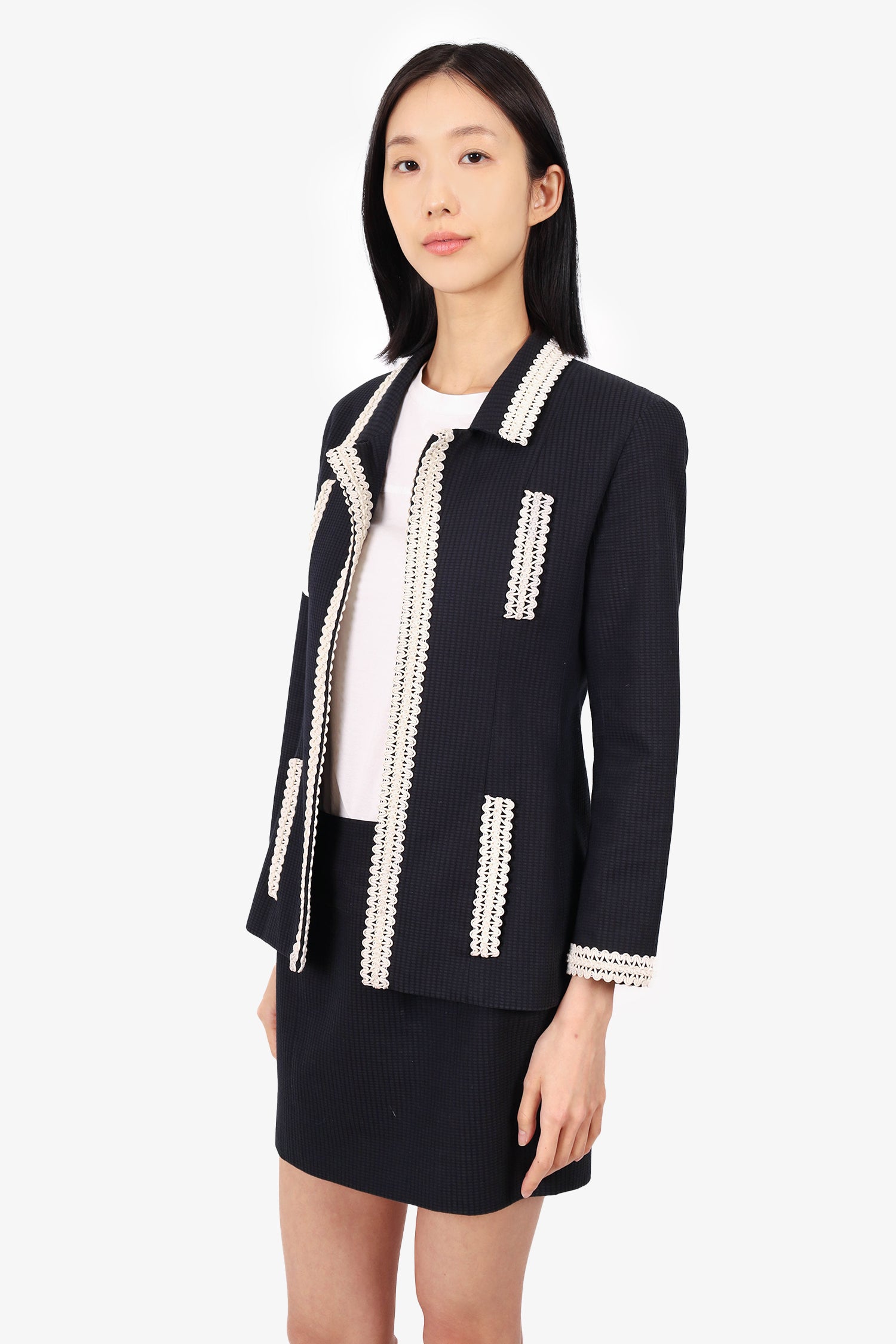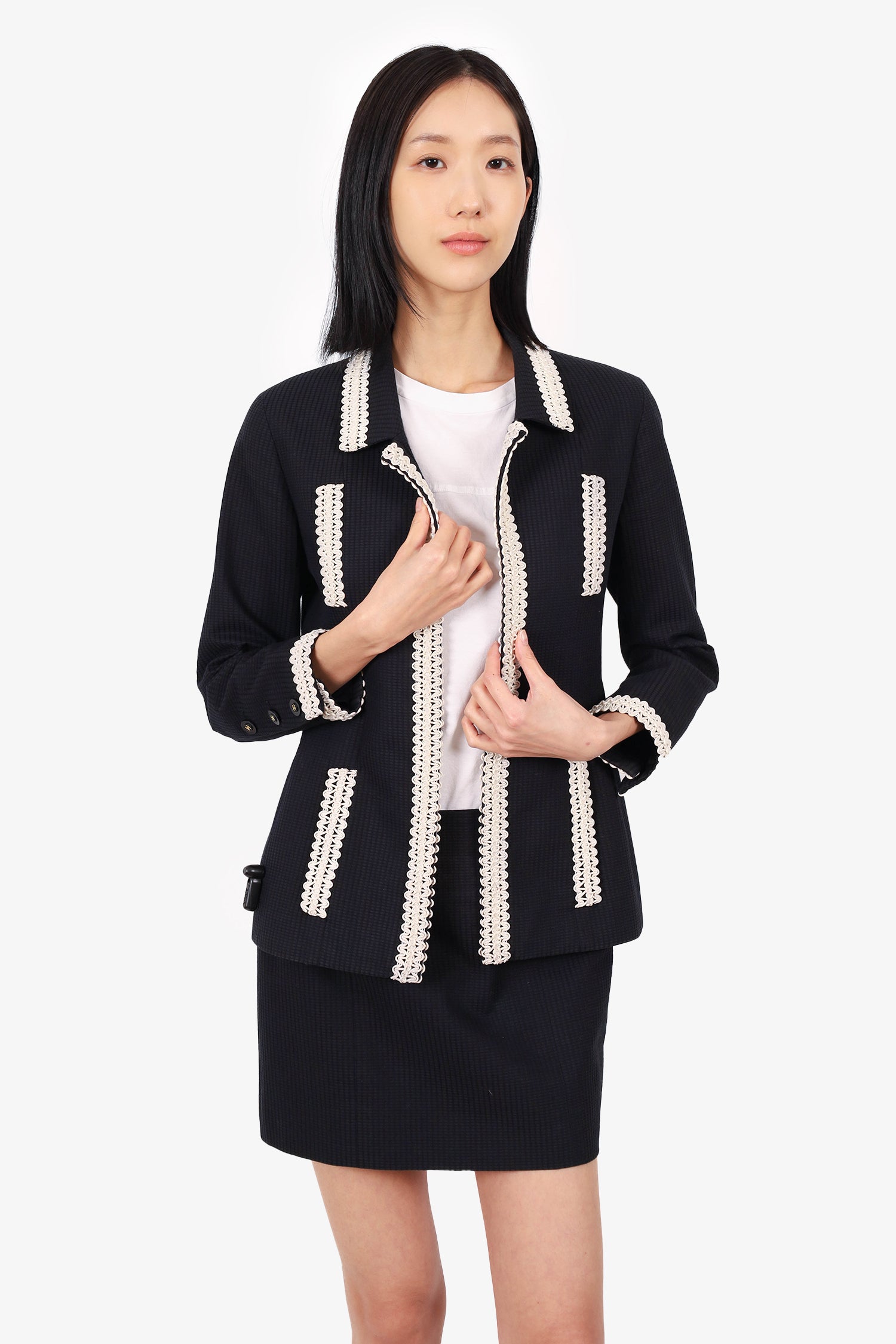 Pre-Loved Chanel™ 94P Navy Textured Jacket With Mini Skirt Set Size 38