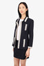 Condition: This item is in good pre-loved condition with slight discoloration to white design details. White marks around collar area and back. Pulled threads on exterior sleeves. Loose threads and marks throughout skirt exterior.