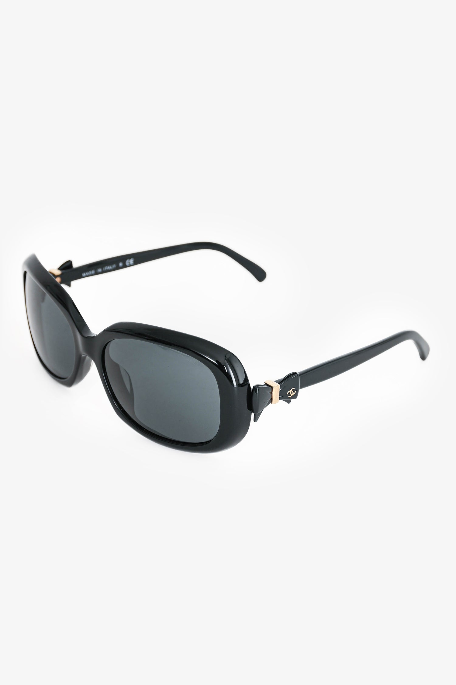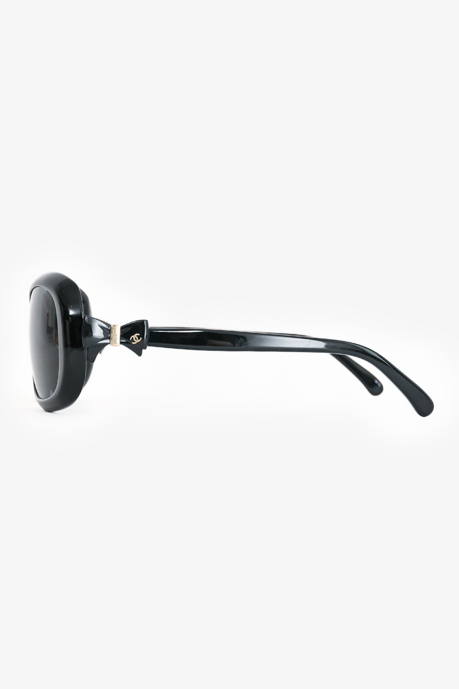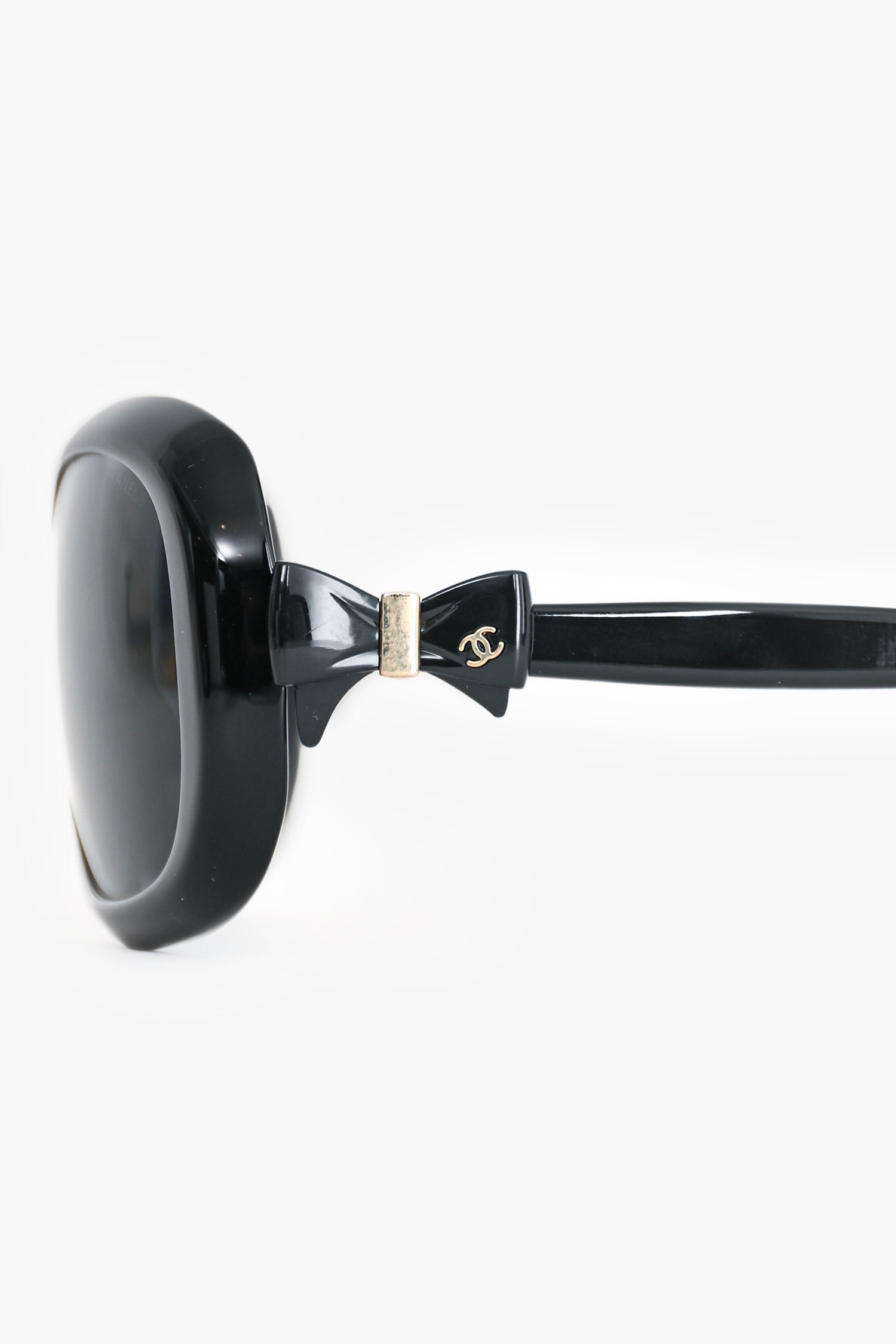 Pre-Loved Chanel™ Black Acrylic Rectangular Bow Detail Sunglasses