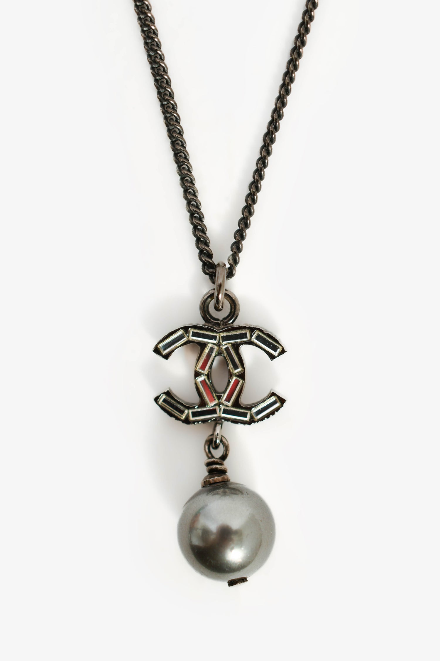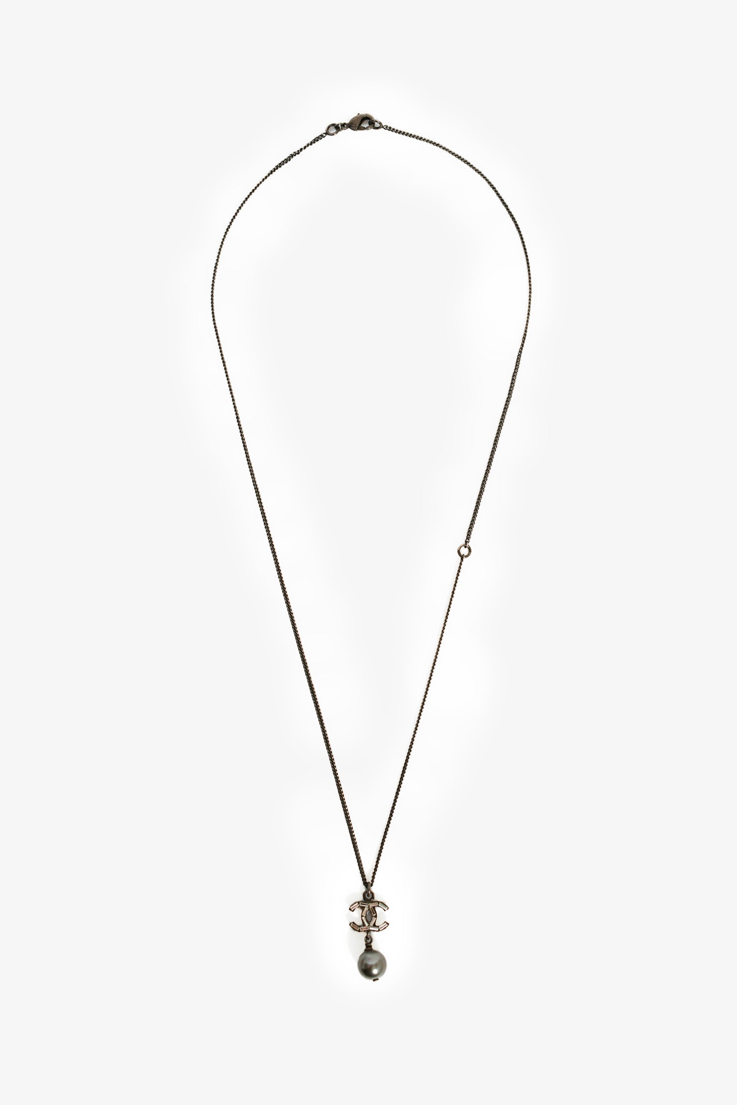 Refresh availabilityPre-Loved Chanel™ Black Crystal CC Faux Pearl Necklace. Lobster clasp closure.