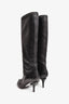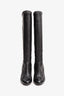 Pre-Loved Chanel™ Black Leather CC Cap Toe Knee High Boots With Silver Chain Detail Size 37