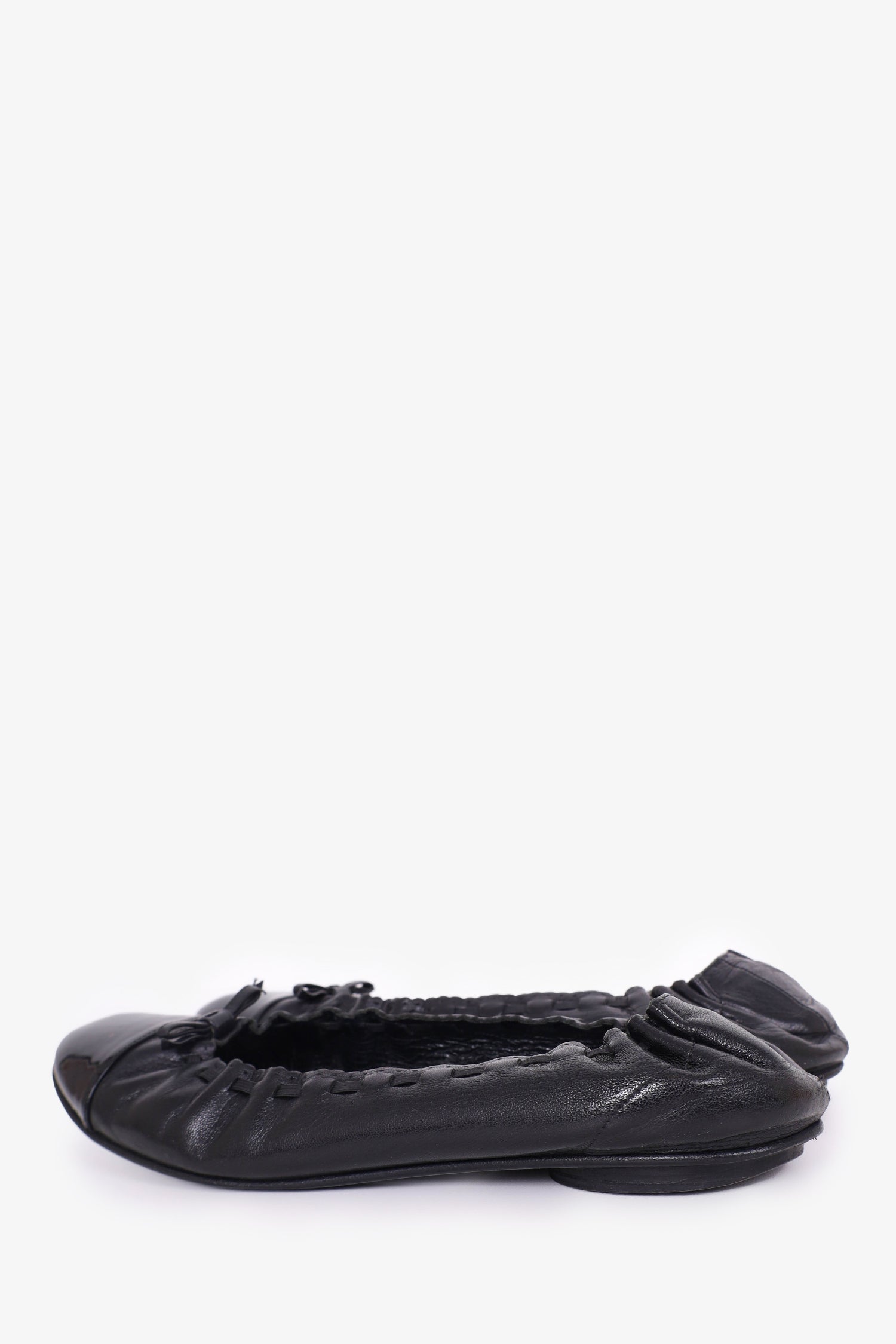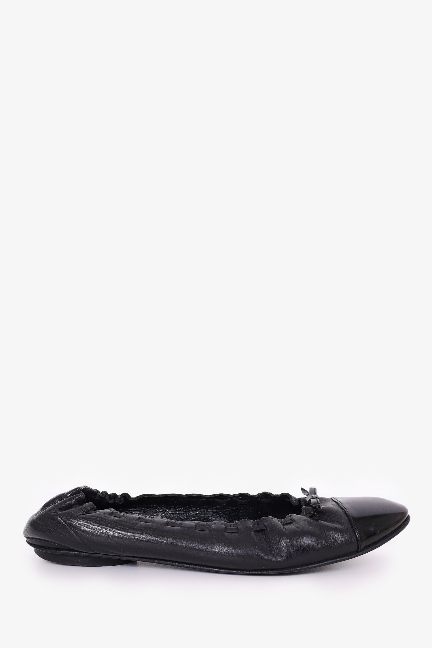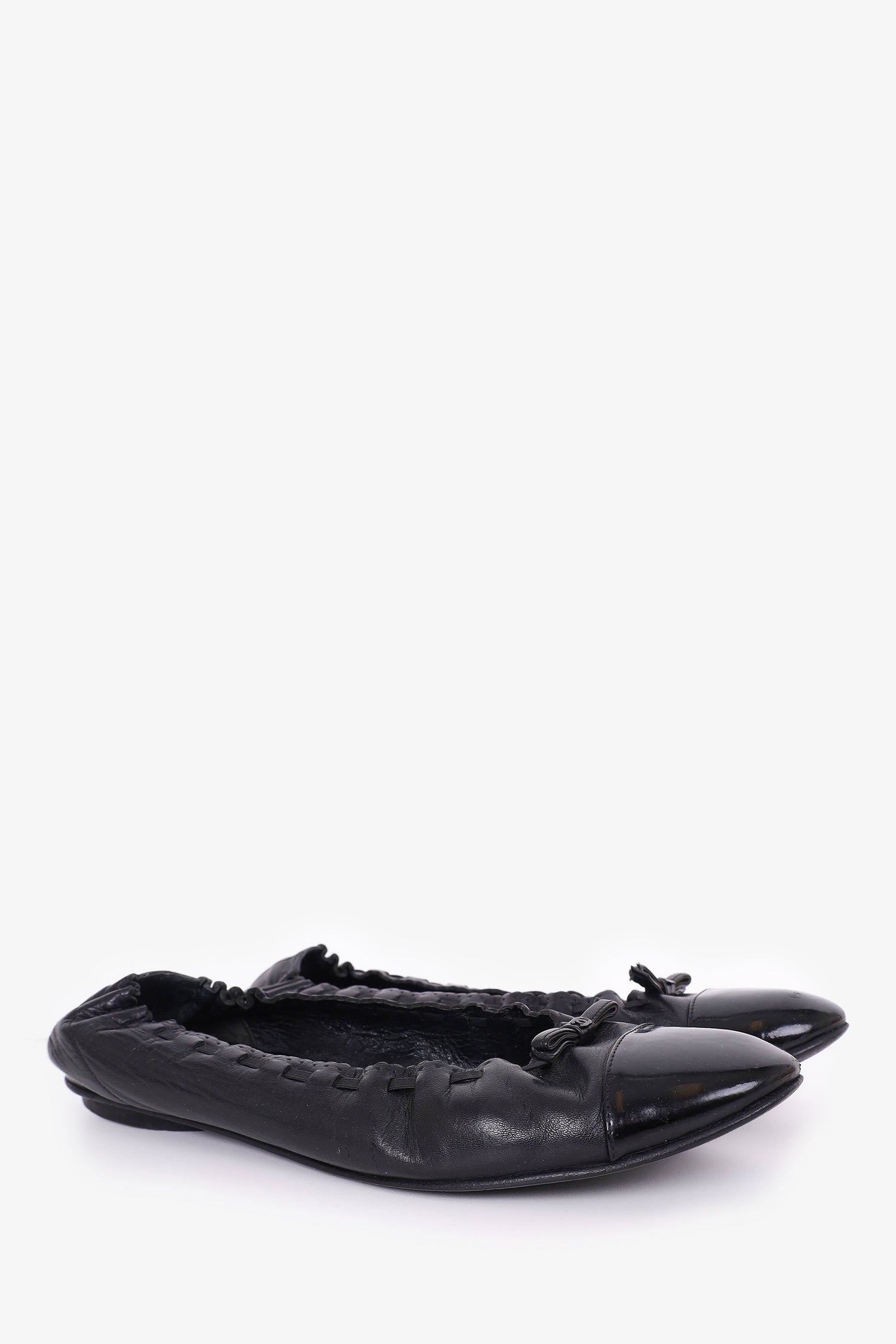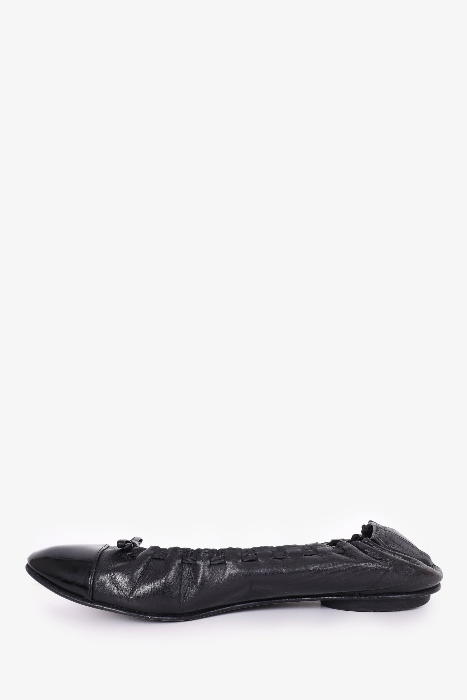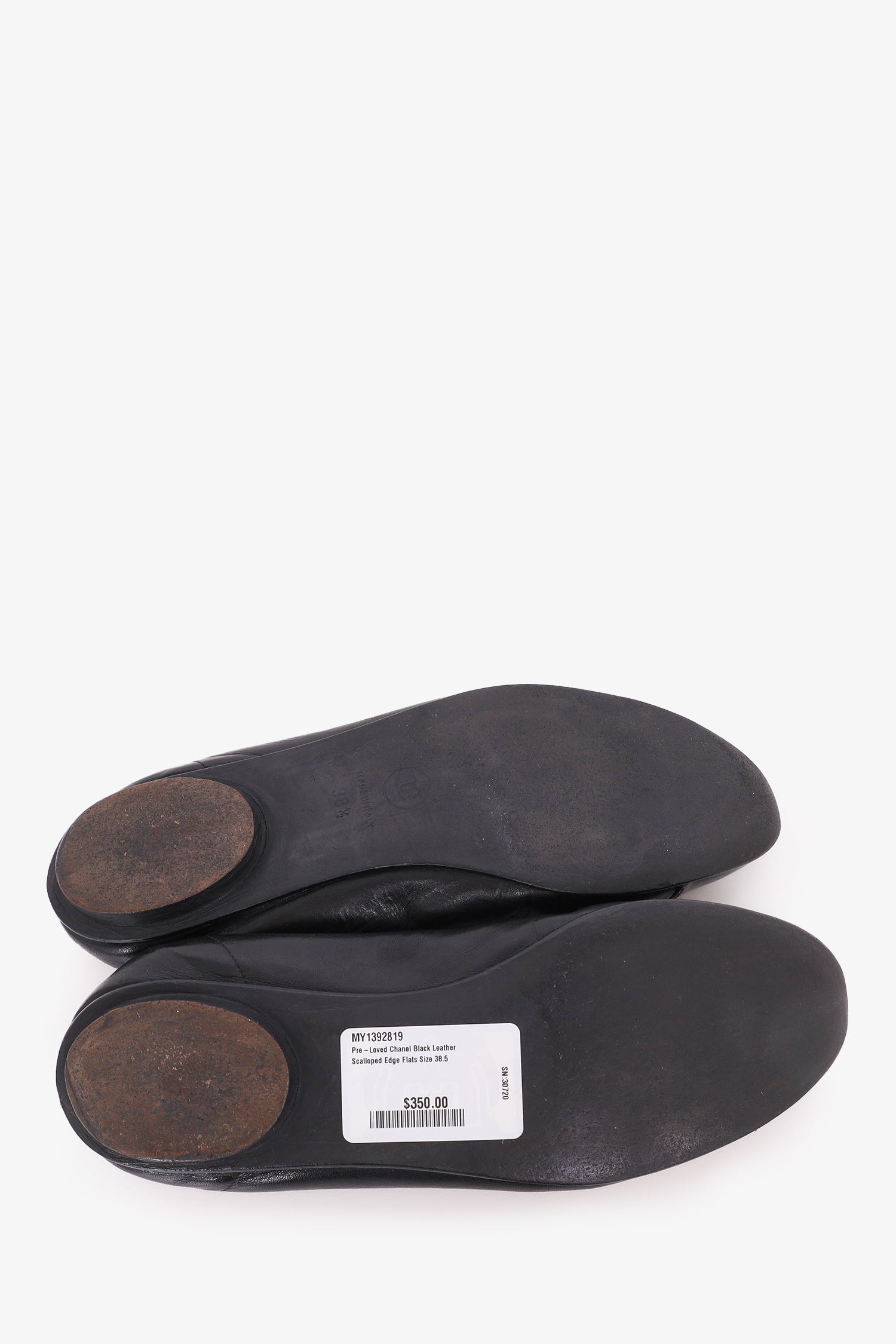 Refresh availabilityPre-Loved Chanel™ Black Leather Scalloped Edge Flats. Round toe. Slip-on. Tonal stitching.