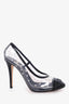 Pre-Loved Chanel™ Black Patent/PVC Pearl Embellished Cap Toe Pumps Size 39.5
