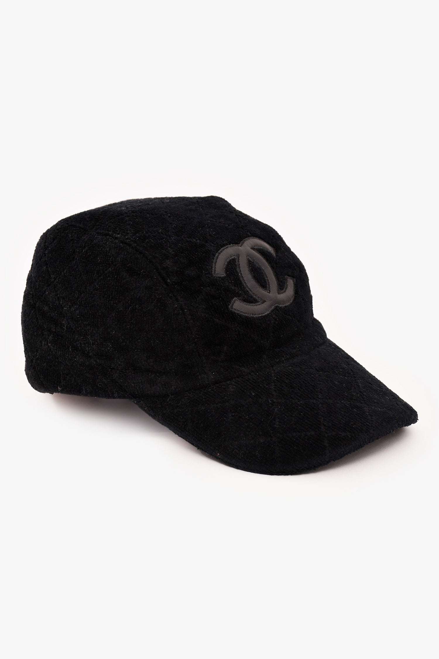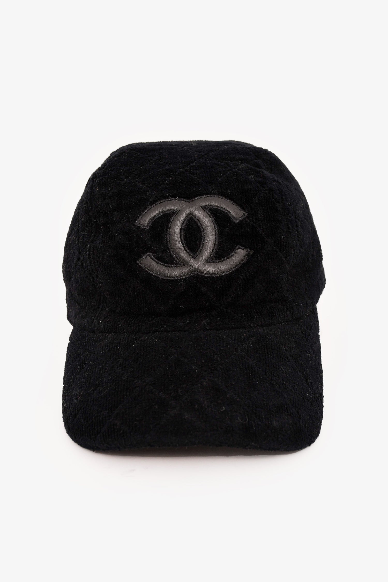 Refresh availabilityPre-Loved Chanel™ Black Terrycloth/Leather CC Logo Baseball Cap. Leather 'CC' front logo at the face. Terrycloth outer. Back velcro strap.