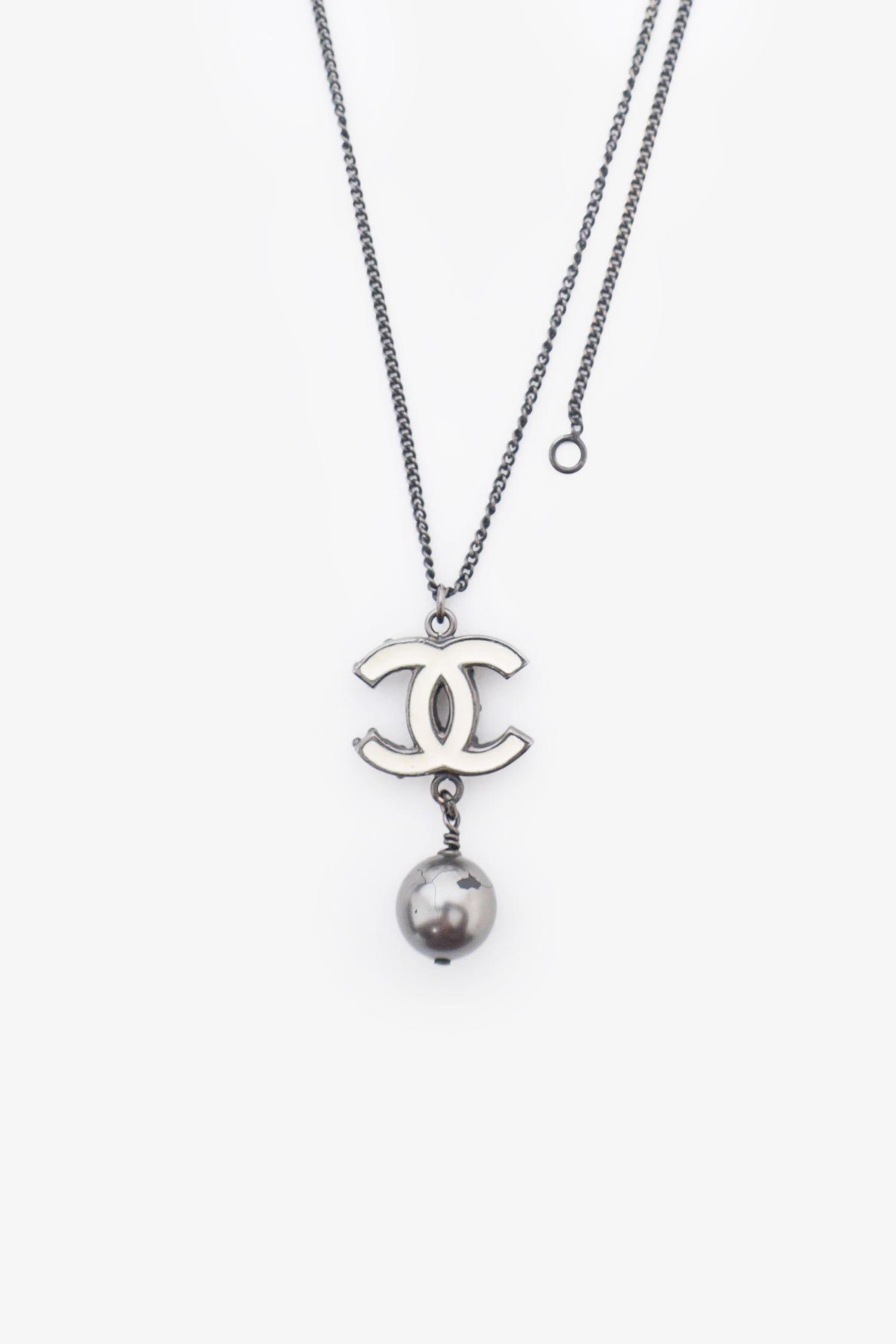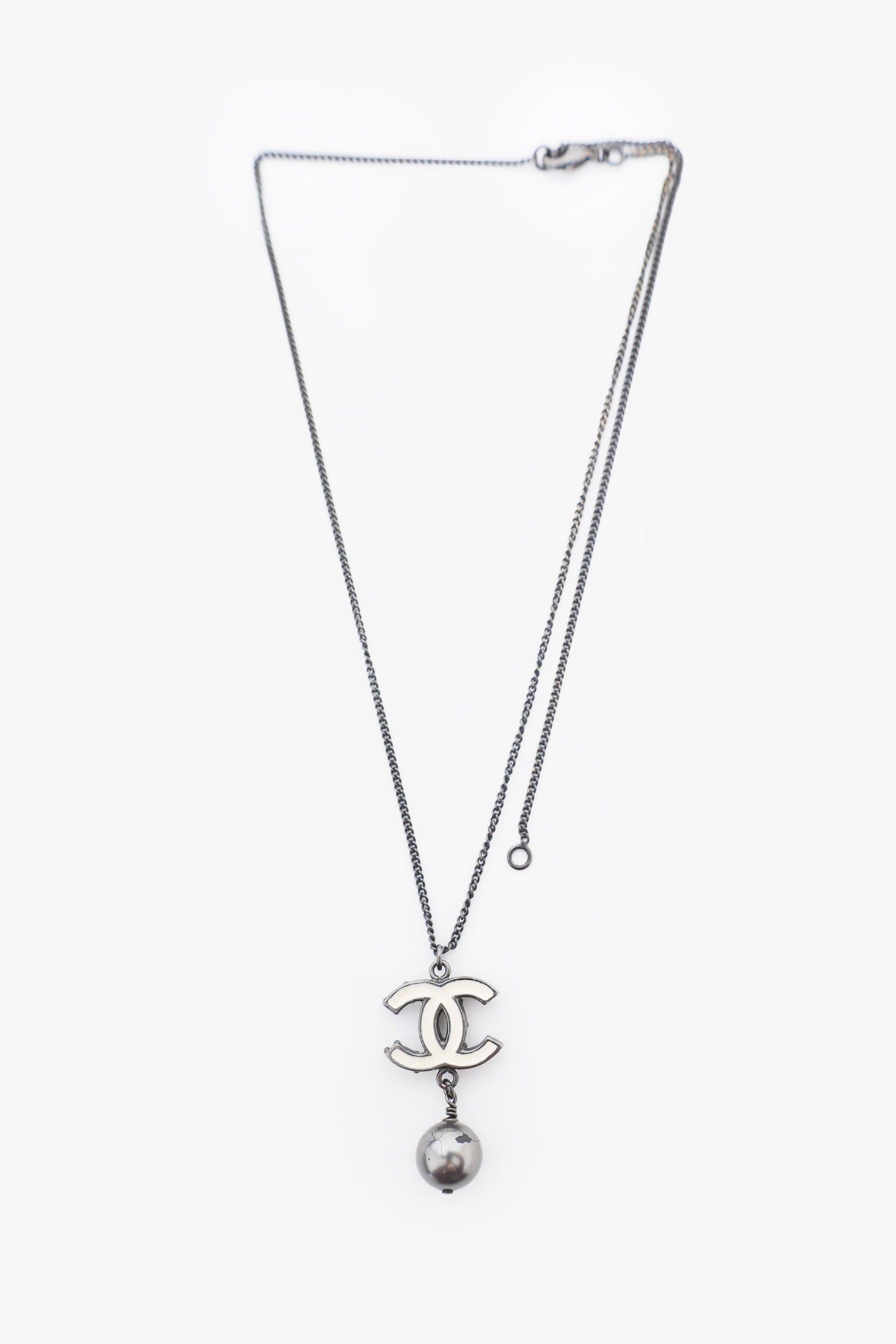 Refresh availabilityPre-Loved Chanel™ Black Tone CC Pearl Necklace. Lobster clasp closure. Gunmetal-tone hardware.