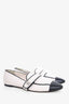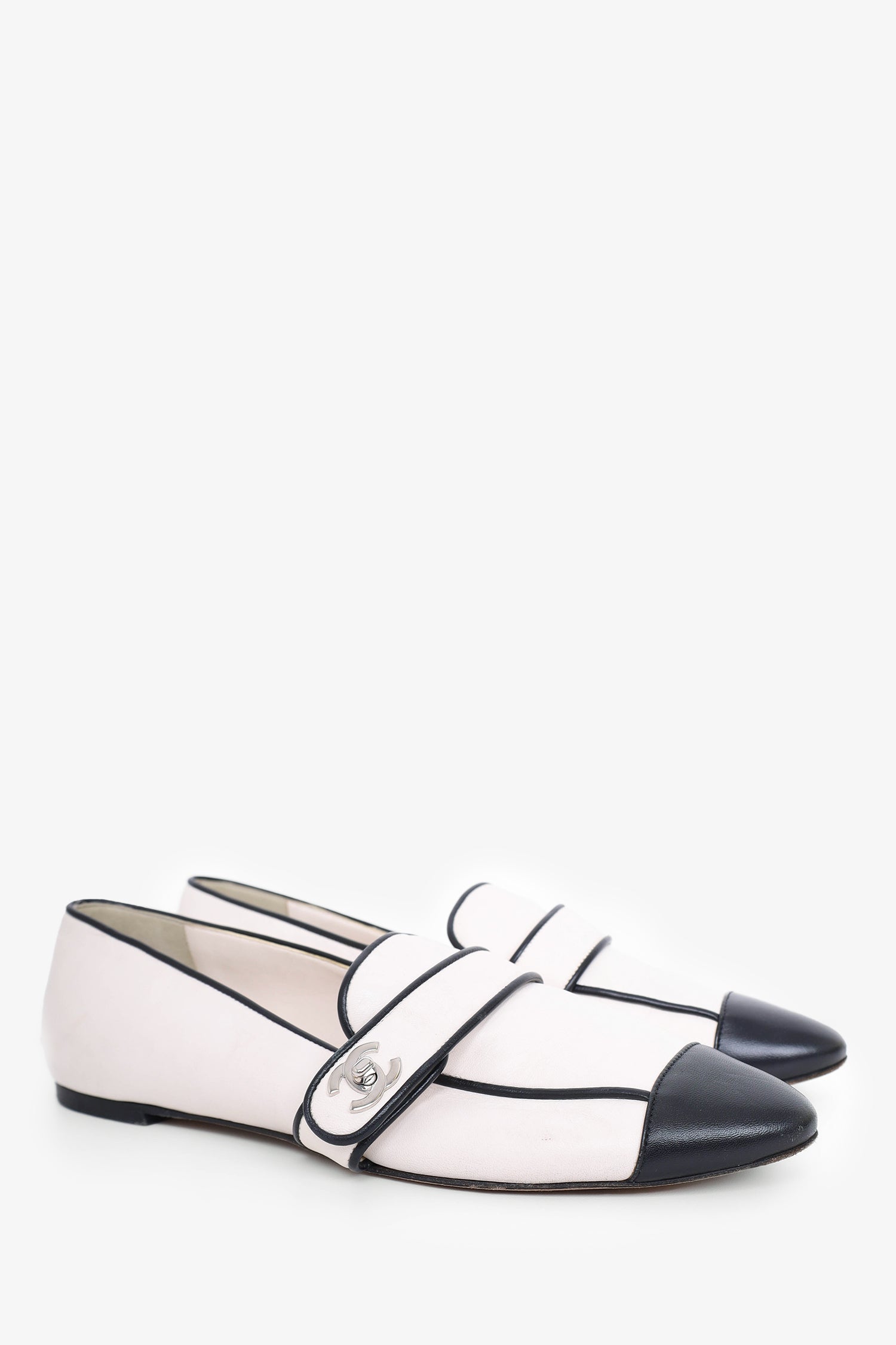 Pre-Loved Chanel™ Black/White Leather CC Lock Flats Size 38.5