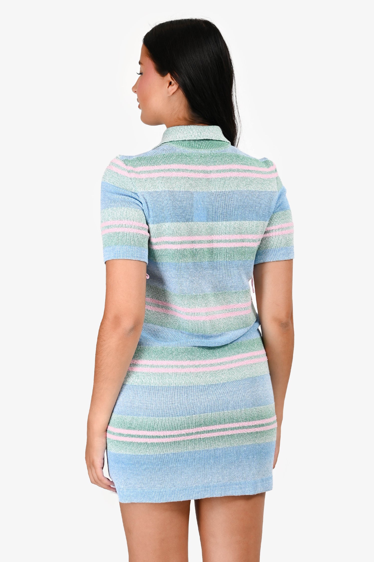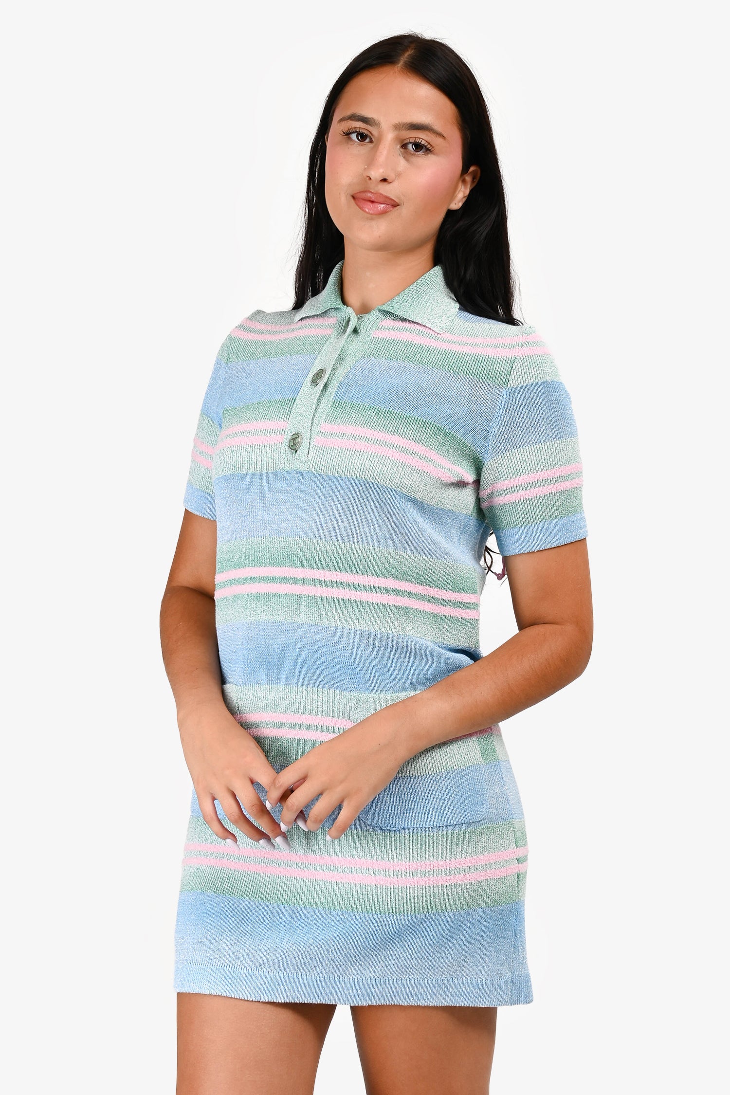Pre-Loved Chanel™ Blue/Pink Striped Knit CC Button Polo Dress Size 34