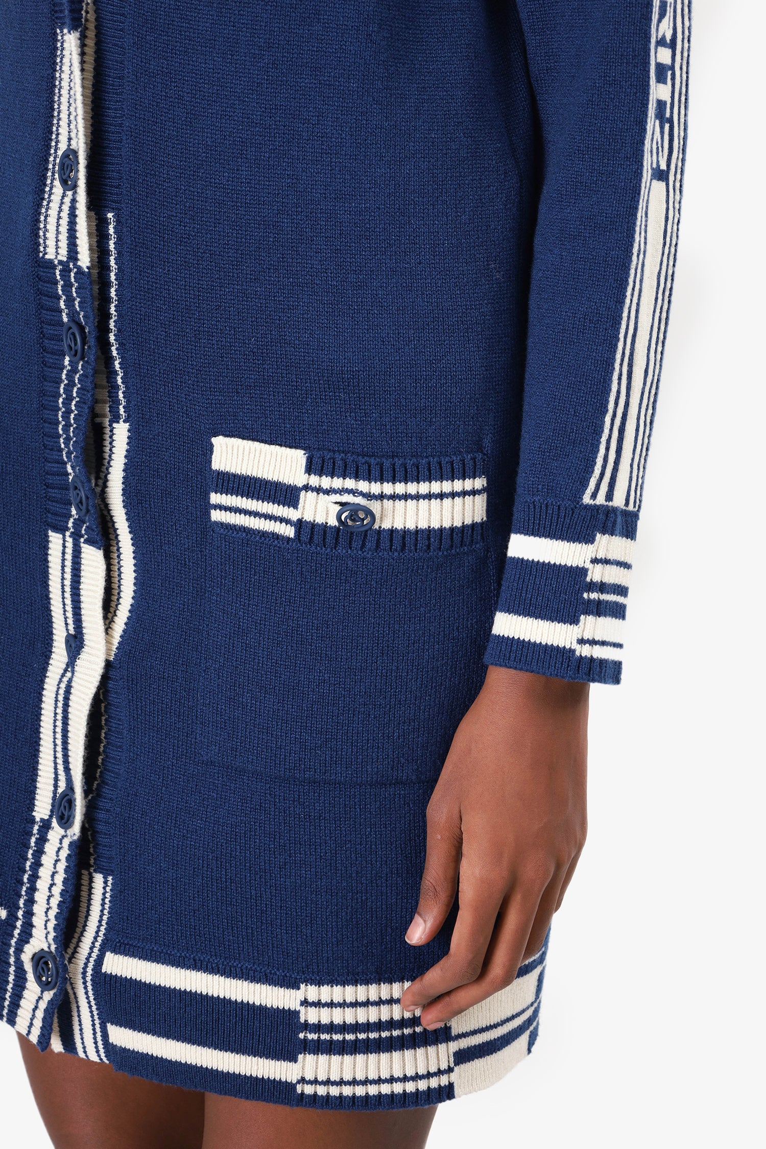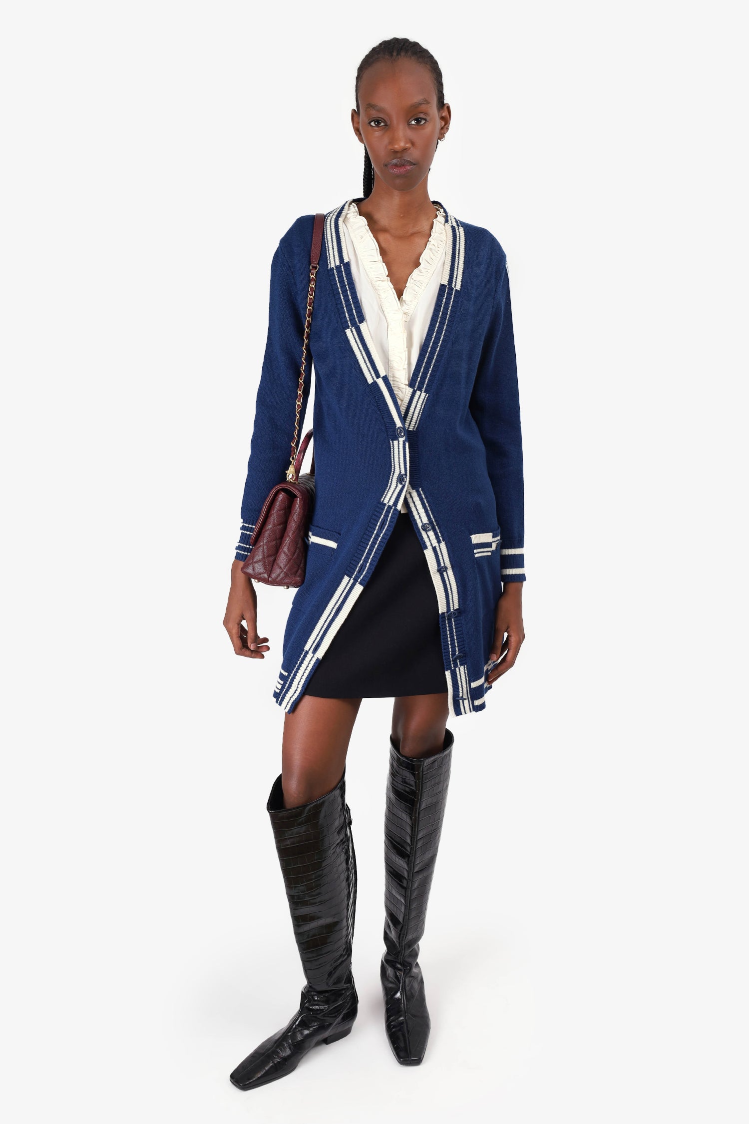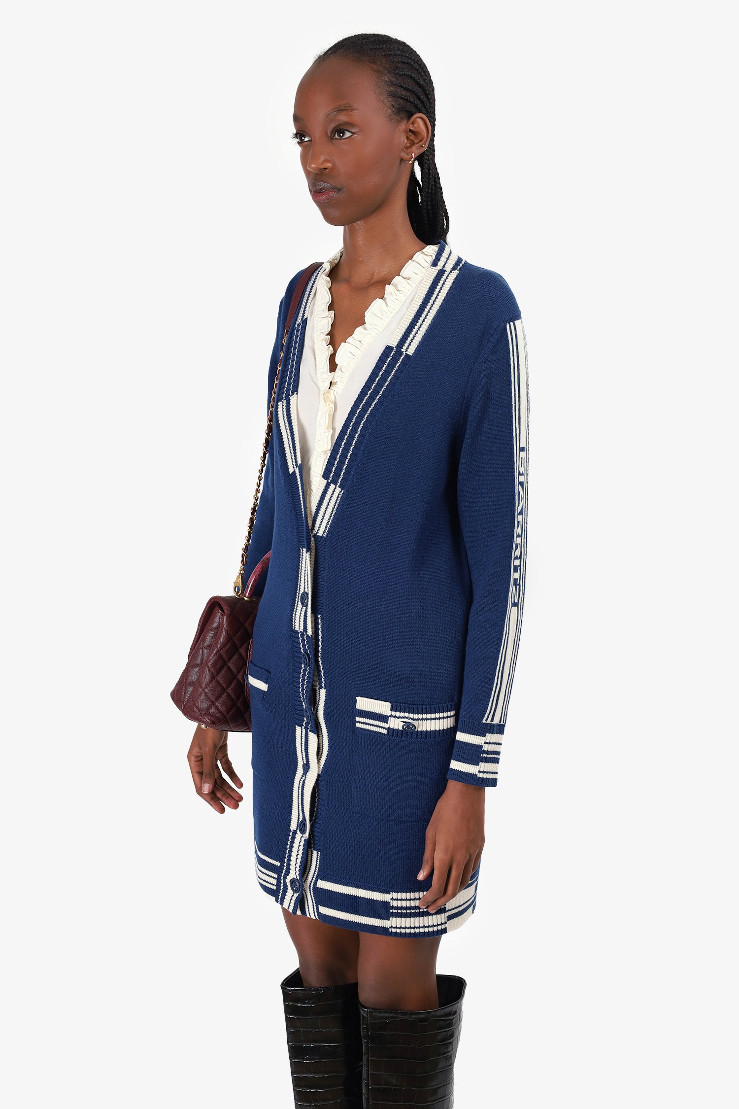 Pre-Loved Chanel™ Blue/White Cashmere Knitted Cardigan Size 34