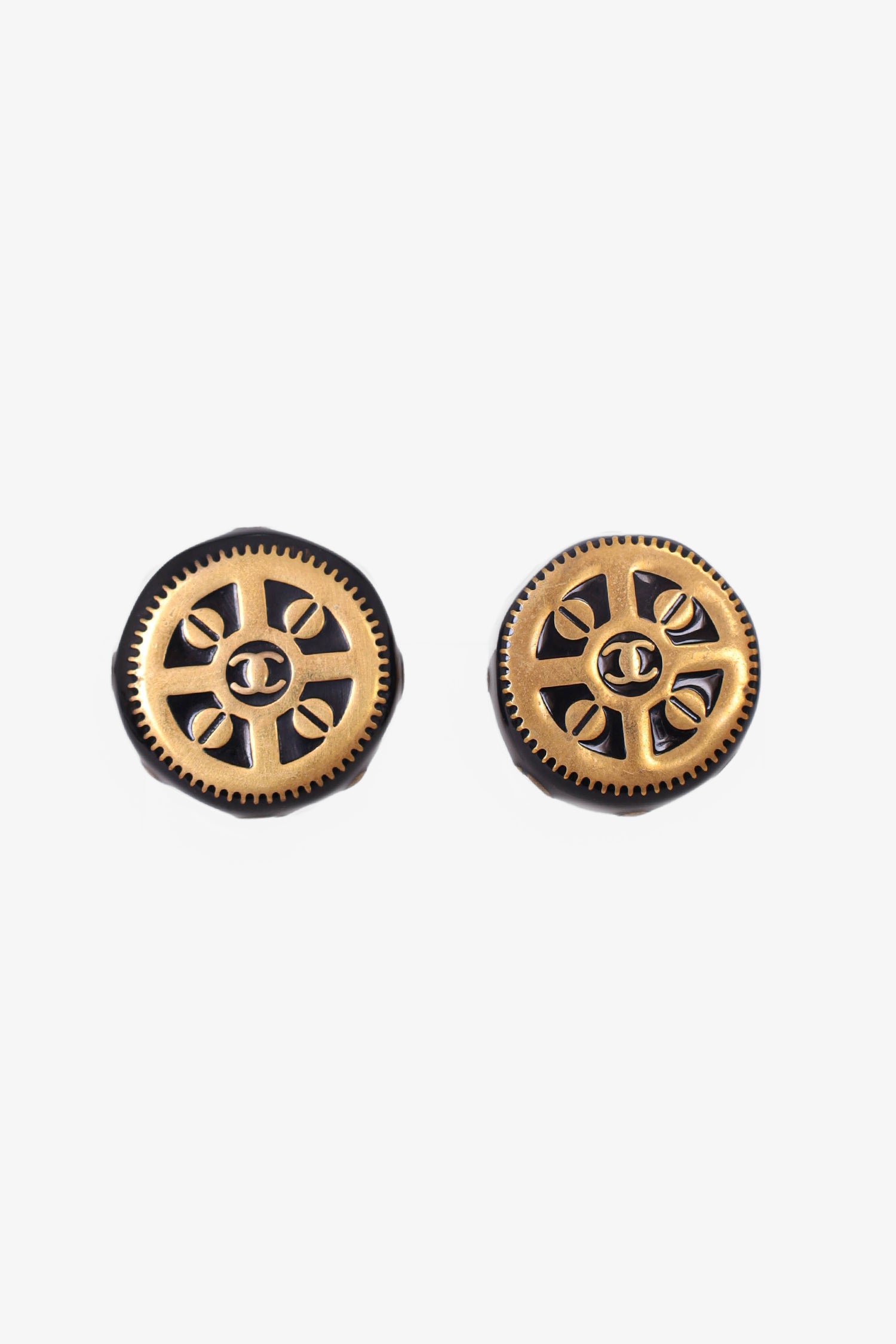 Pre-Loved Chanel™ Gold Tone Black Enamel Round Earrings