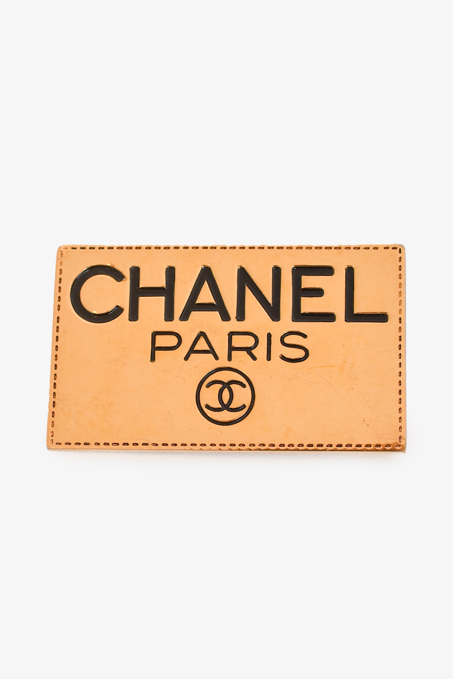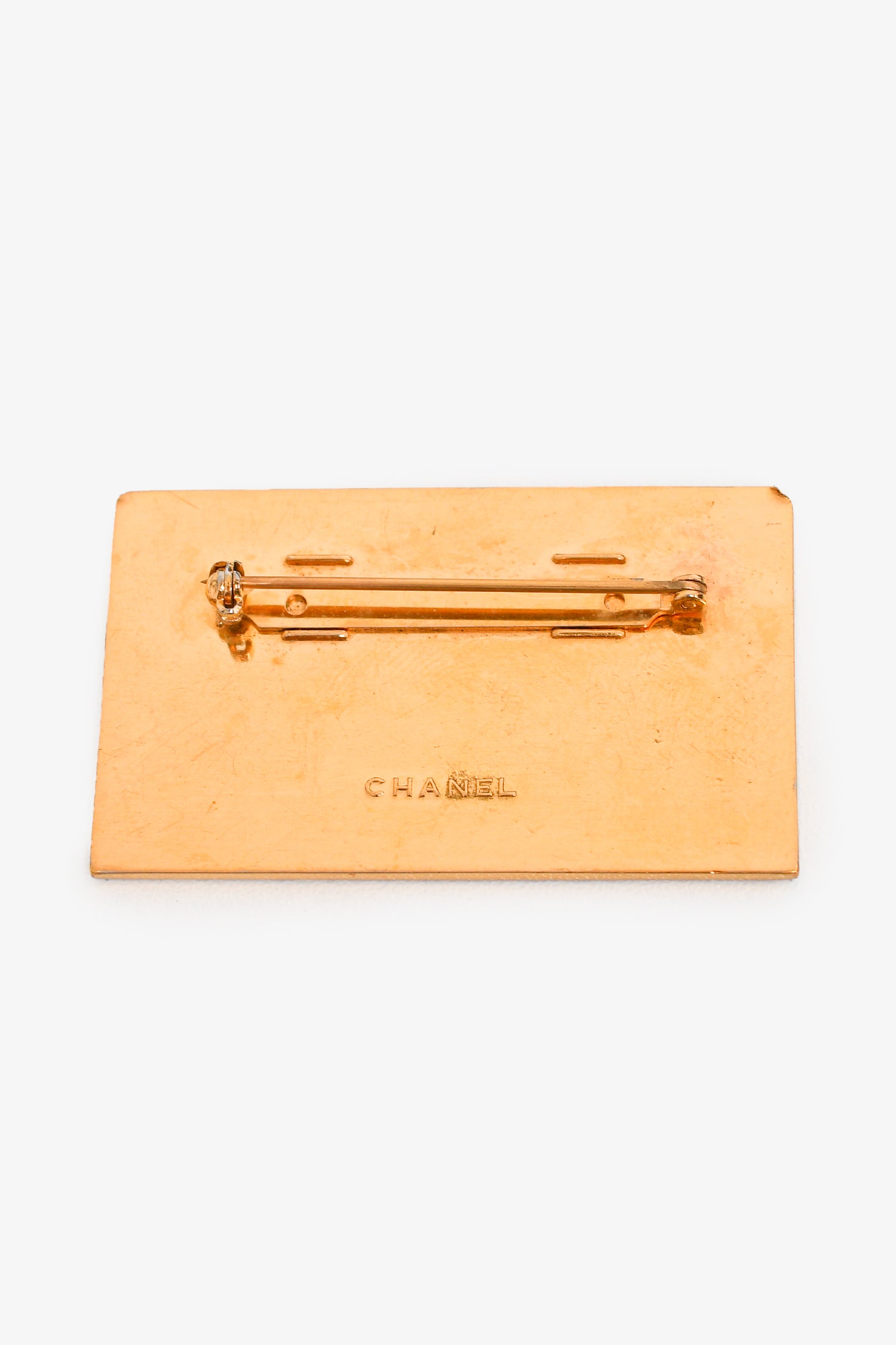 Refresh availabilityPre-Loved Chanel™ Gold-Tone CC Logo Rectangle Pin Brooch. Vintage. Pin closure.