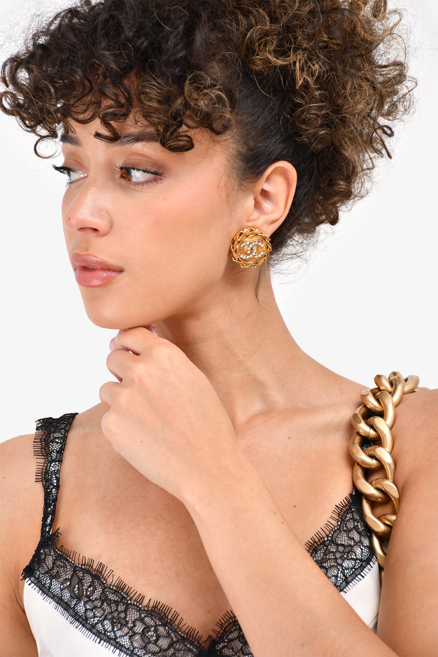 Refresh availabilityPre-Loved Chanel™ Gold Tone CC Round Crystal Embellished Clip-On Earrings.