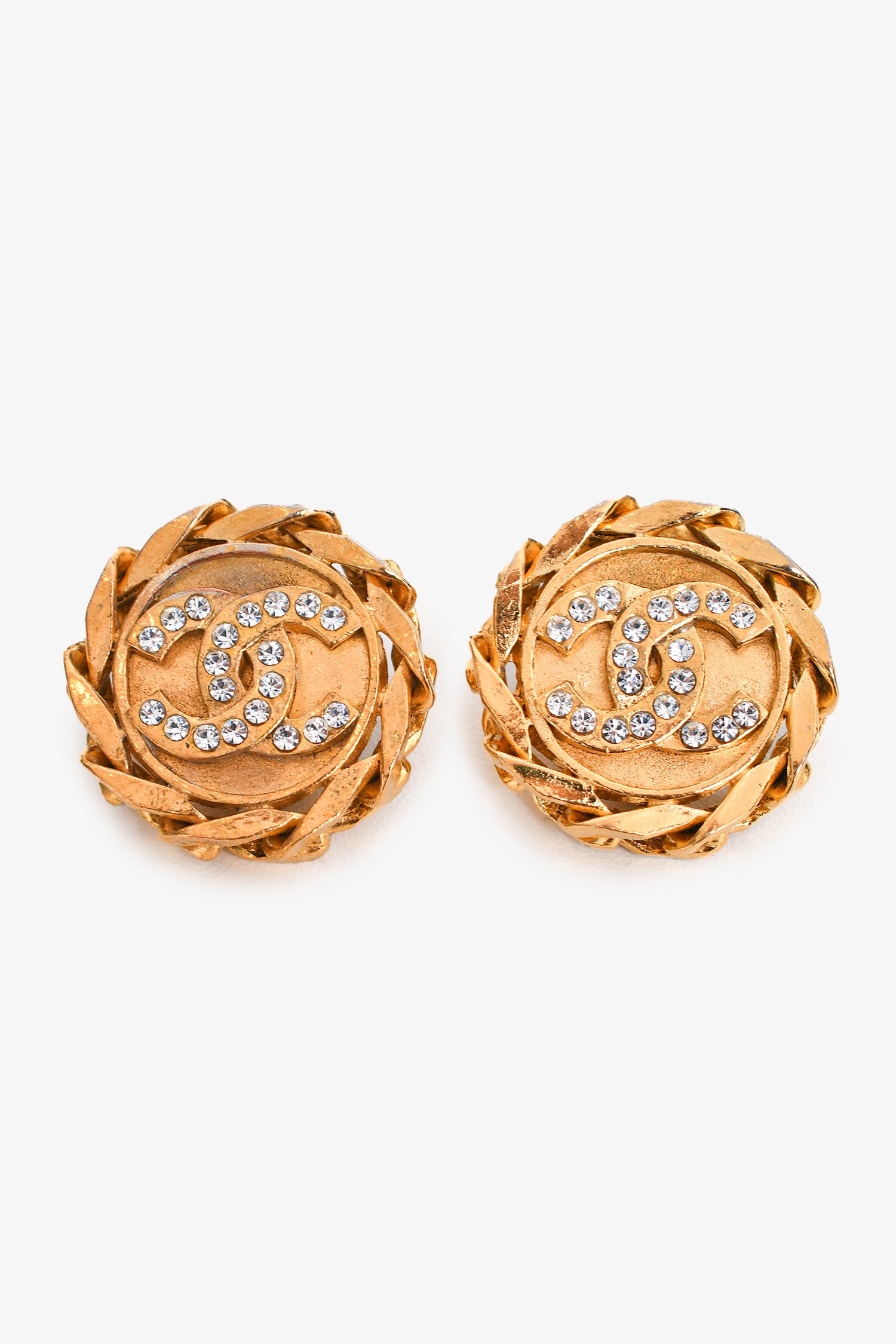 Pre-Loved Chanel™ Gold Tone CC Round Crystal Embellished Clip-On Earrings